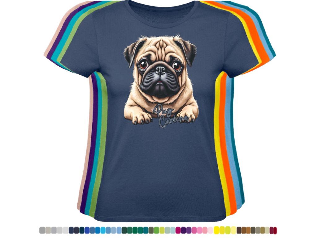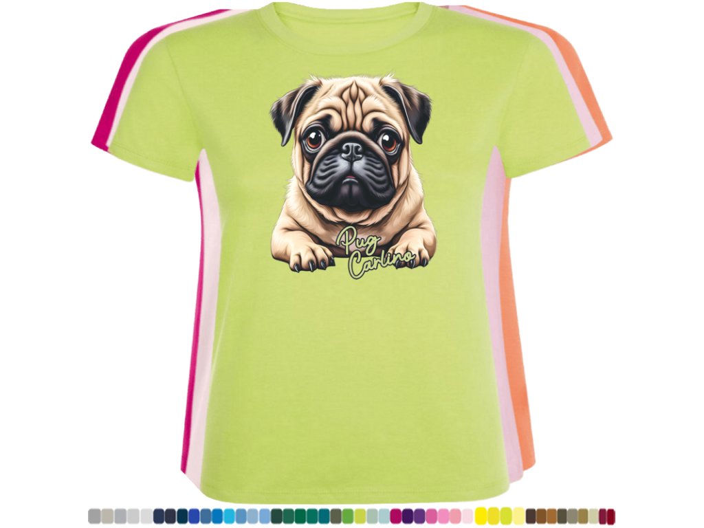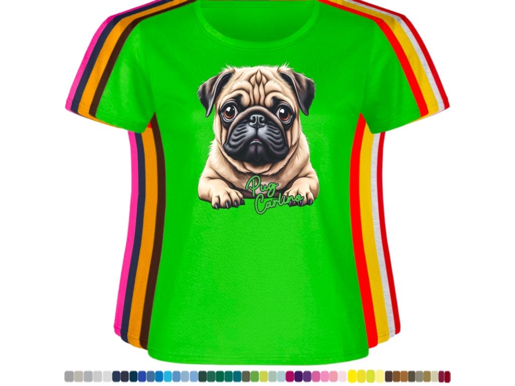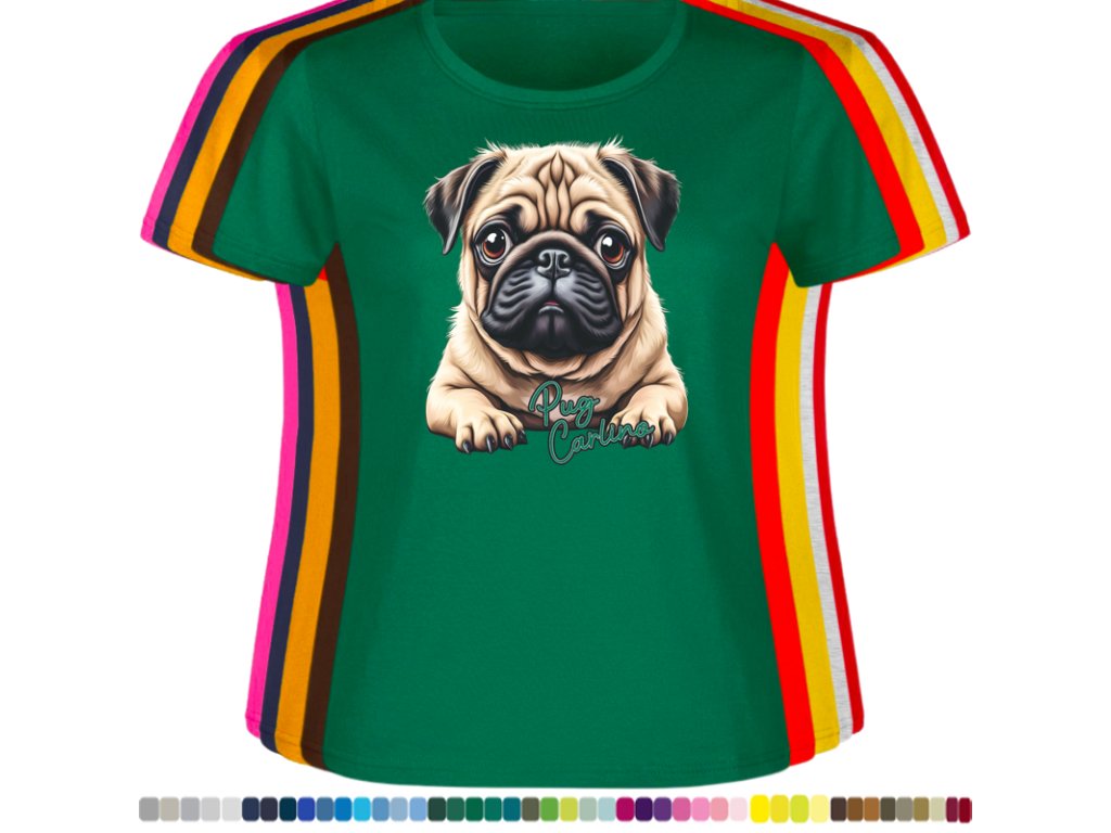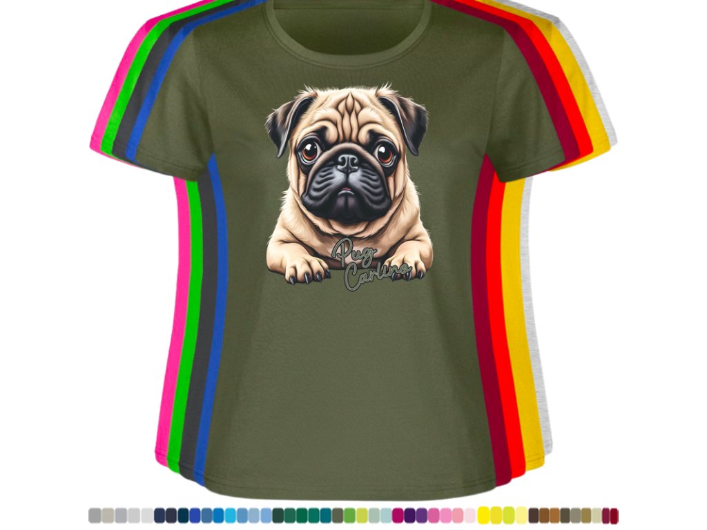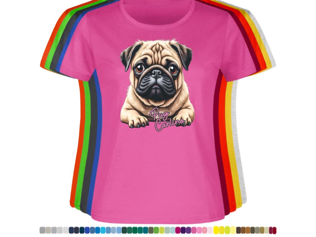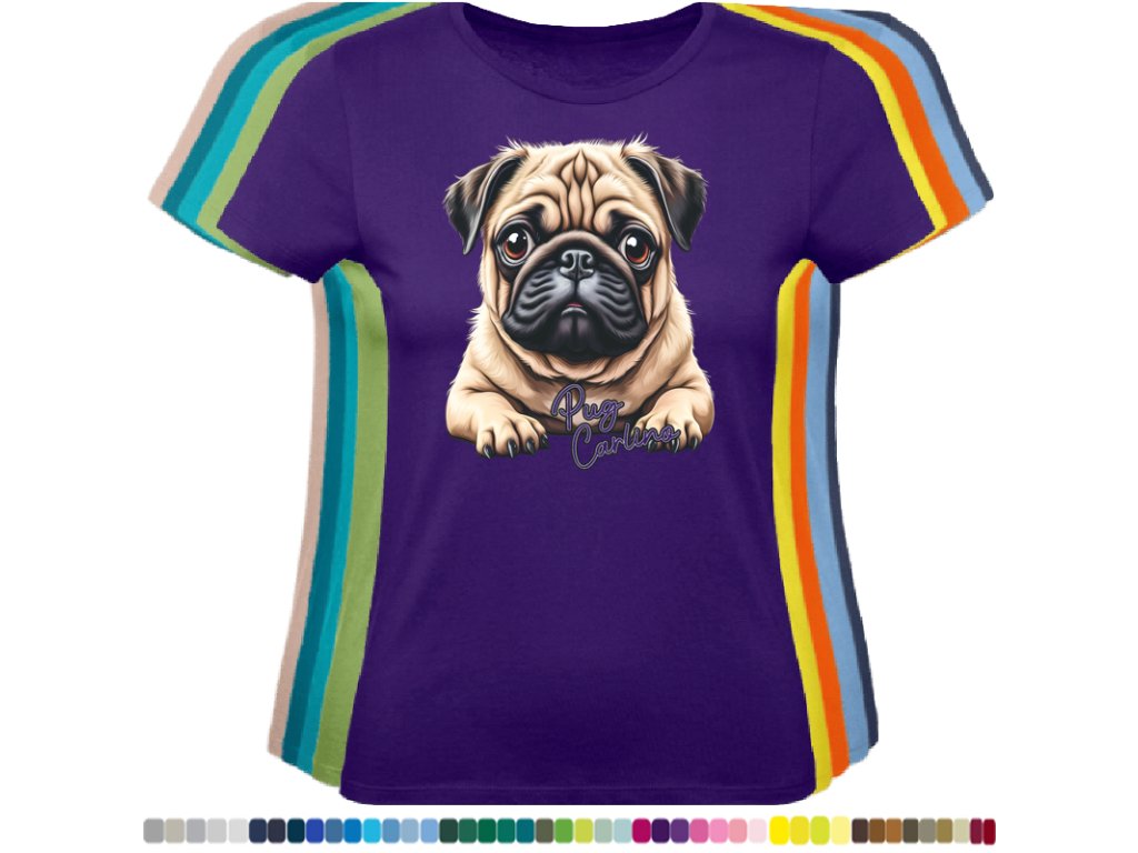 Dámské levné bavlněné tričko s digitálním potiskem Mops Carlino