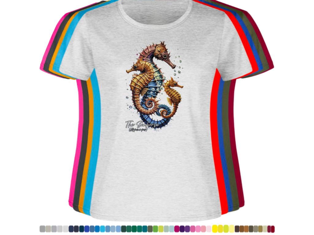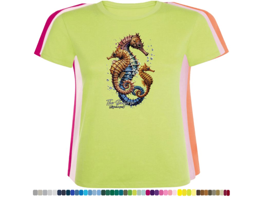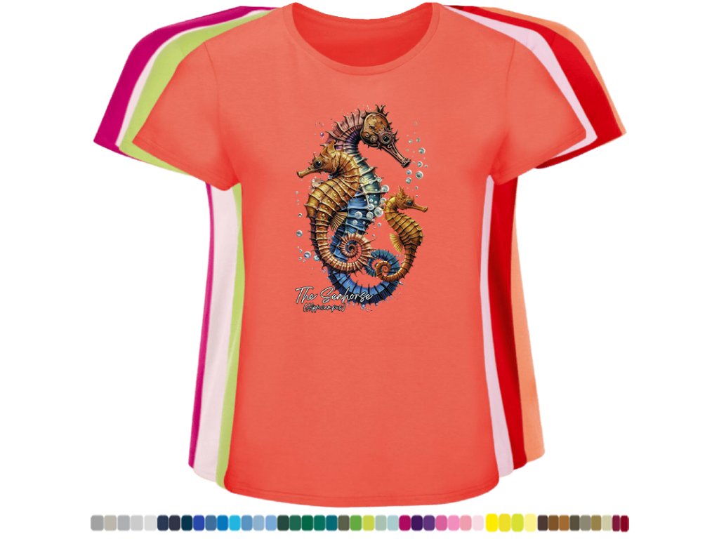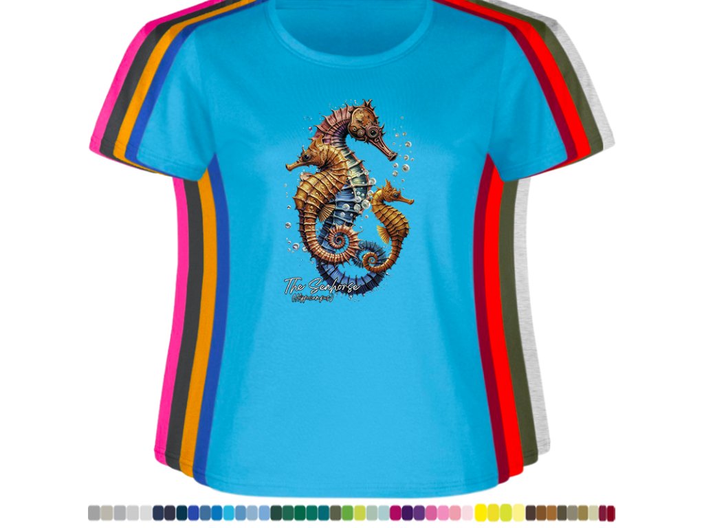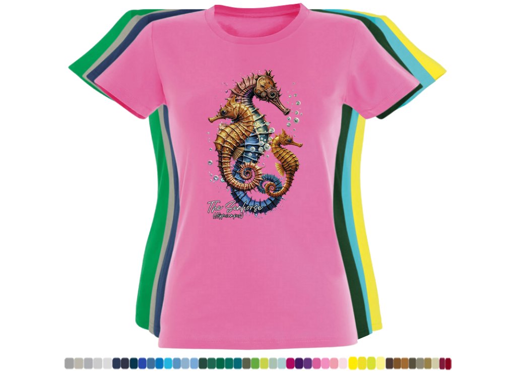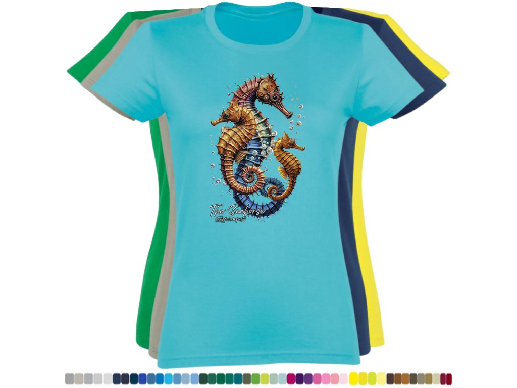 Dámské levné bavlněné tričko s digitálním potiskem Mořský koník - mořský svět