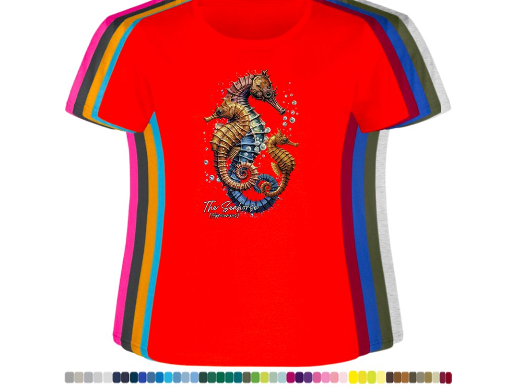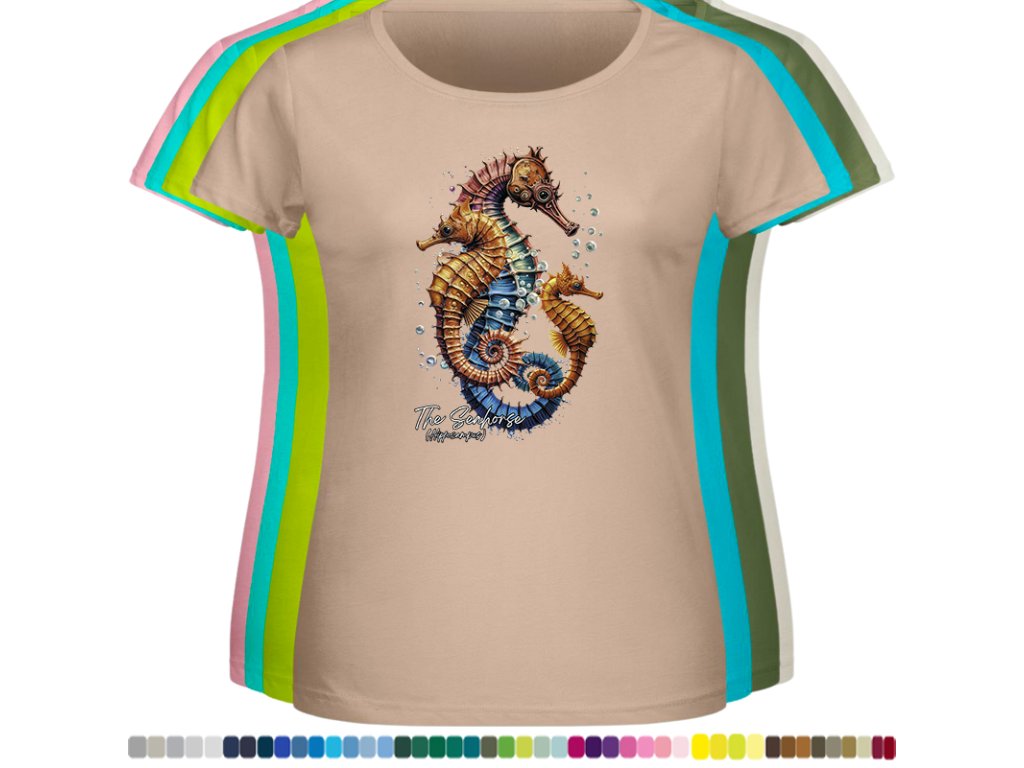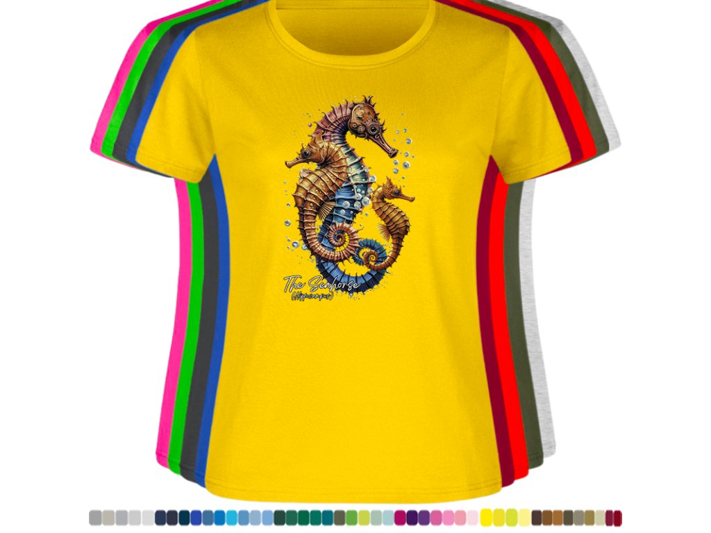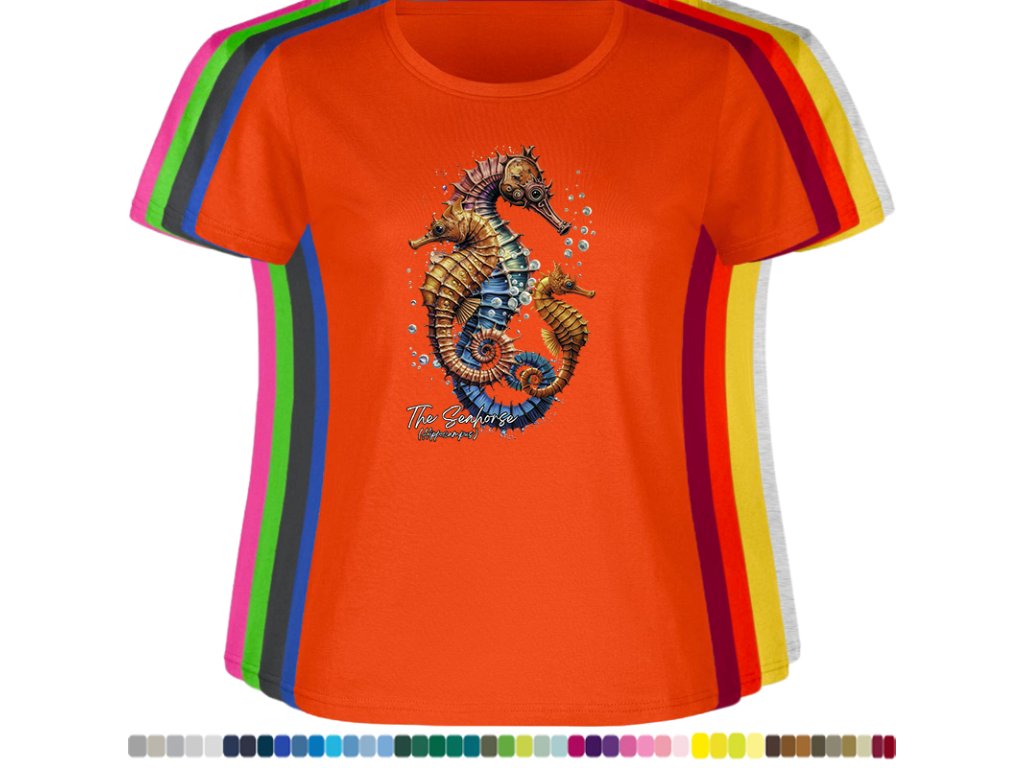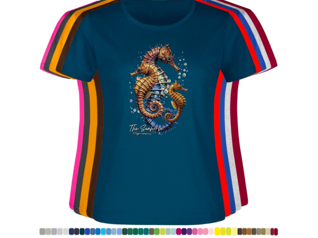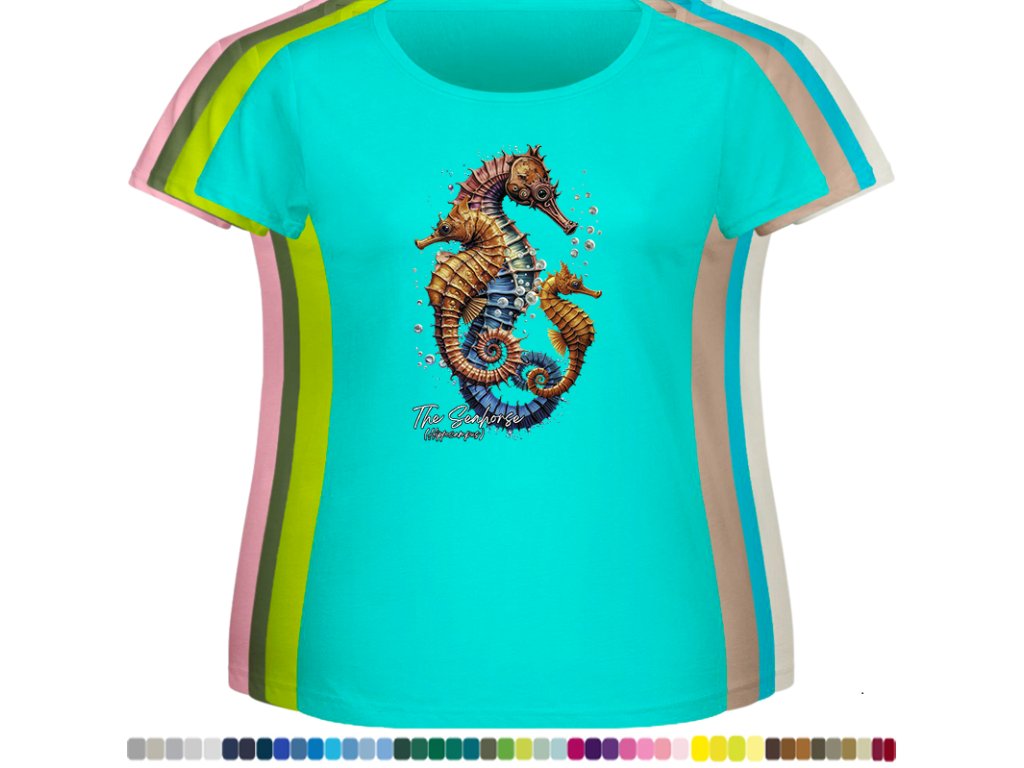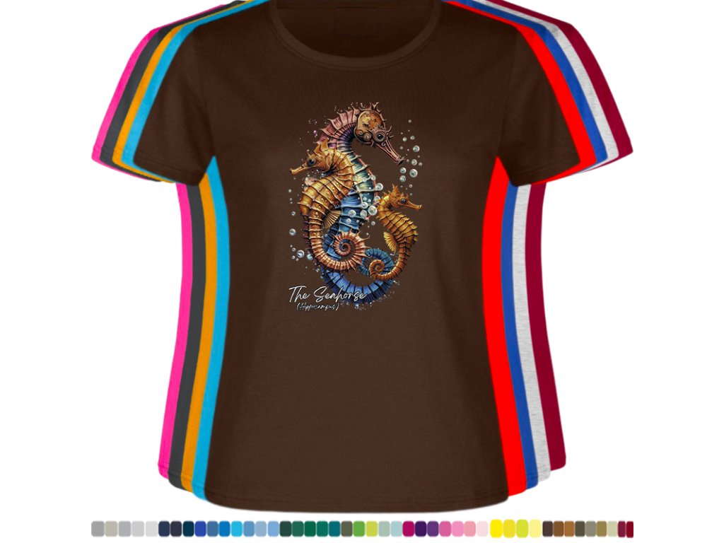 Dámské levné bavlněné tričko s digitálním potiskem Mořský koník - mořský svět