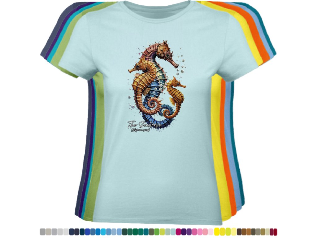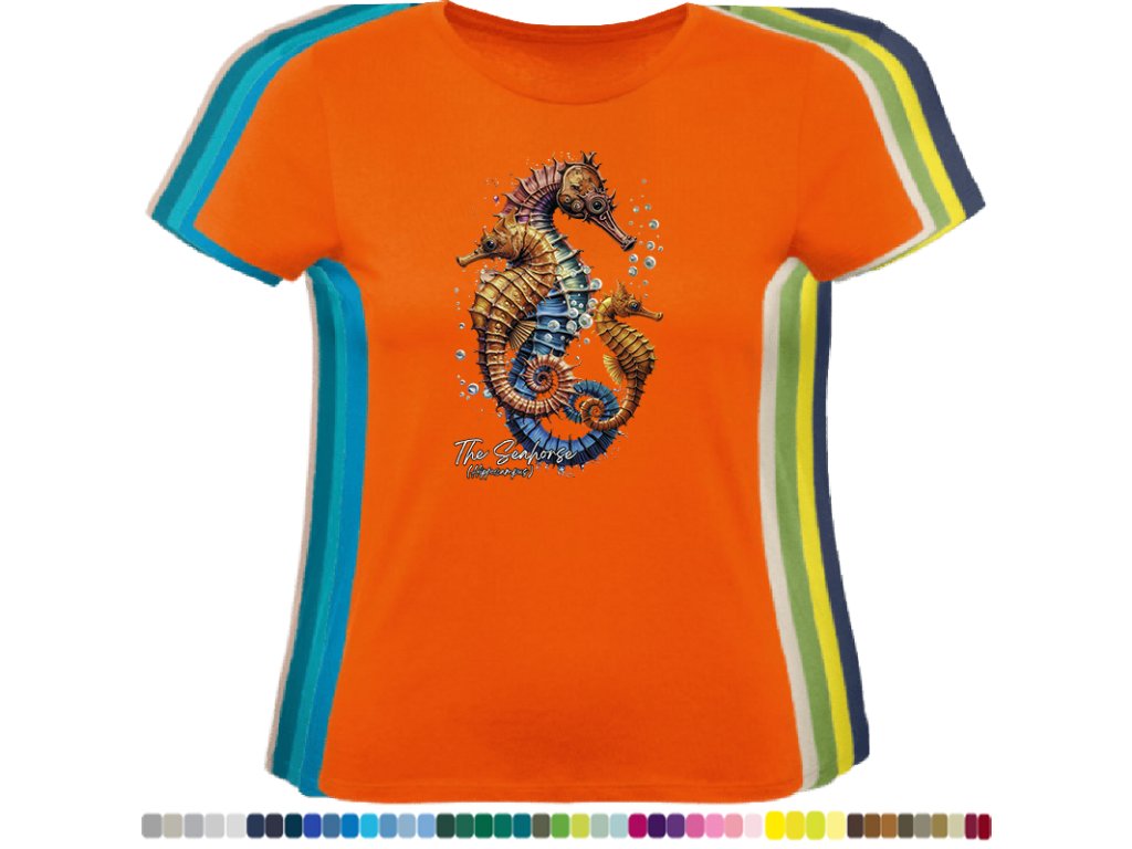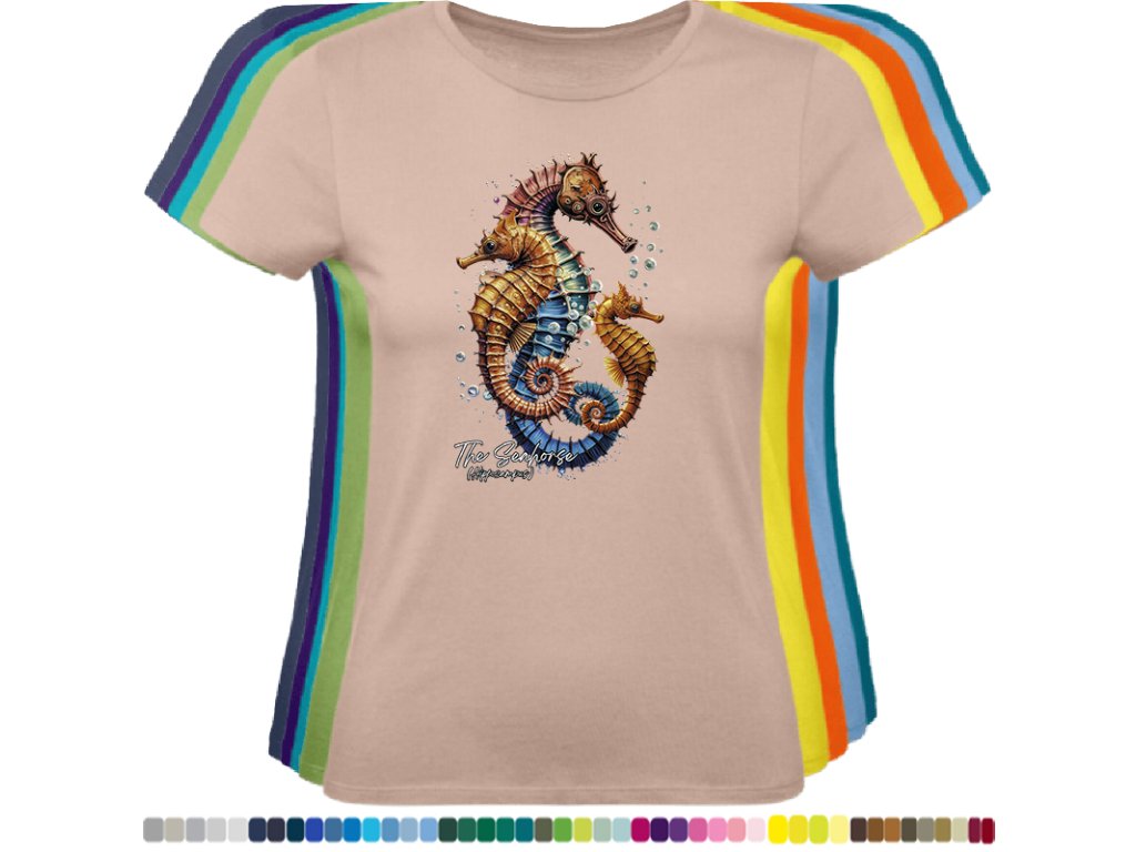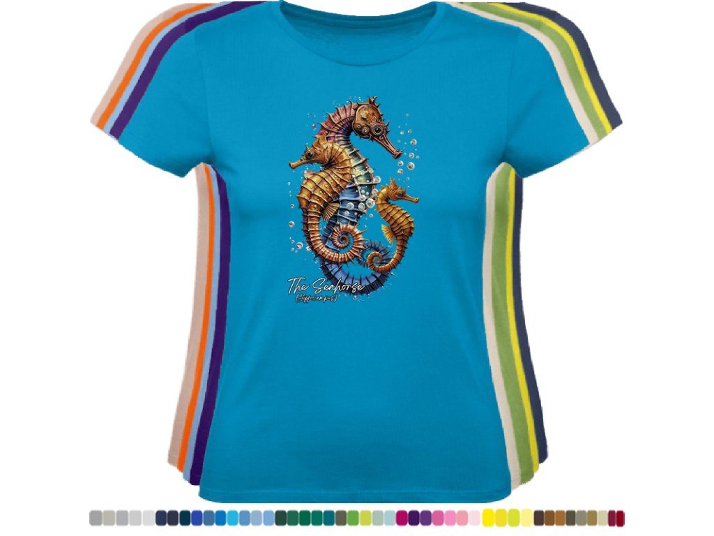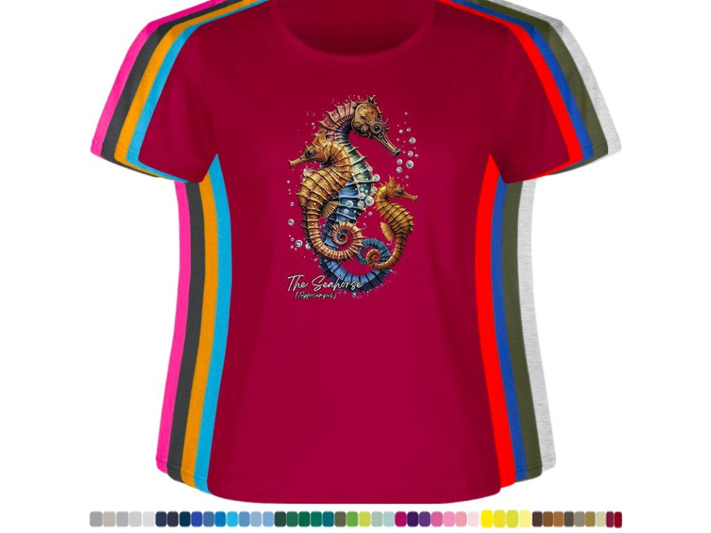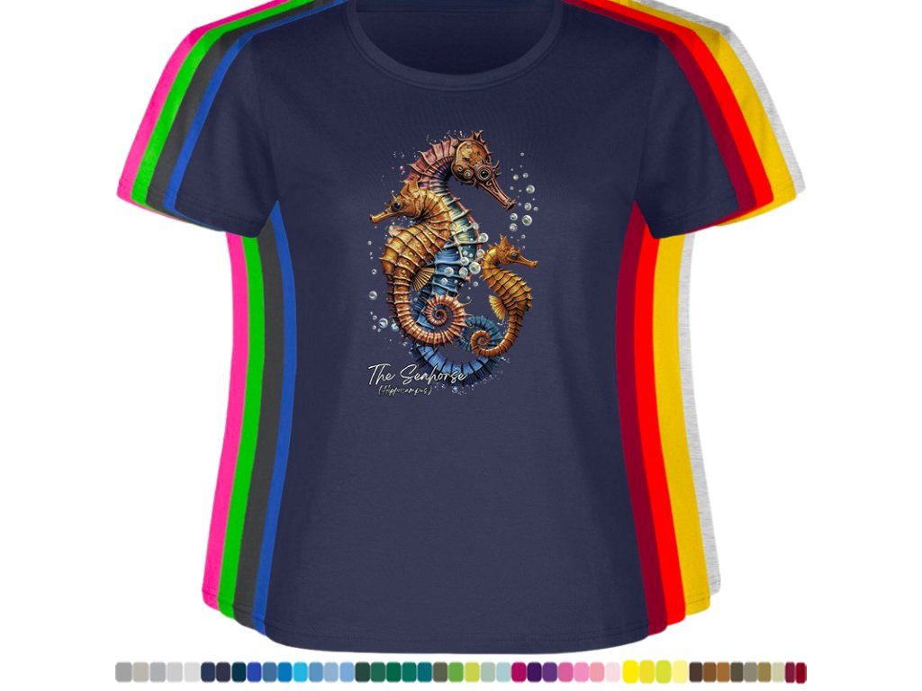 Dámské levné bavlněné tričko s digitálním potiskem Mořský koník - mořský svět