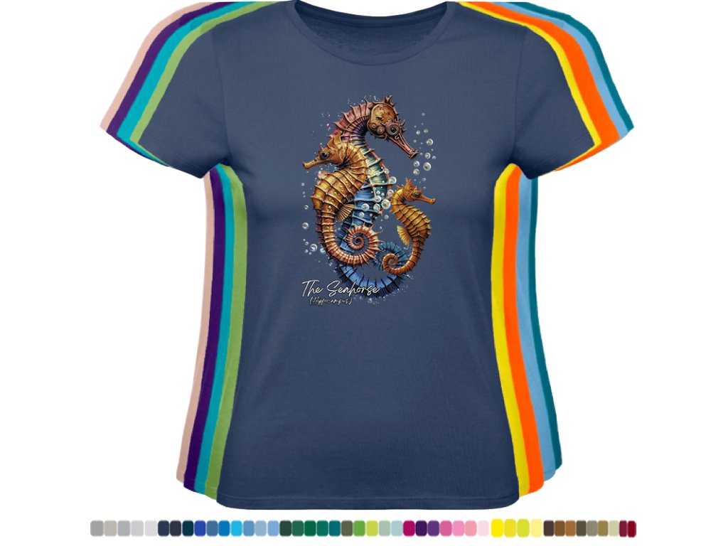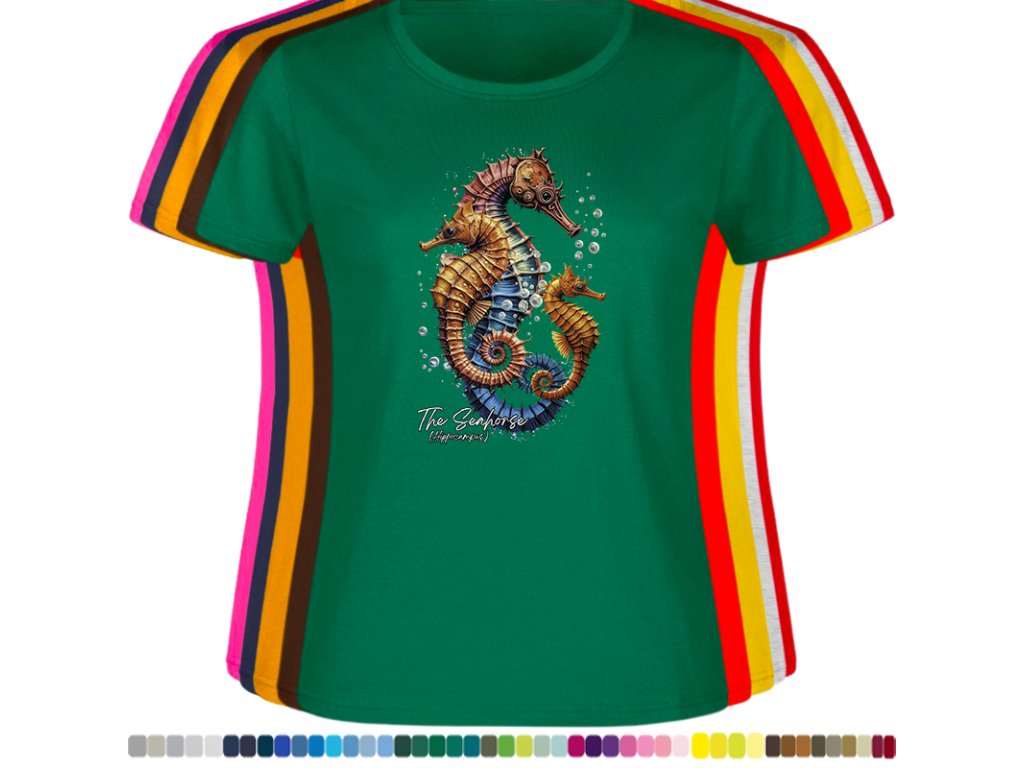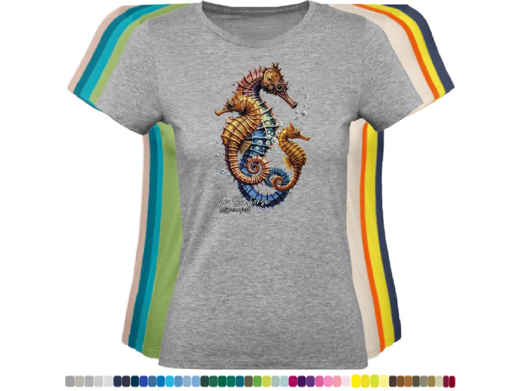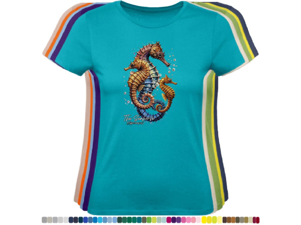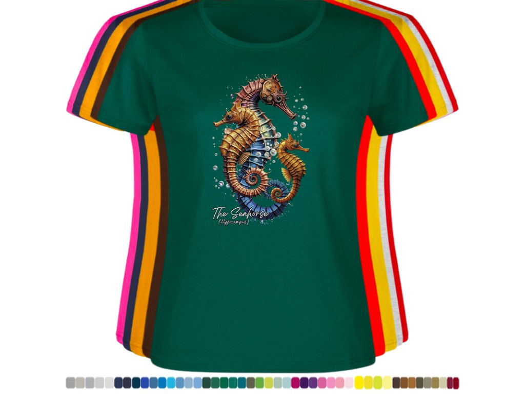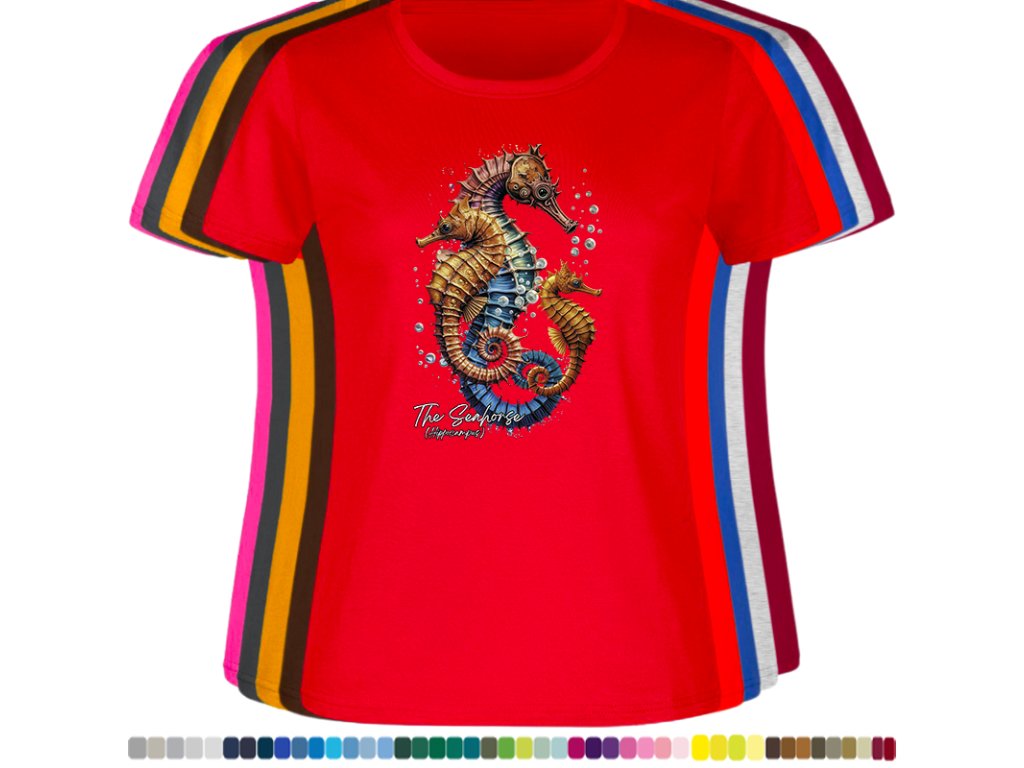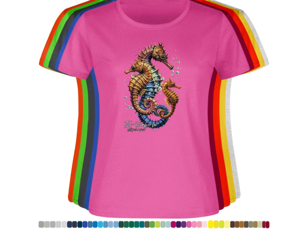 Dámské levné bavlněné tričko s digitálním potiskem Mořský koník - mořský svět