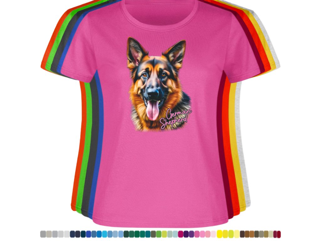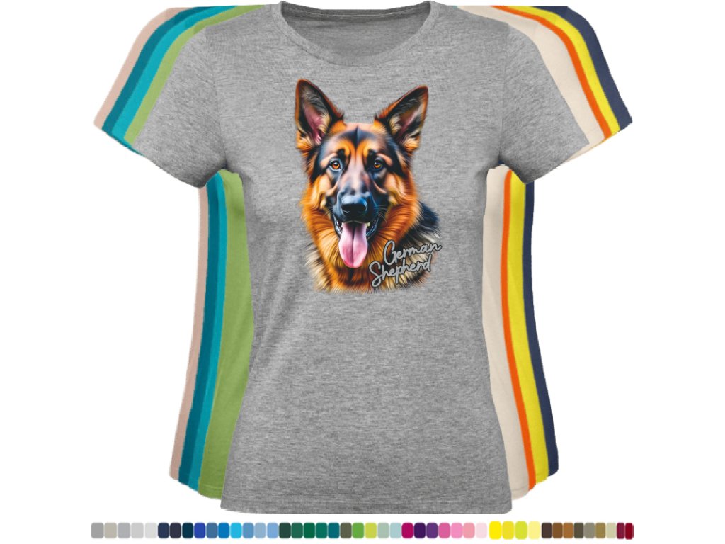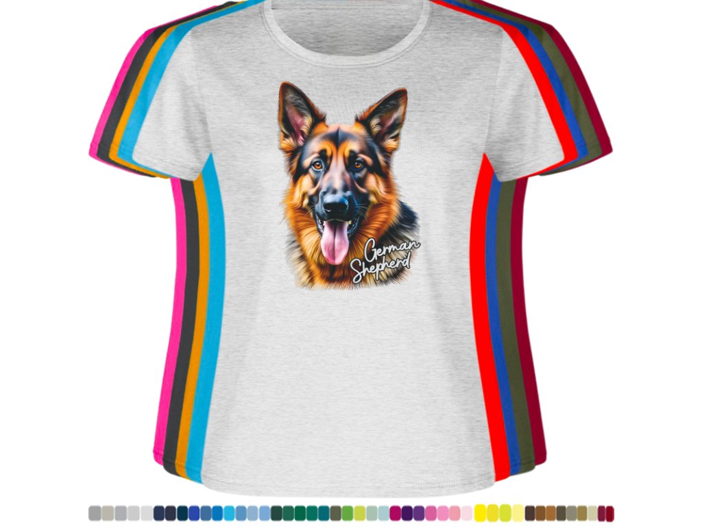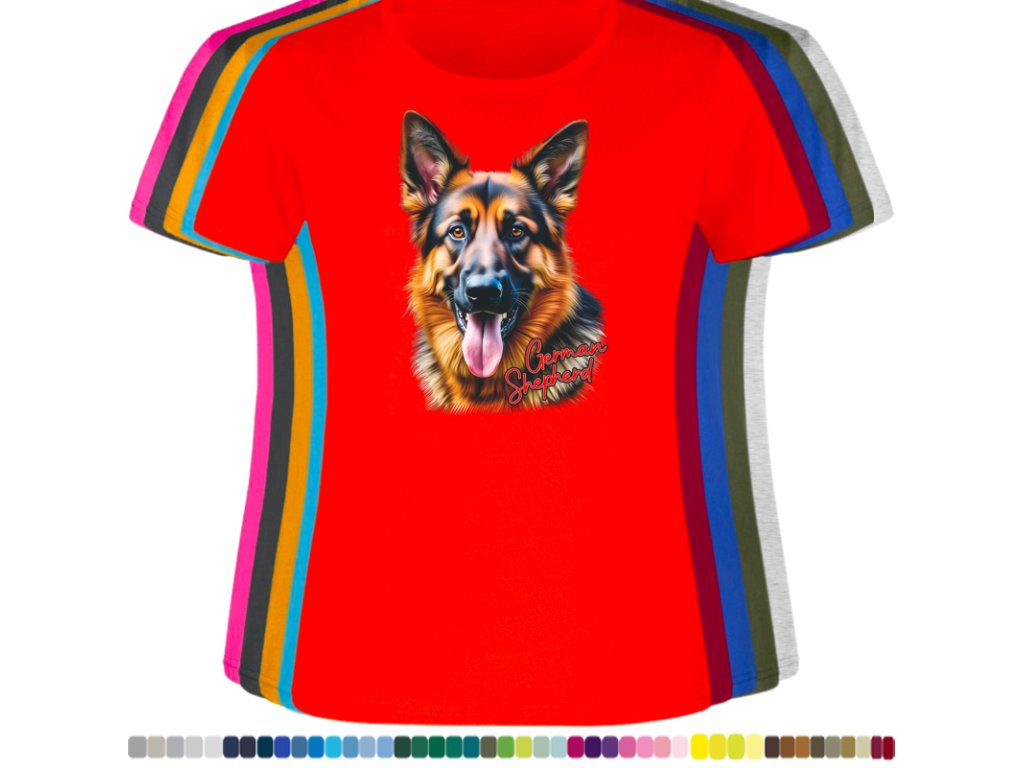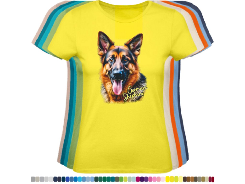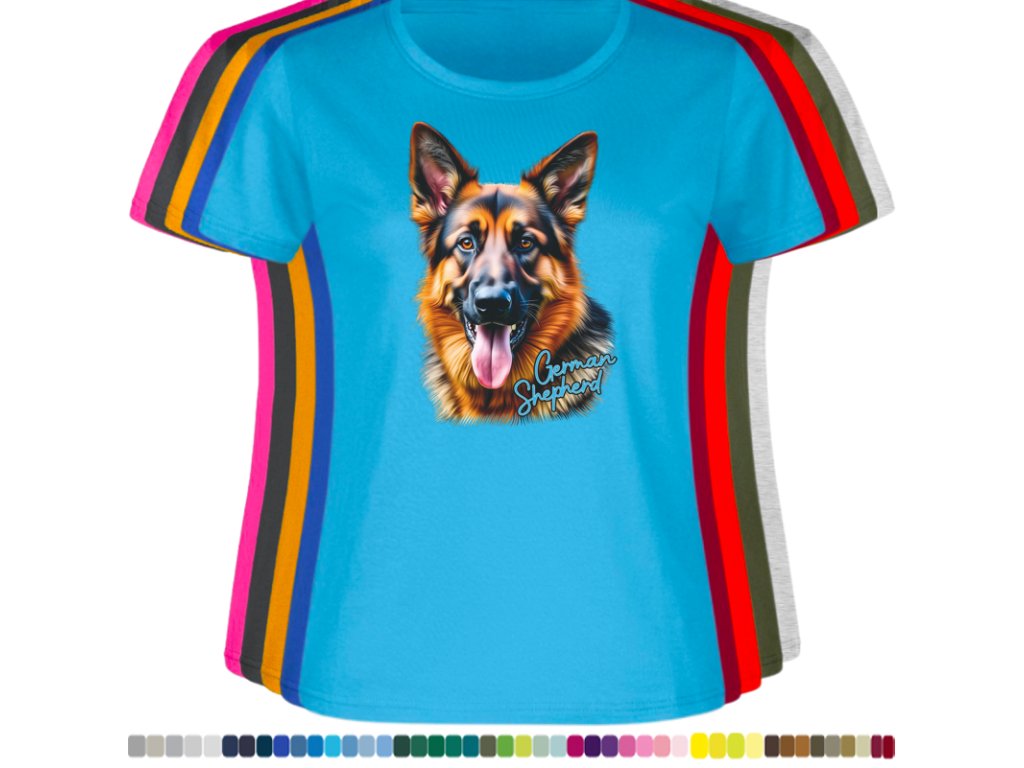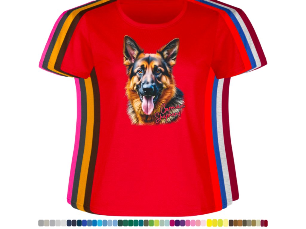 DÁMSKÉ LEVNÉ BAVLNĚNÉ TRIČKO S DIGITÁLNÍM POTISKEM PSA NĚMECKÉHO OVČÁKA