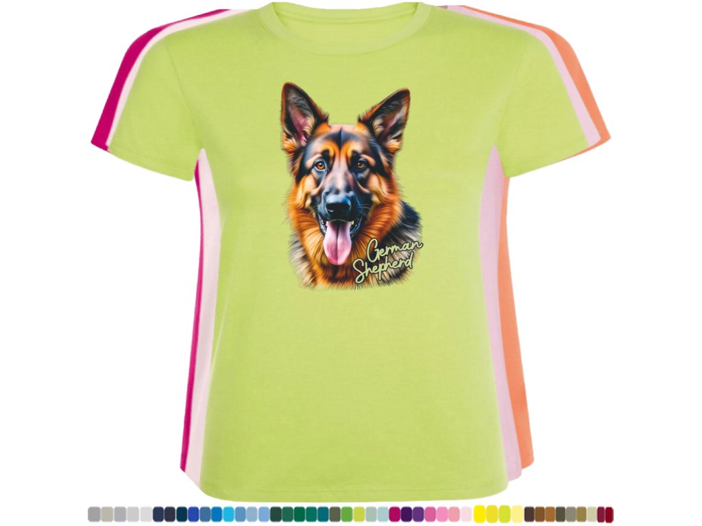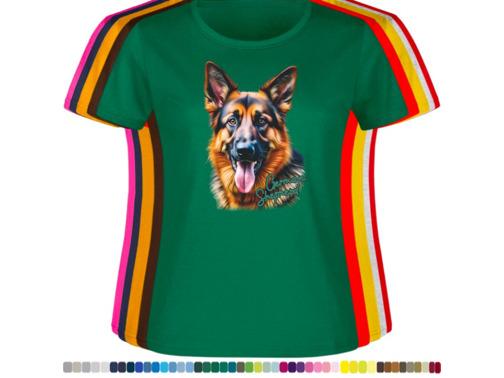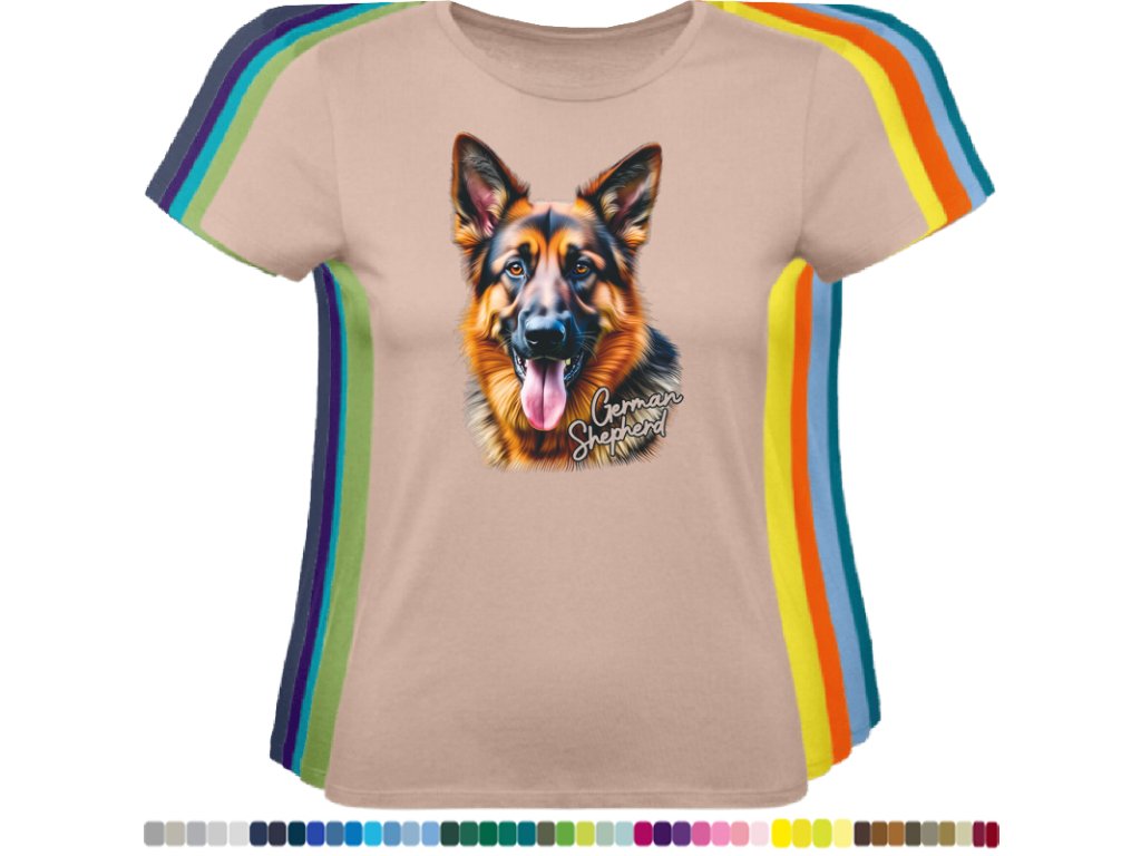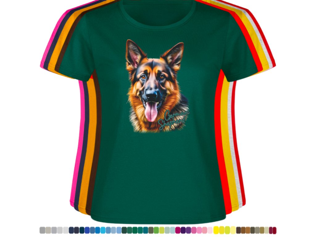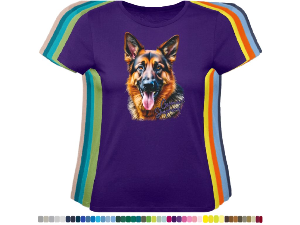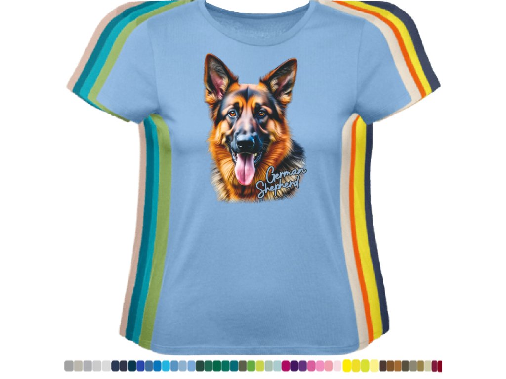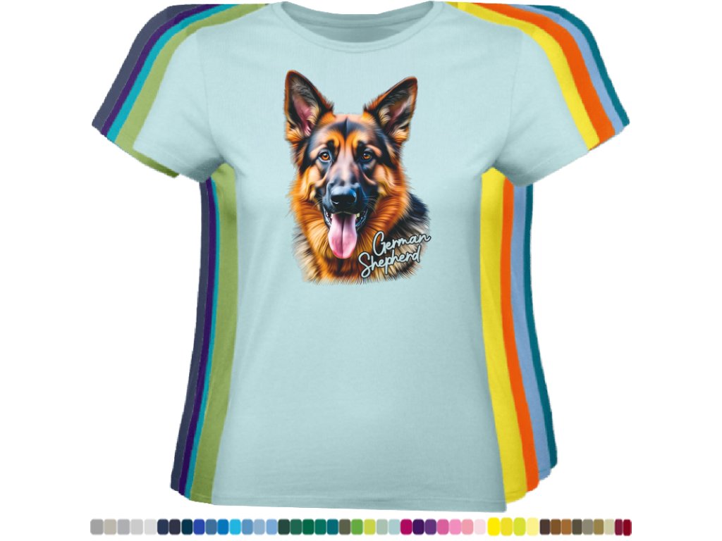DÁMSKÉ LEVNÉ BAVLNĚNÉ TRIČKO S DIGITÁLNÍM POTISKEM PSA NĚMECKÉHO OVČÁKA