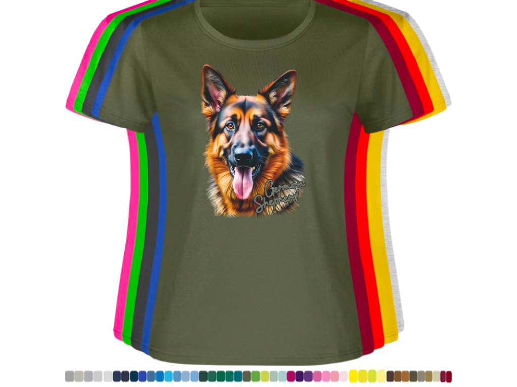 Dámské levné bavlněné tričko s digitálním potiskem Německý ovčák