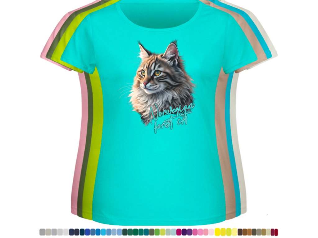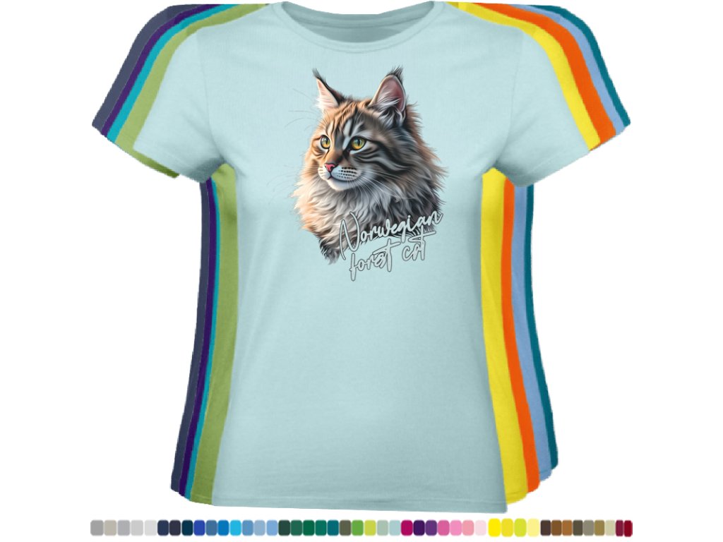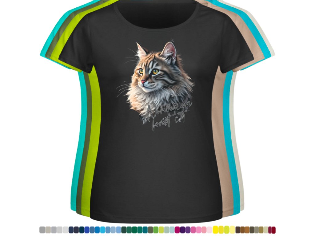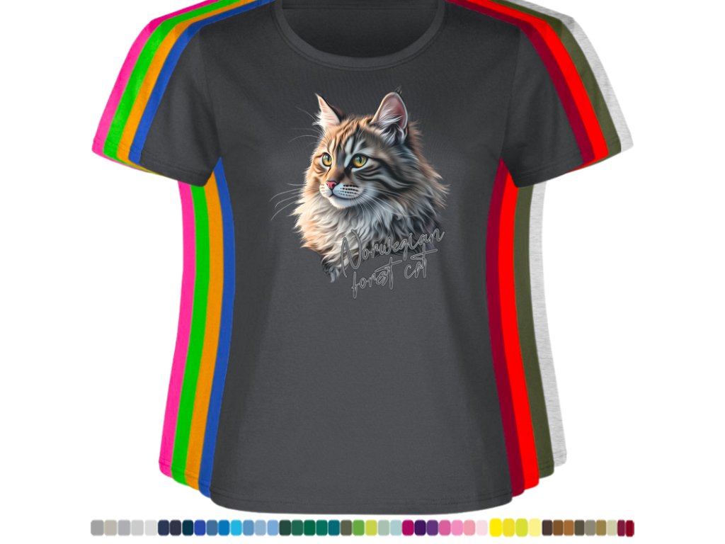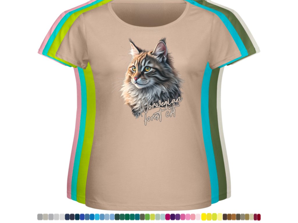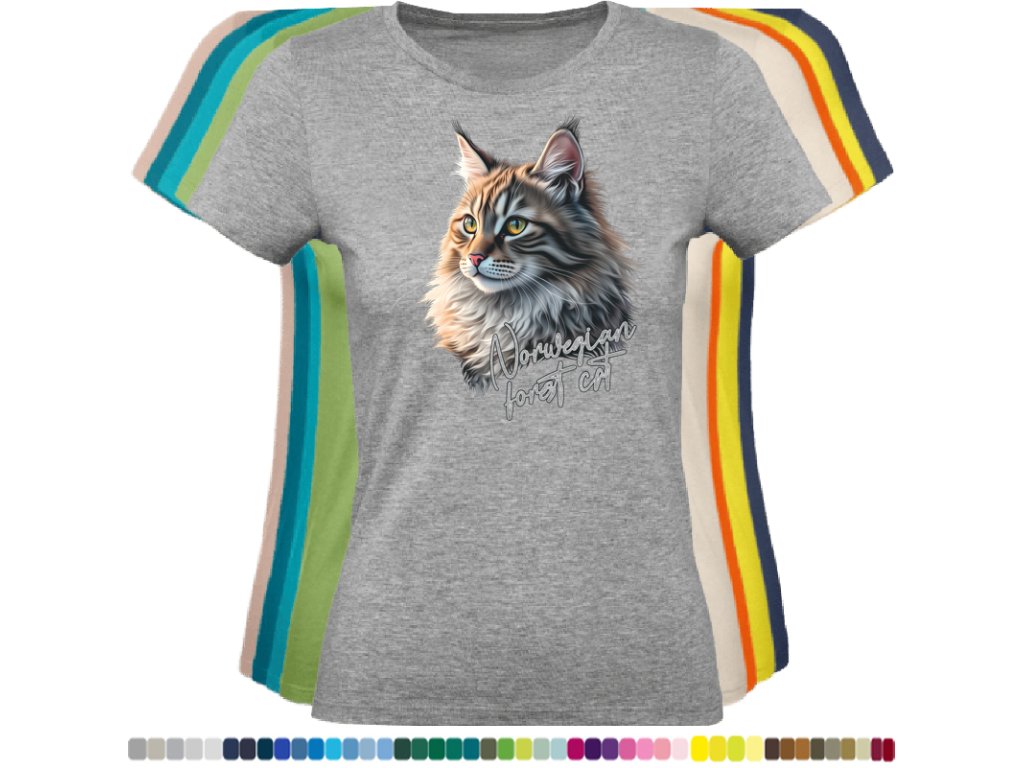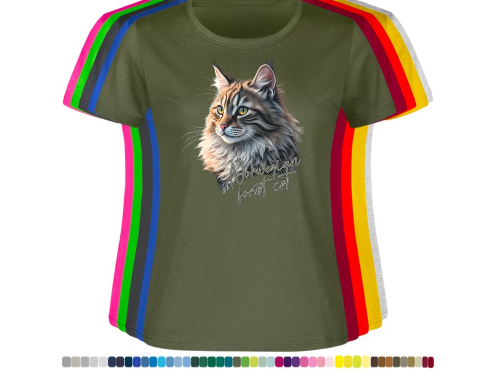 DÁMSKÉ LEVNÉ BAVLNĚNÉ TRIČKO S DIGITÁLNÍM POTISKEM NORSKÉ LESNÍ KOČKY
