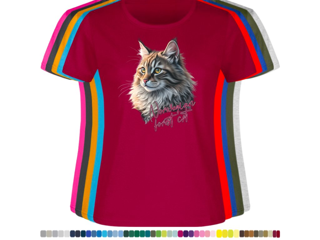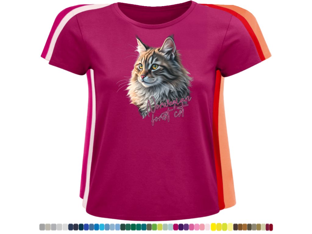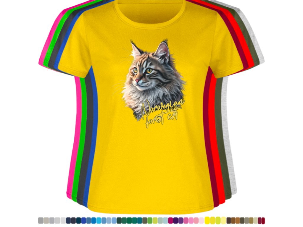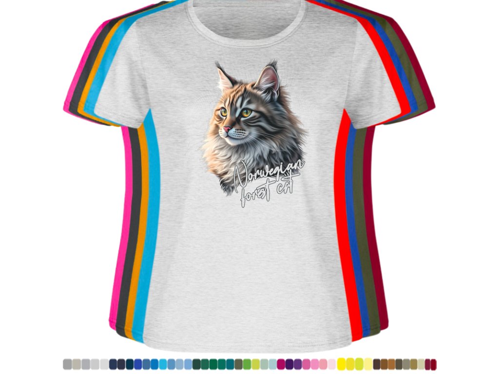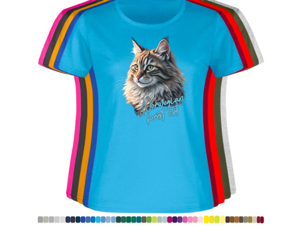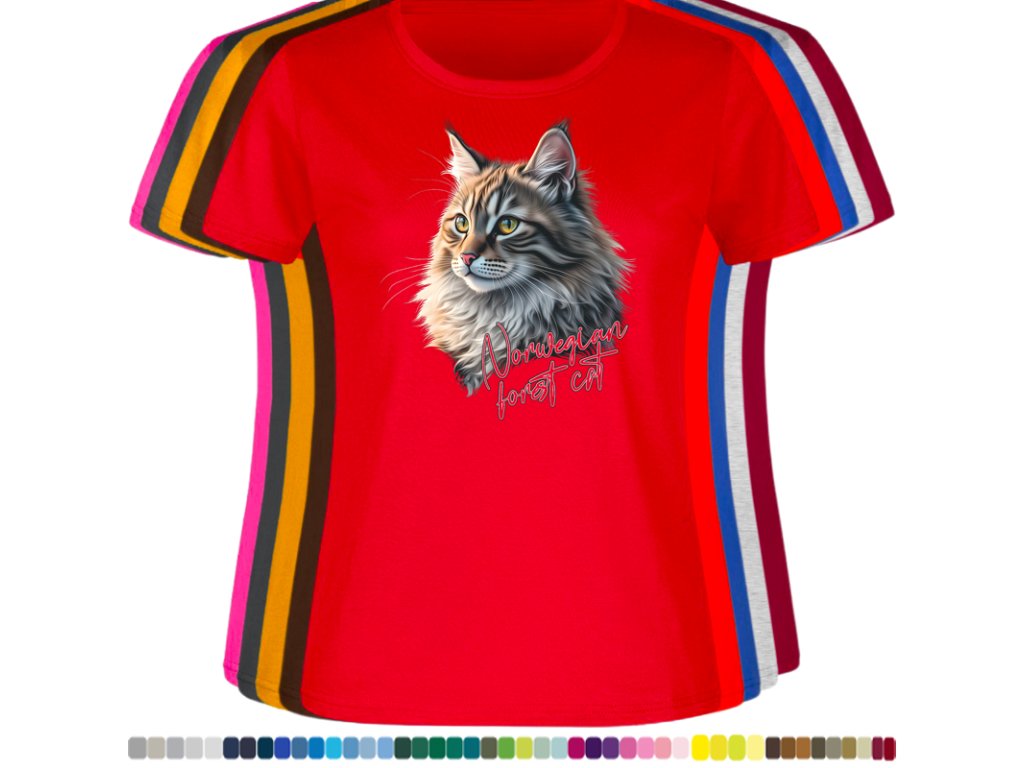 DÁMSKÉ LEVNÉ BAVLNĚNÉ TRIČKO S DIGITÁLNÍM POTISKEM NORSKÉ LESNÍ KOČKY