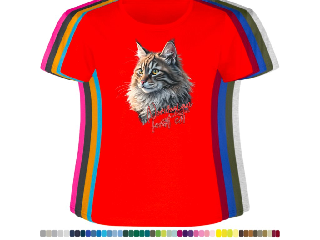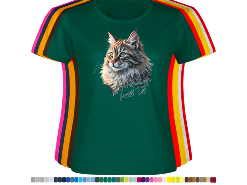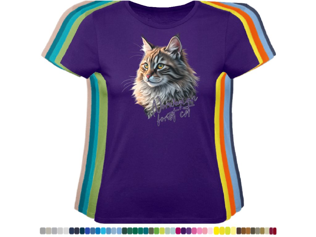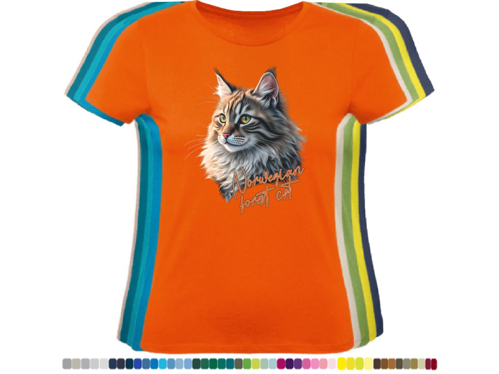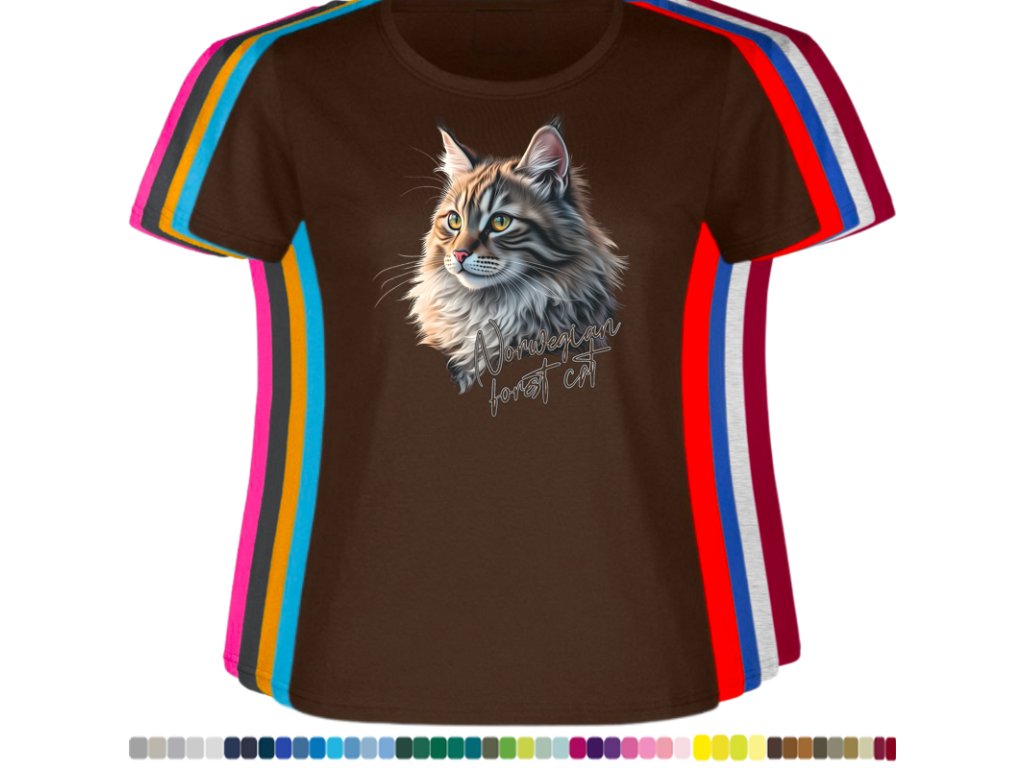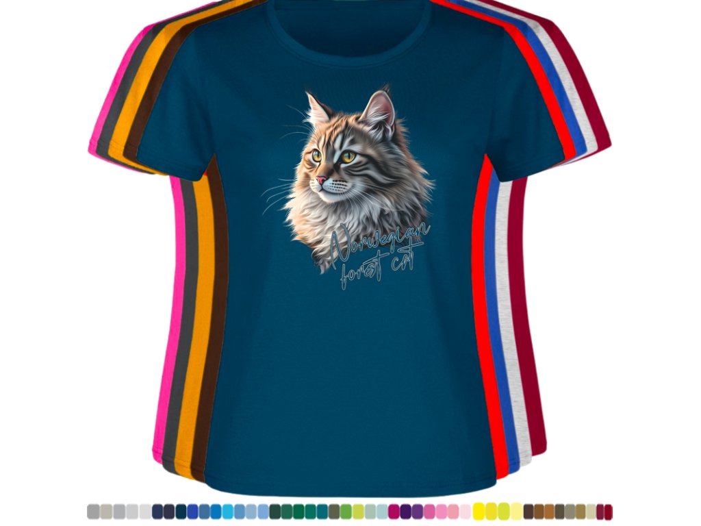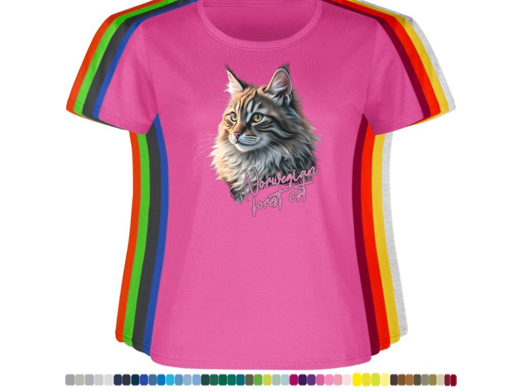 DÁMSKÉ LEVNÉ BAVLNĚNÉ TRIČKO S DIGITÁLNÍM POTISKEM NORSKÉ LESNÍ KOČKY