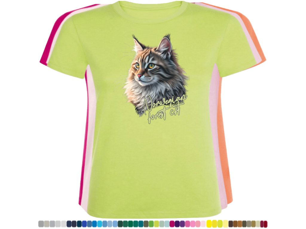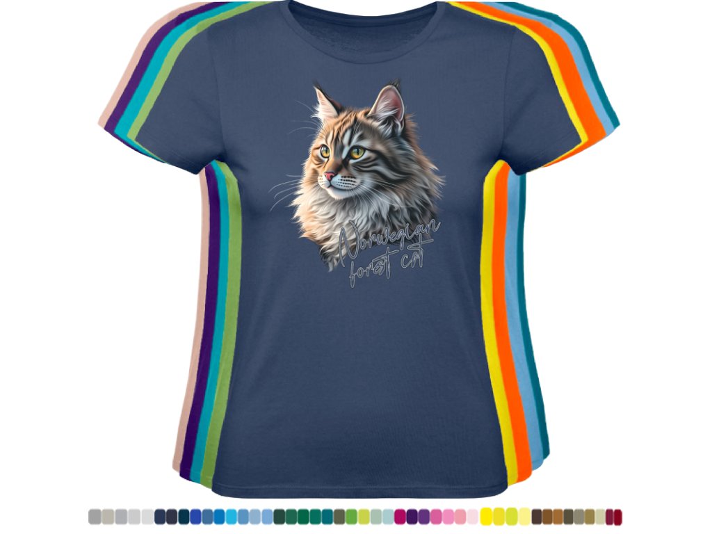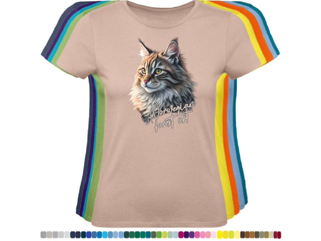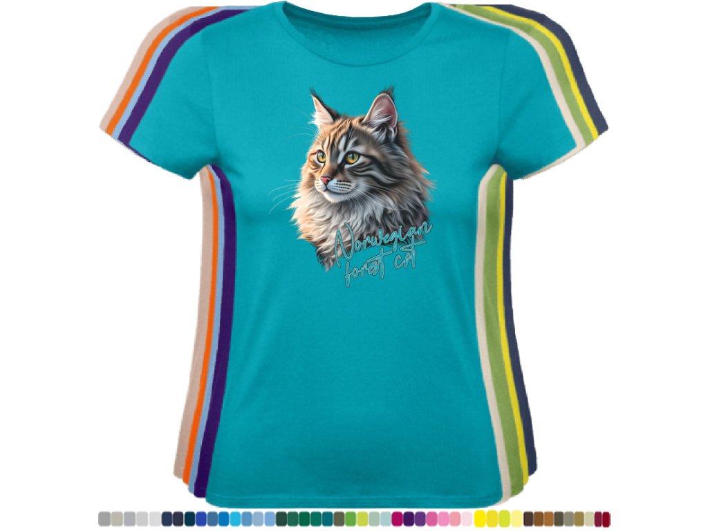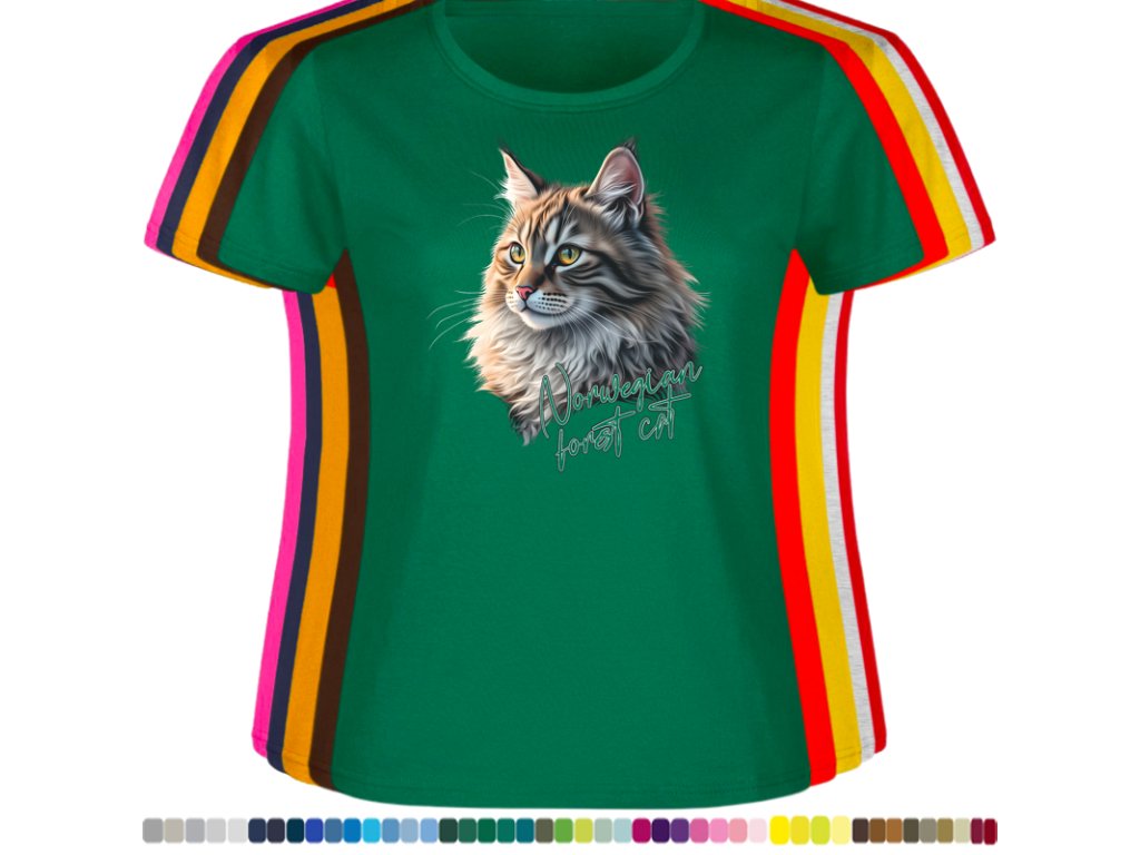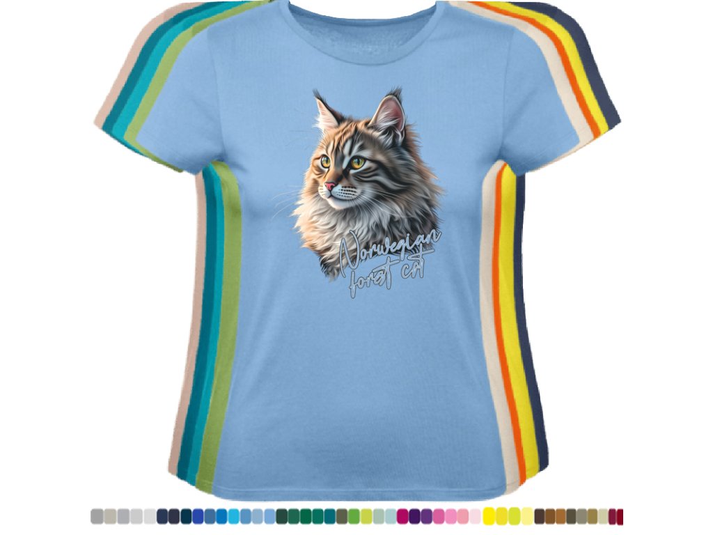 DÁMSKÉ LEVNÉ BAVLNĚNÉ TRIČKO S DIGITÁLNÍM POTISKEM NORSKÉ LESNÍ KOČKY