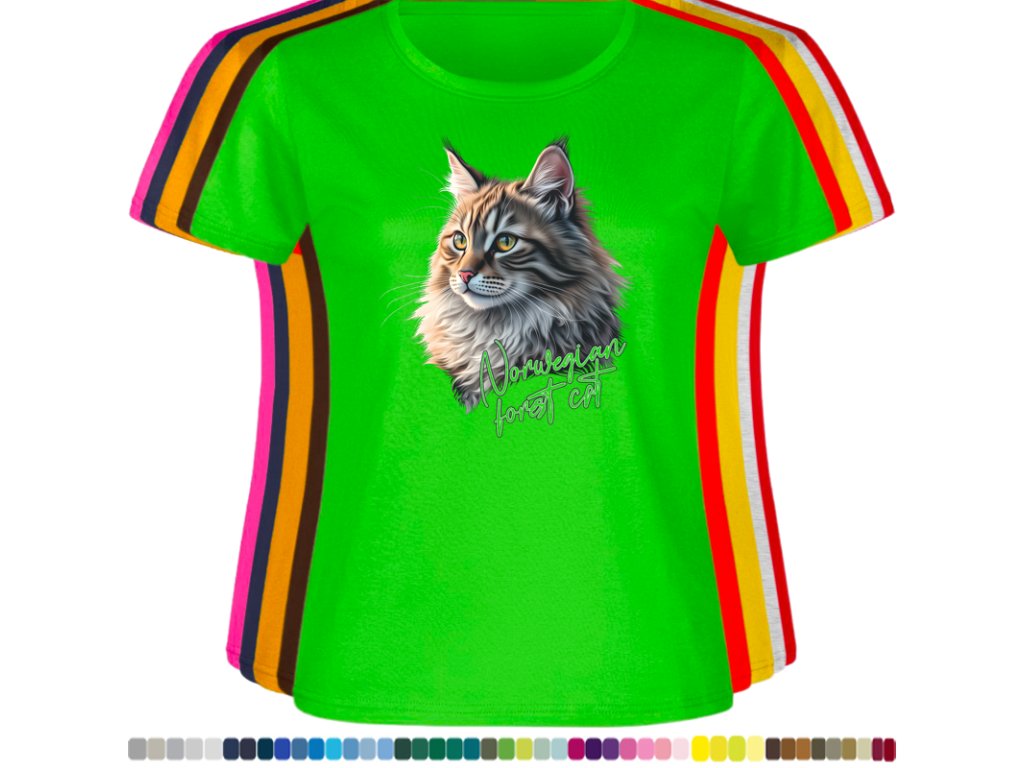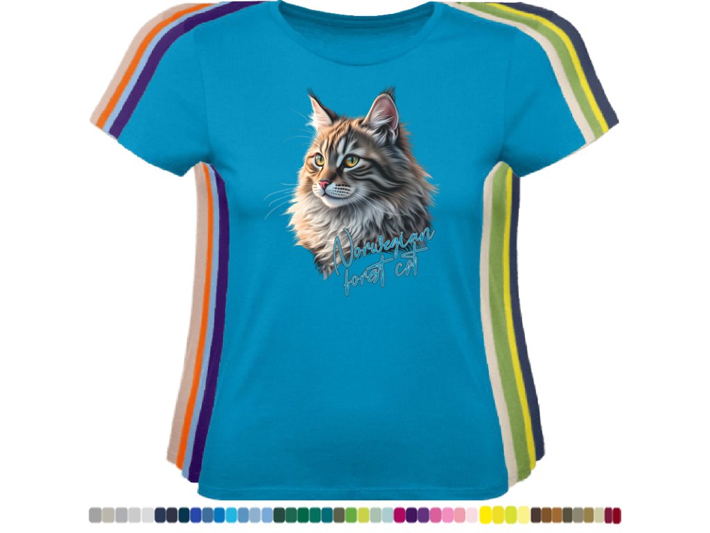 Dámské levné bavlněné tričko s digitálním potiskem Norská lesní kočka