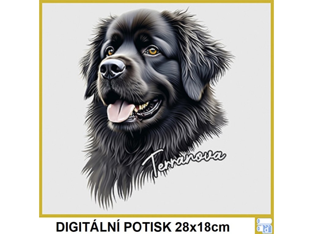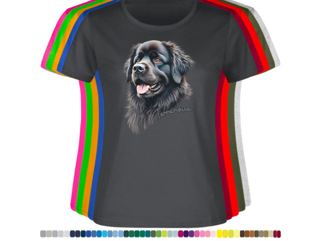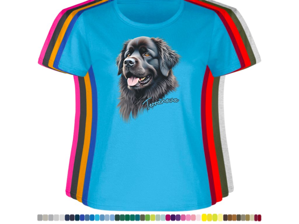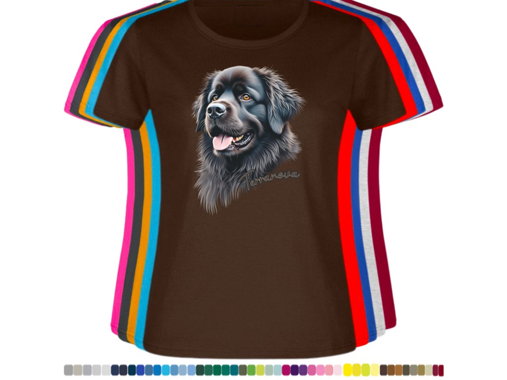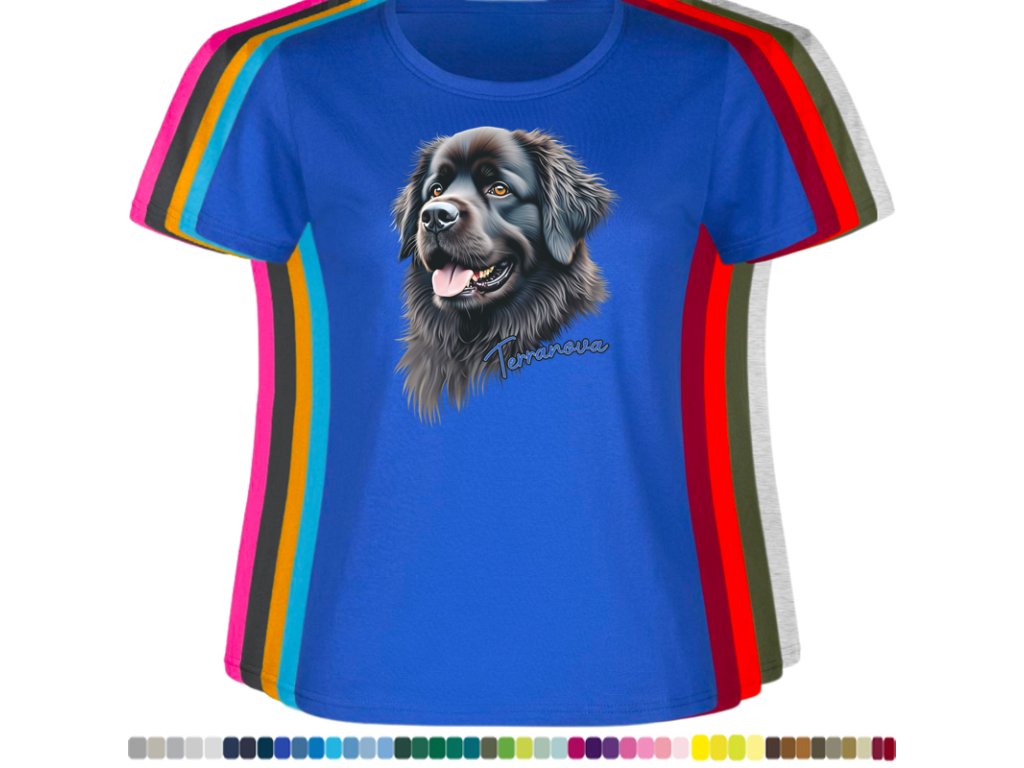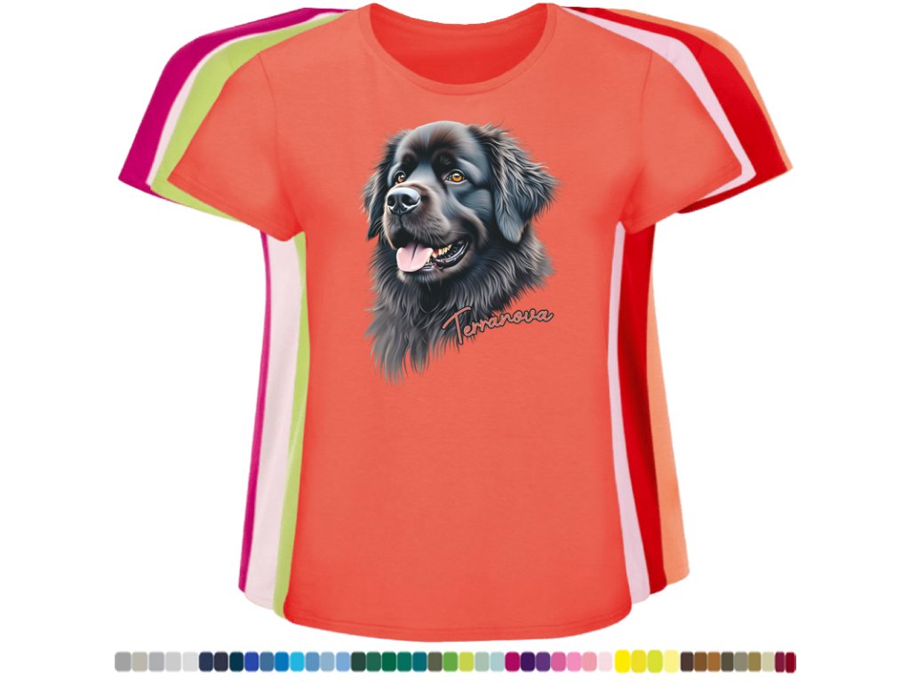 DÁMSKÉ LEVNÉ BAVLNĚNÉ TRIČKO S DIGITÁLNÍM POTISKEM PSA NOVOFUNDLANDSKÉHO