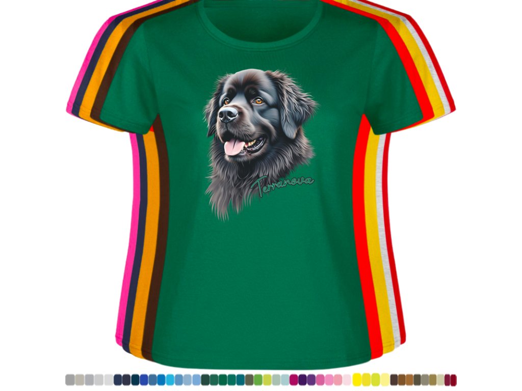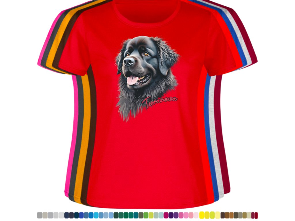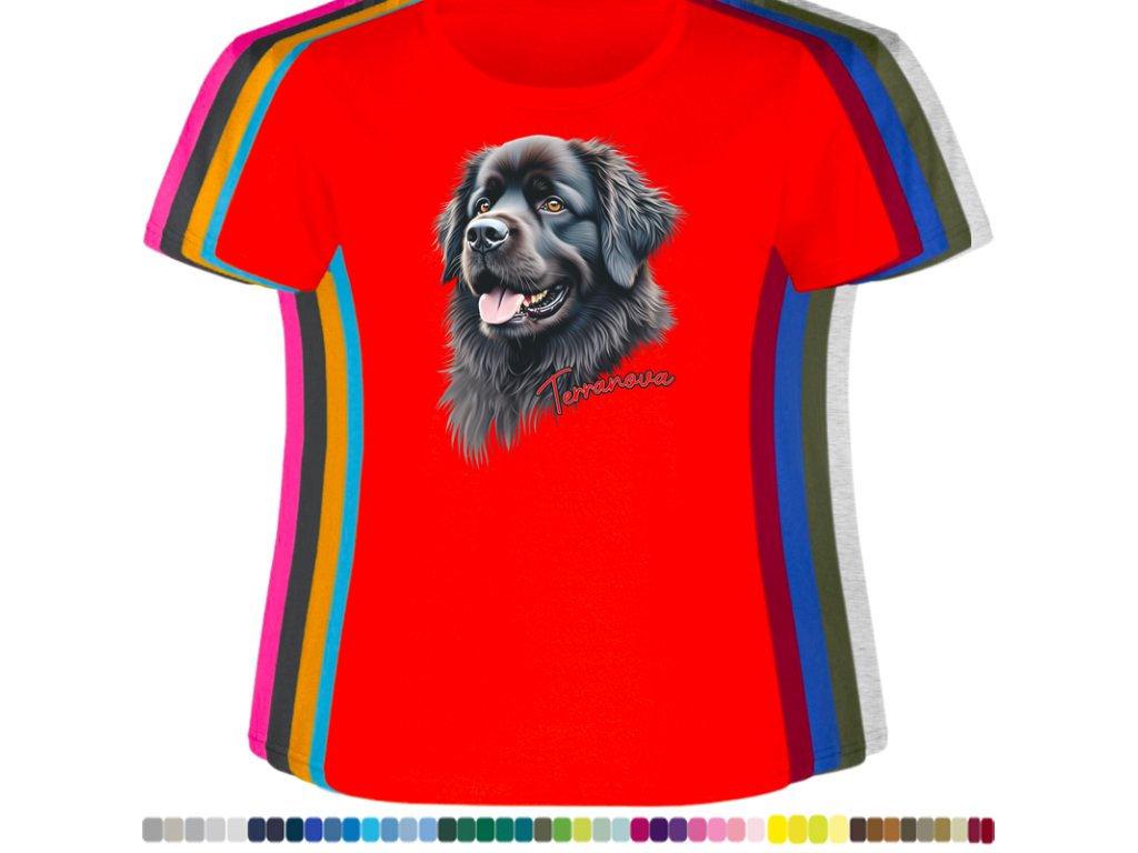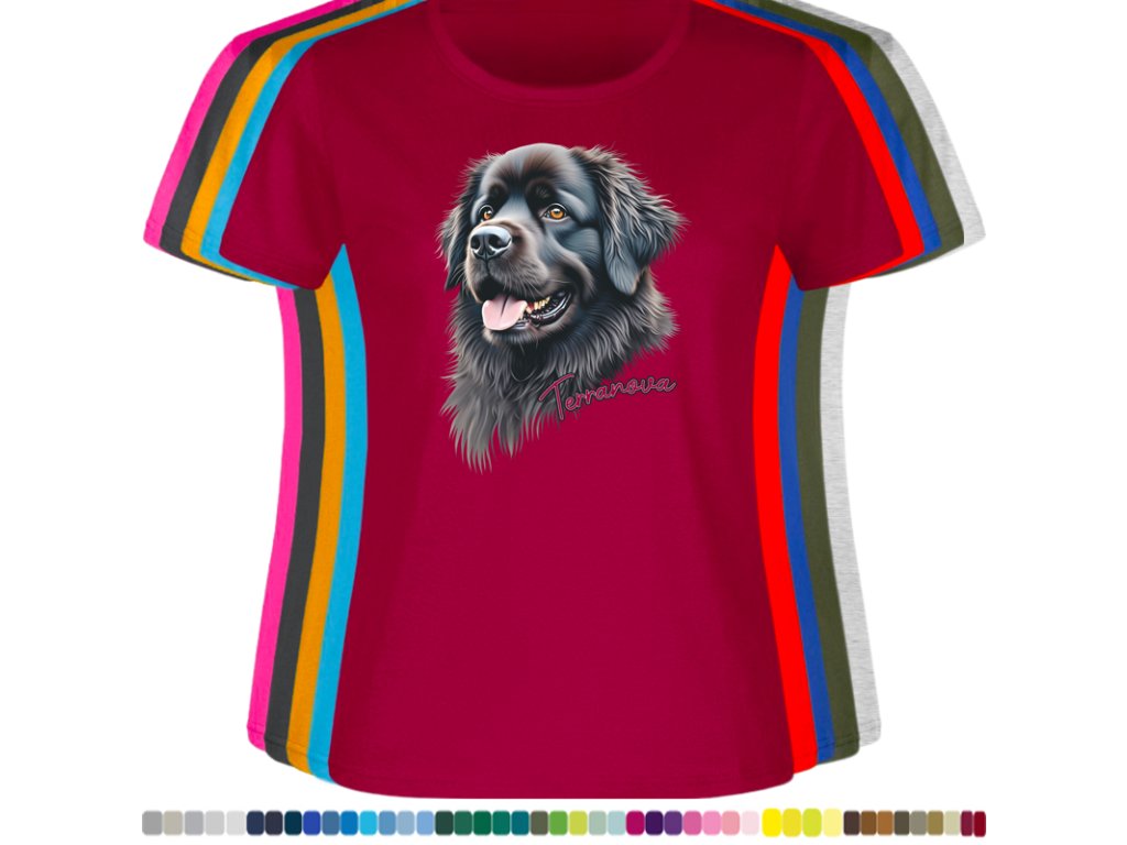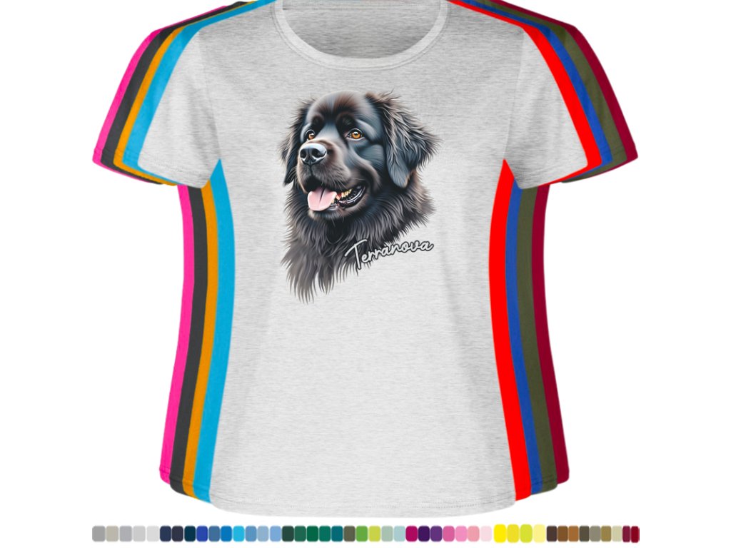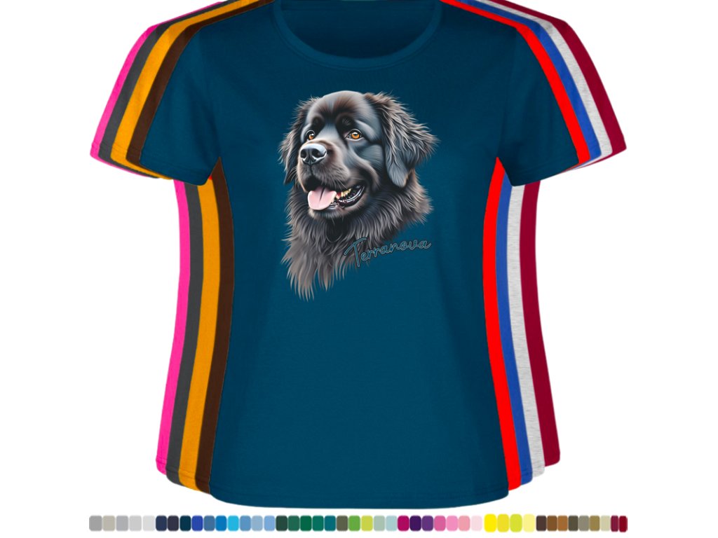 DÁMSKÉ LEVNÉ BAVLNĚNÉ TRIČKO S DIGITÁLNÍM POTISKEM PSA NOVOFUNDLANDSKÉHO