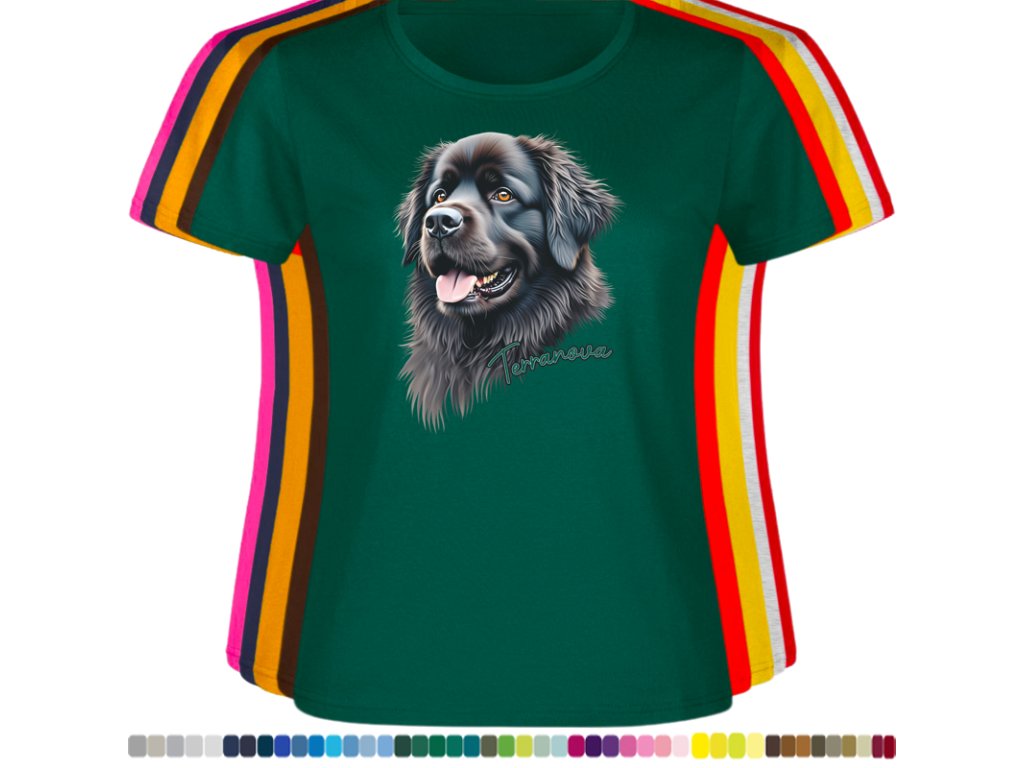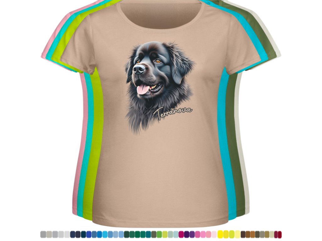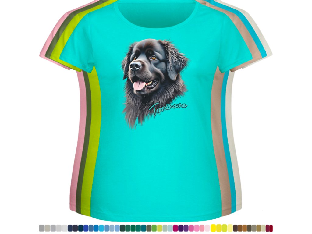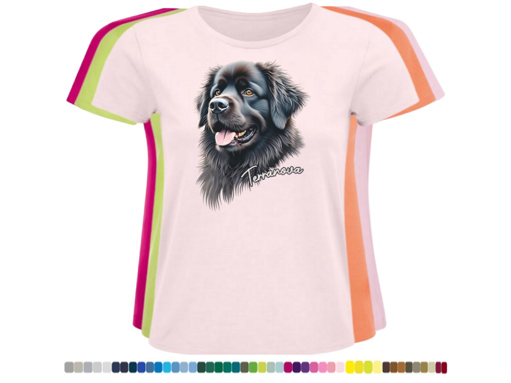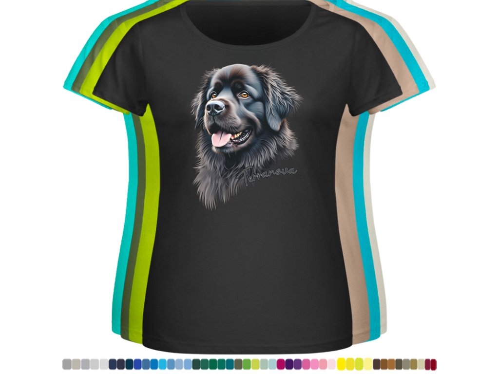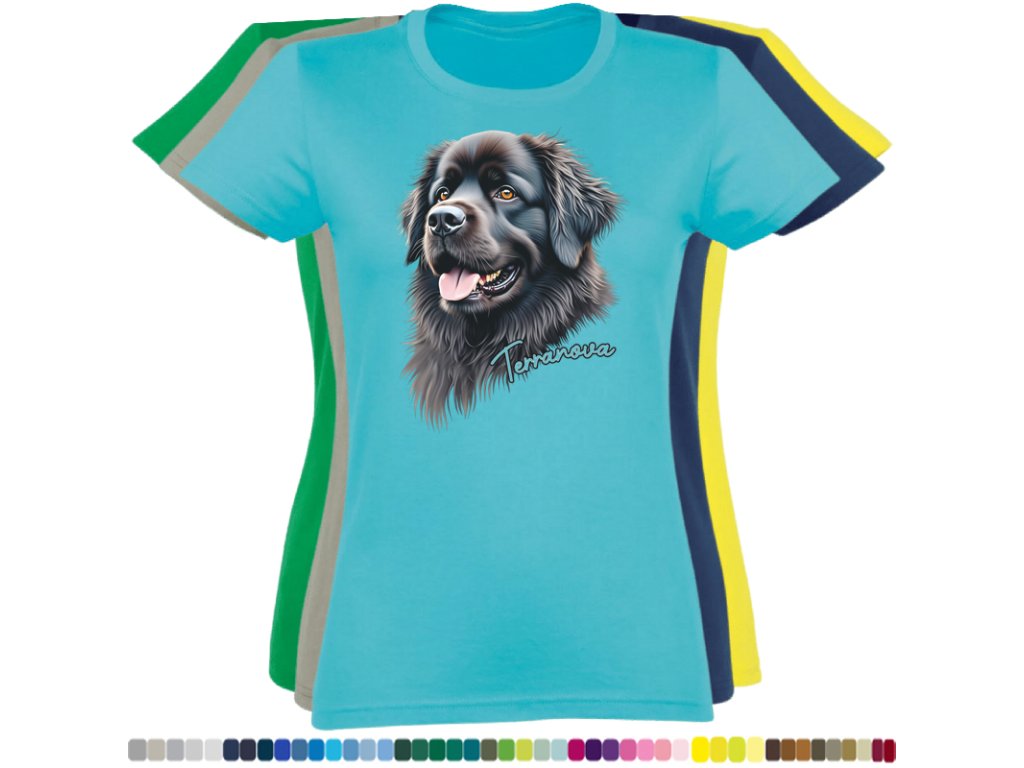 Dámské levné bavlněné tričko s digitálním potiskem Novofundlandský pes