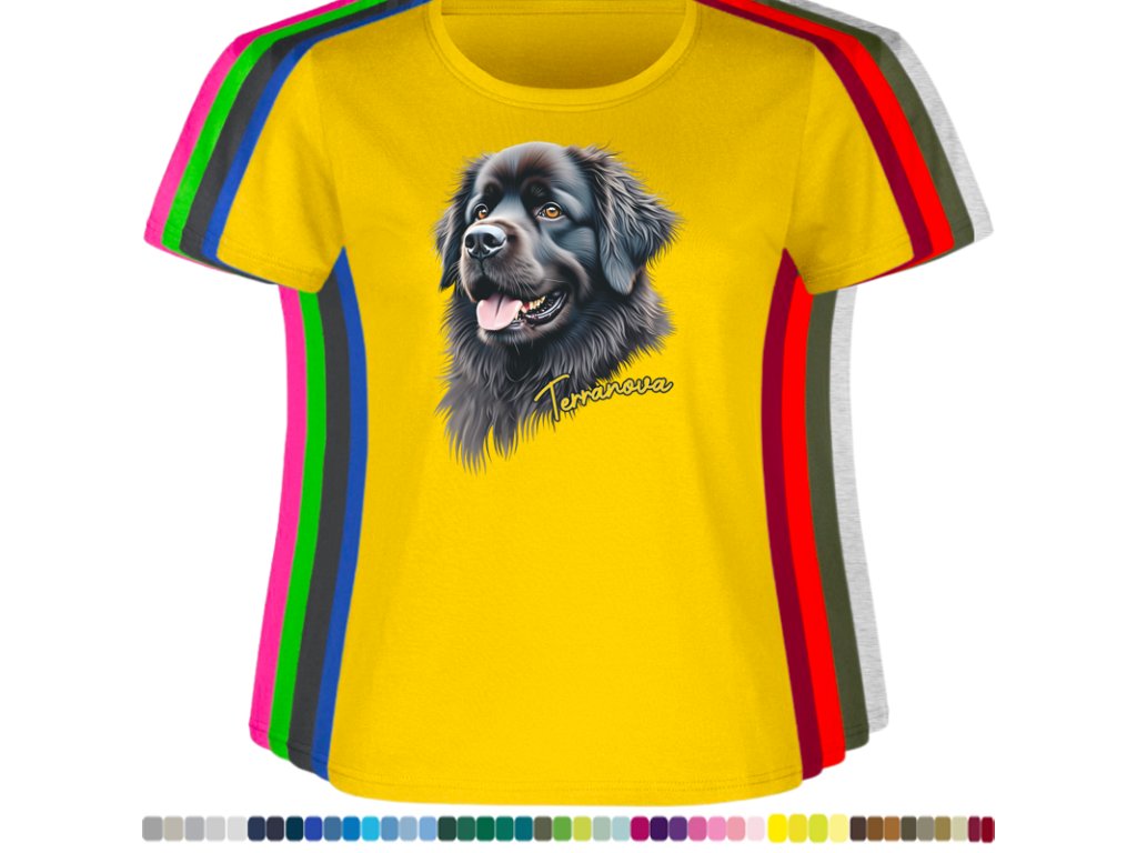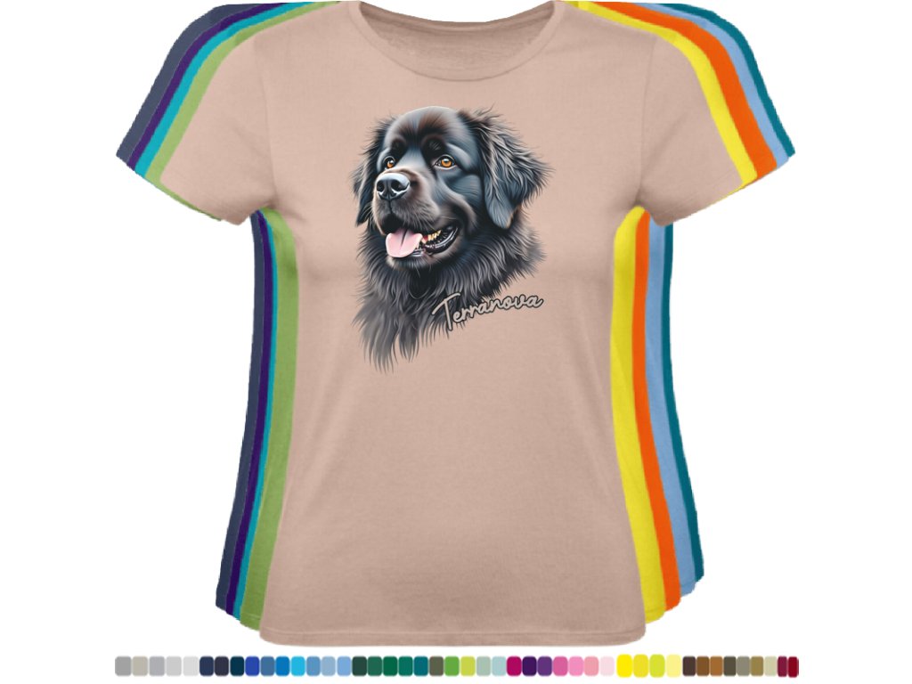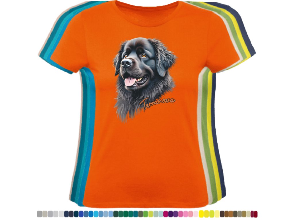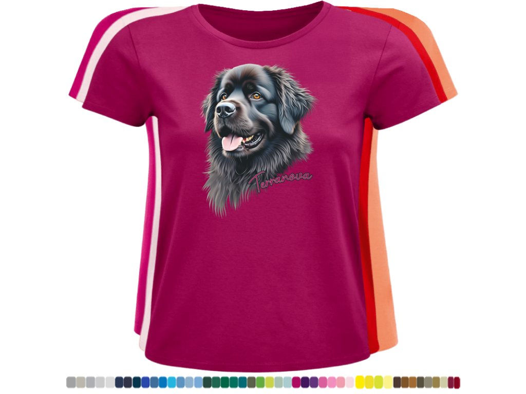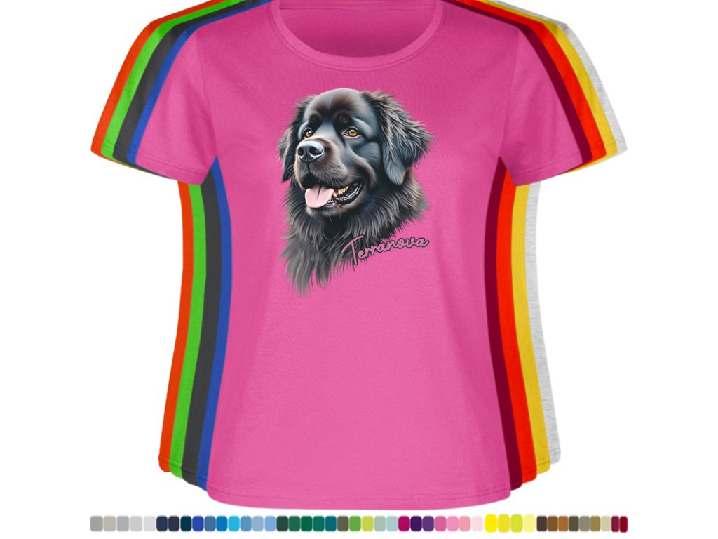 Dámské levné bavlněné tričko s digitálním potiskem Novofundlandský pes