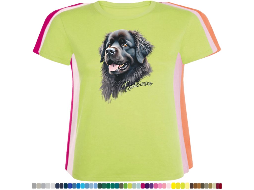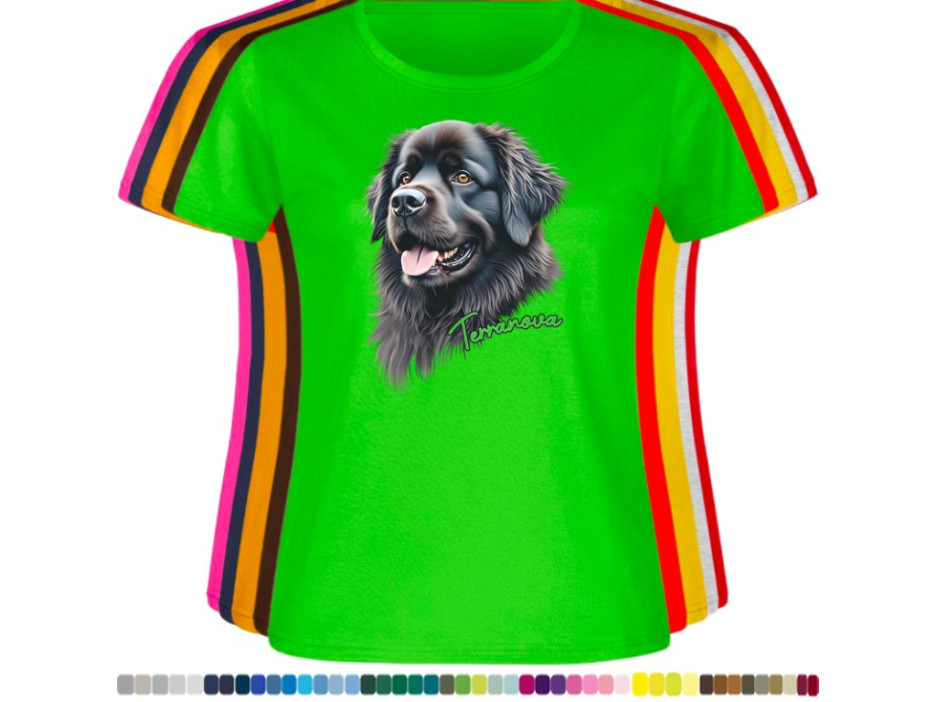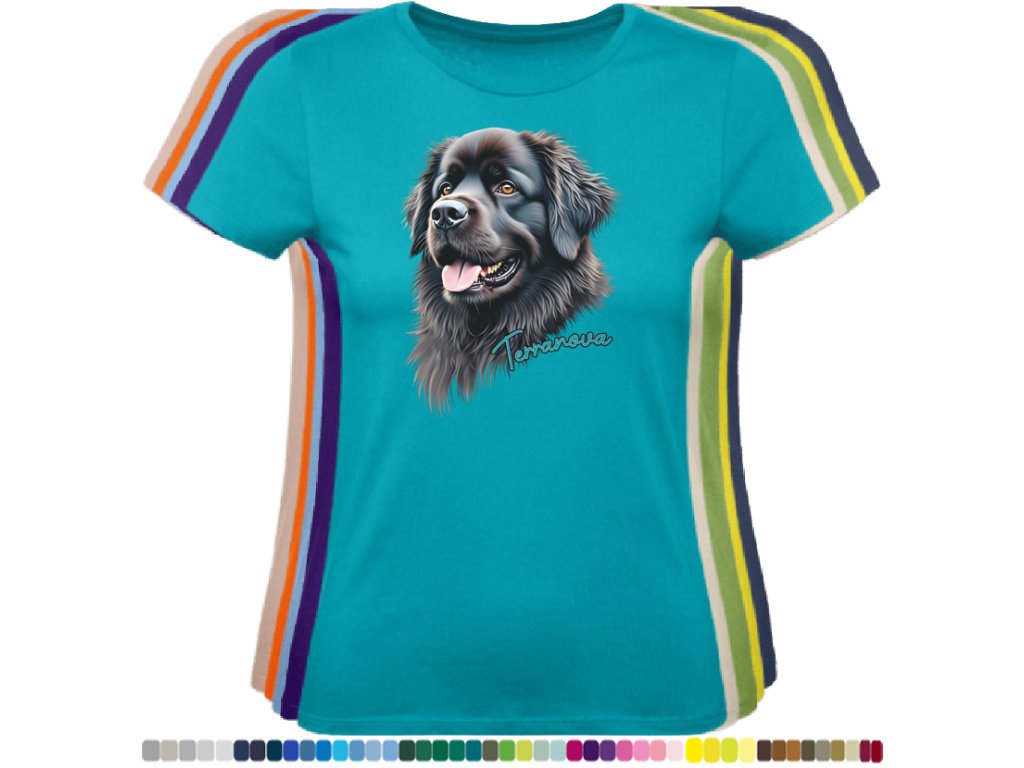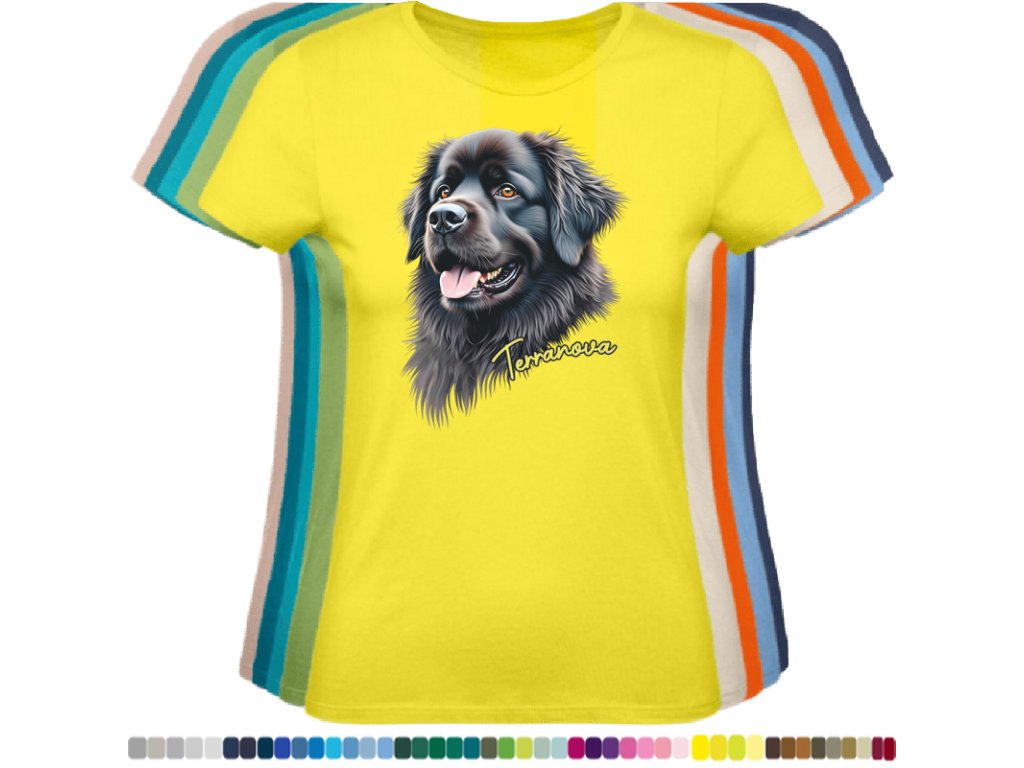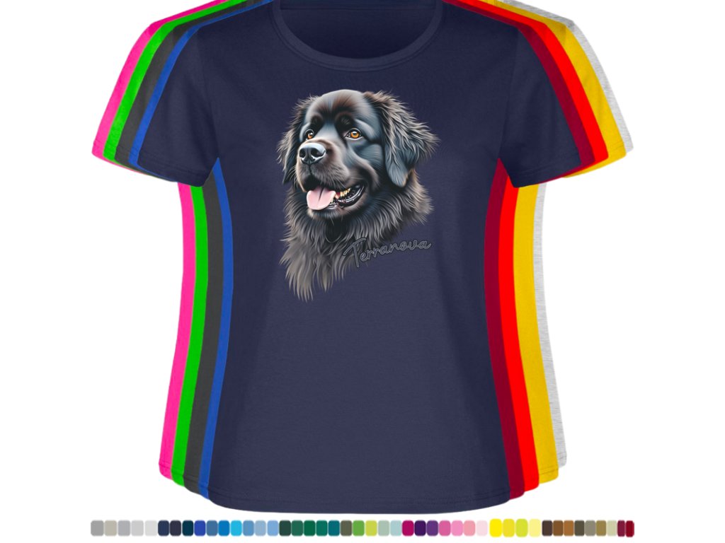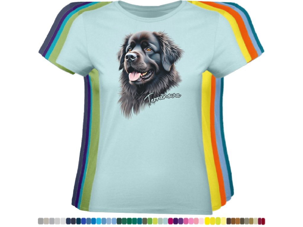 Dámské levné bavlněné tričko s digitálním potiskem Novofundlandský pes