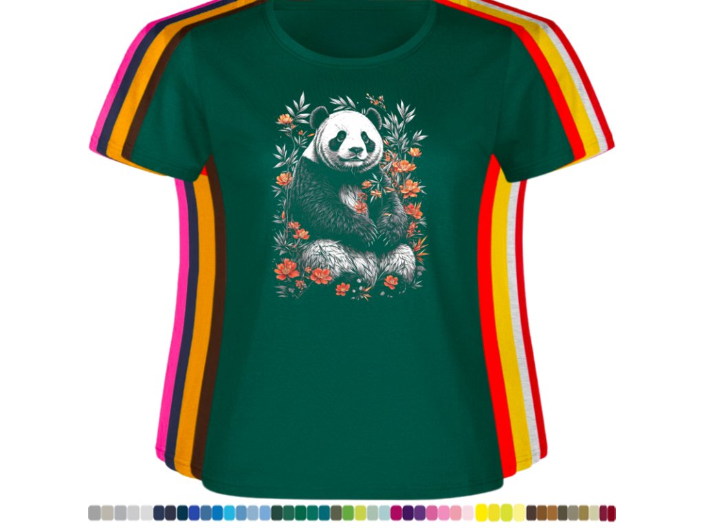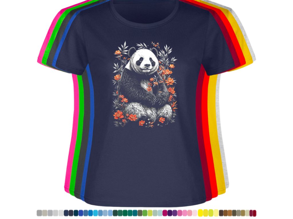 Dámské levné bavlněné tričko s digitálním potiskem Panda a květiny