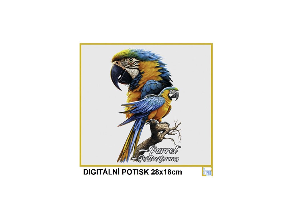 Dámské levné bavlněné tričko s digitálním potiskem Papoušek modrý - ptačí říše
