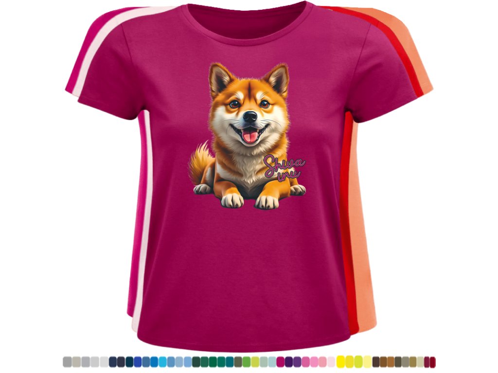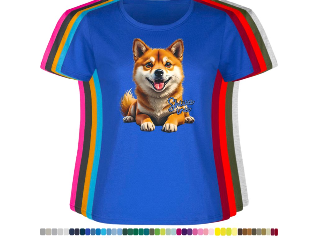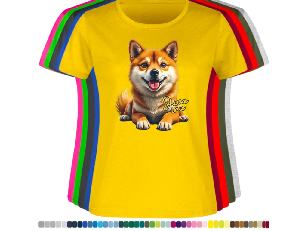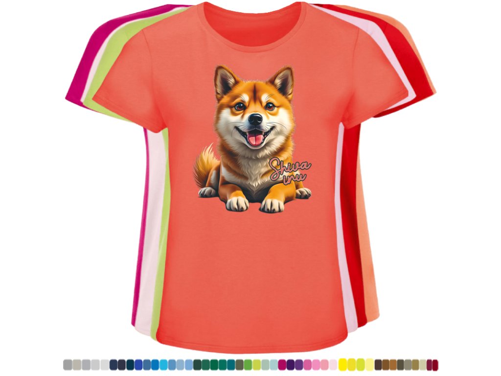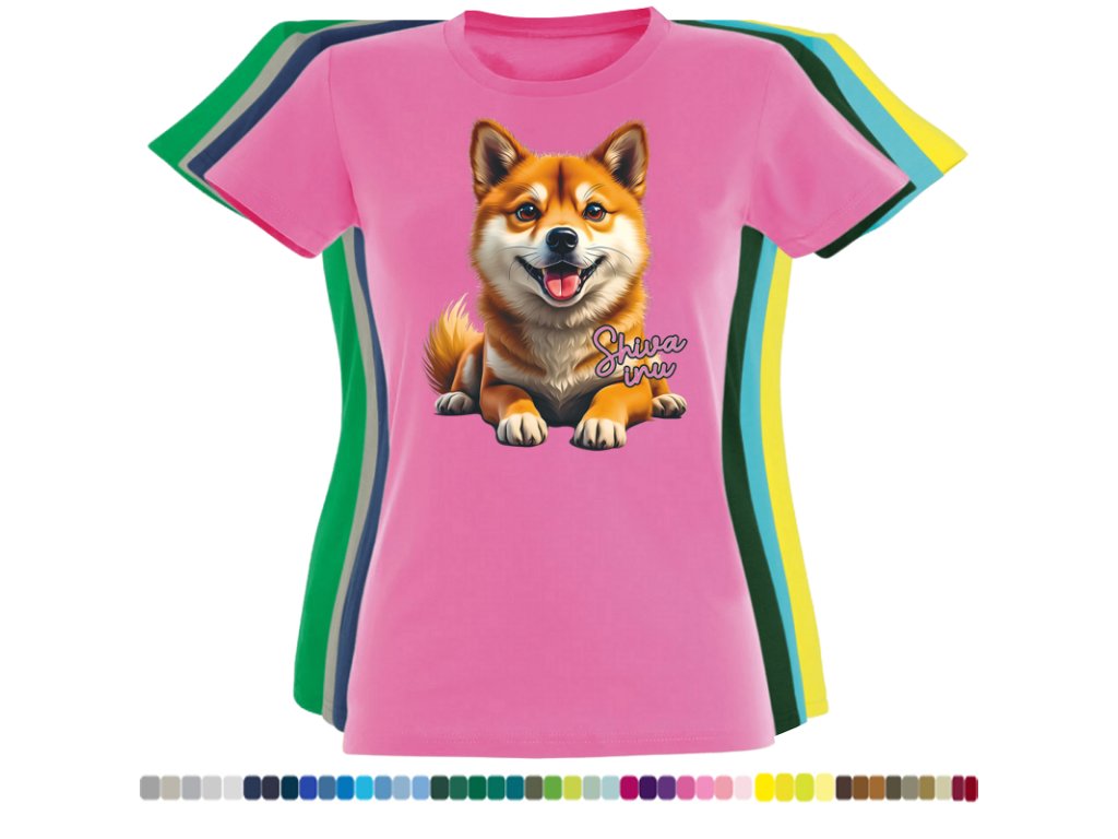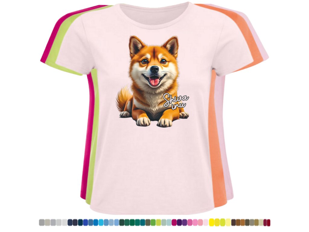DÁMSKÉ LEVNÉ BAVLNĚNÉ TRIČKO S DIGITÁLNÍM POTISKEM PSA SHIBA INU