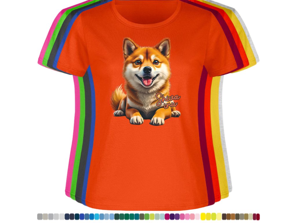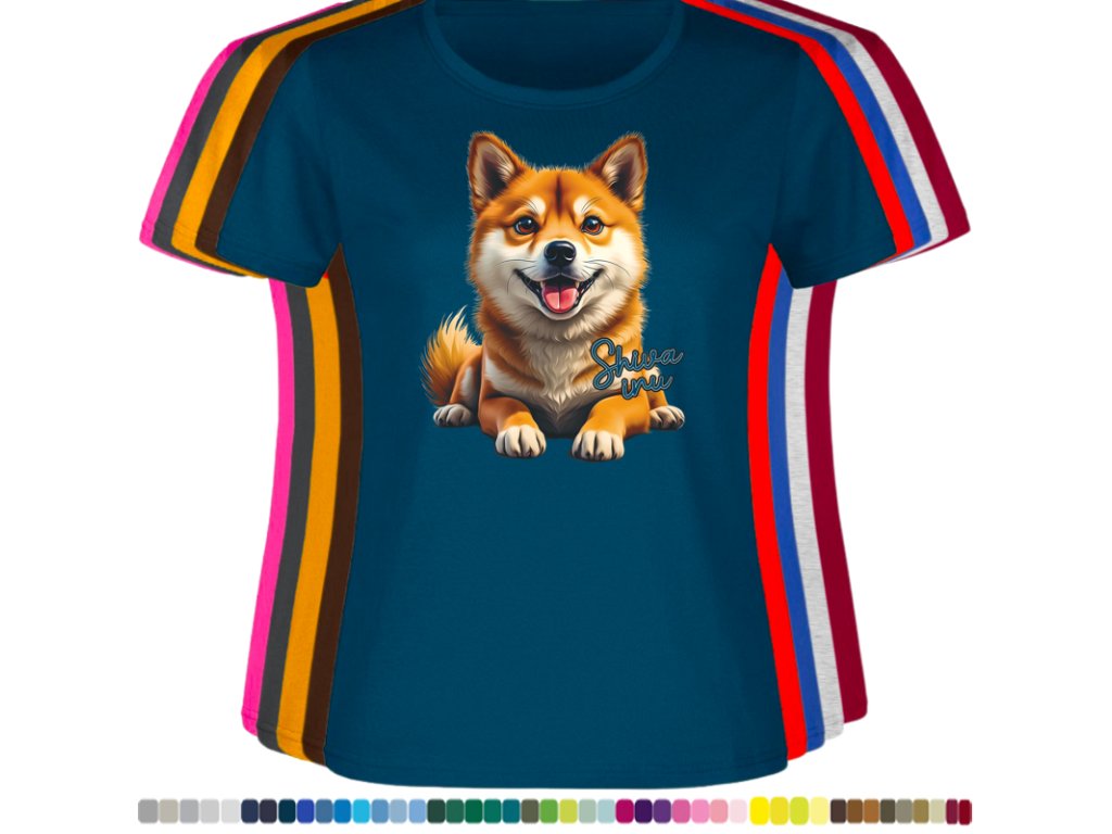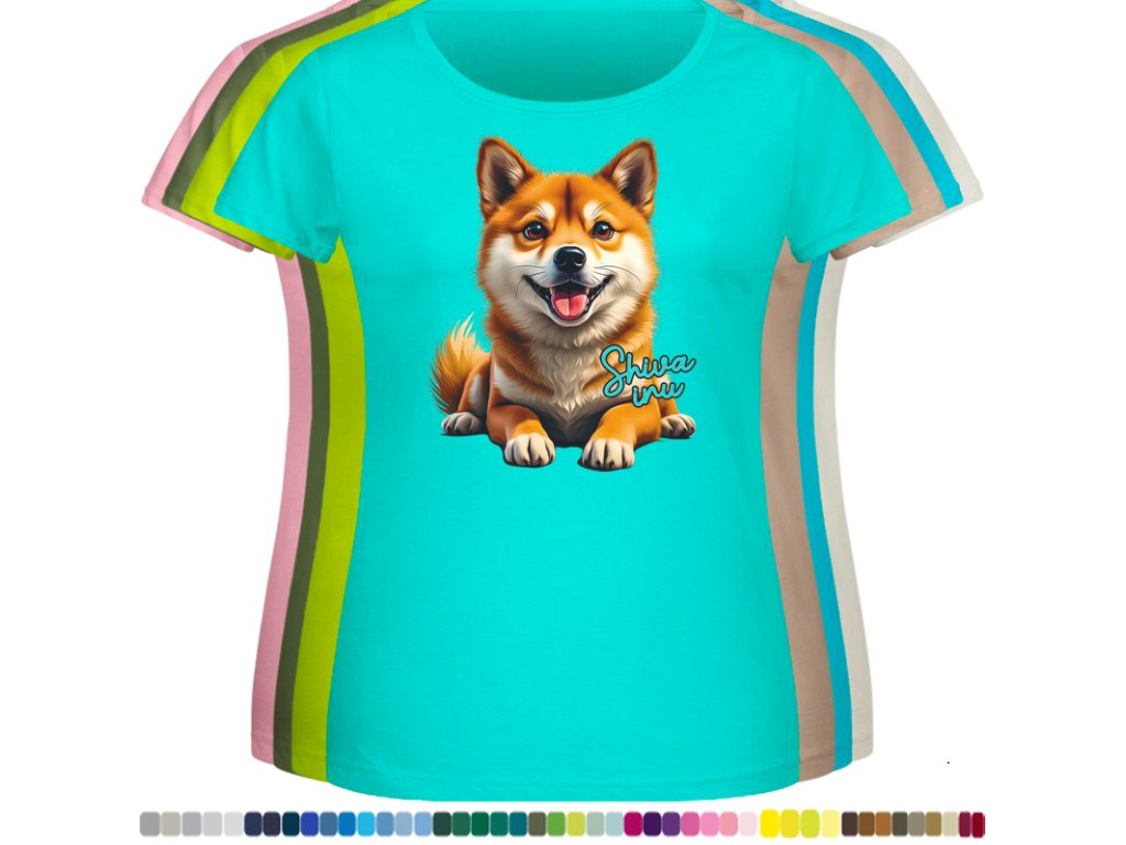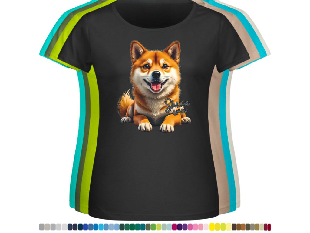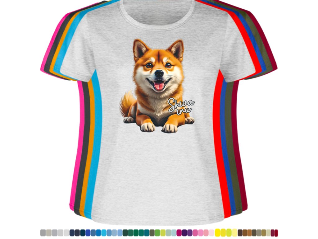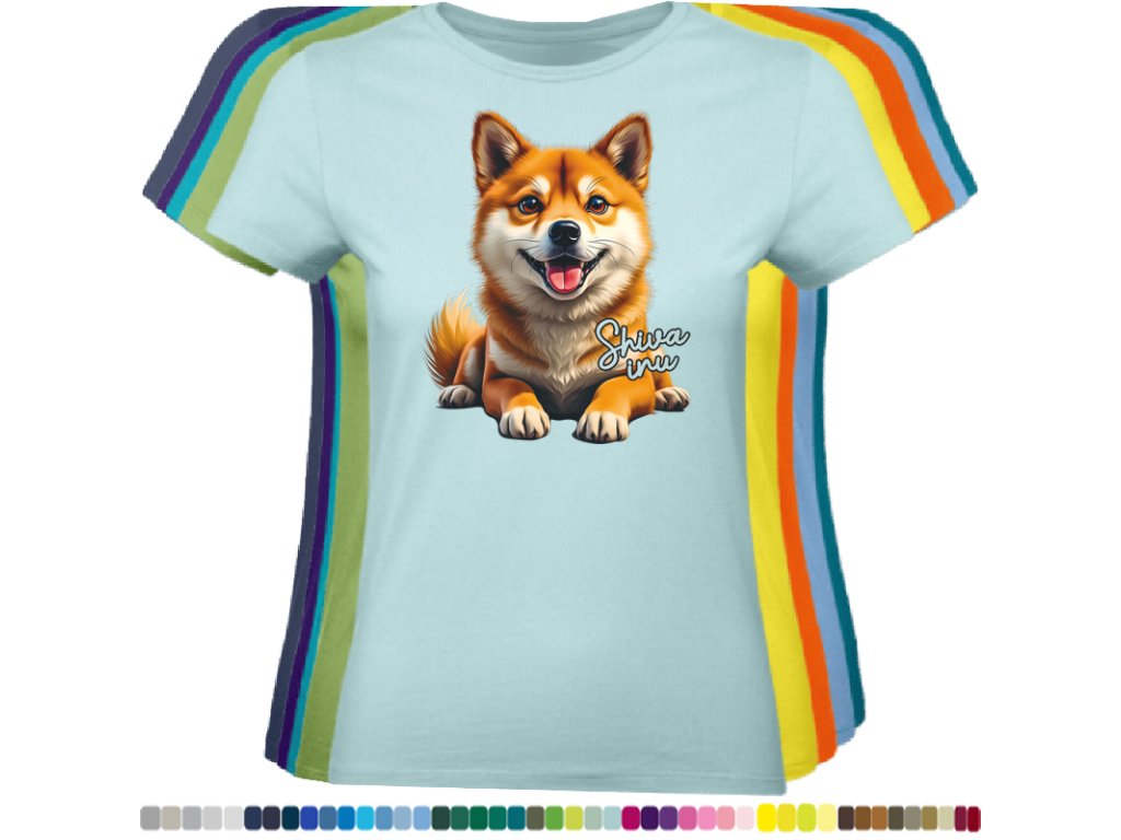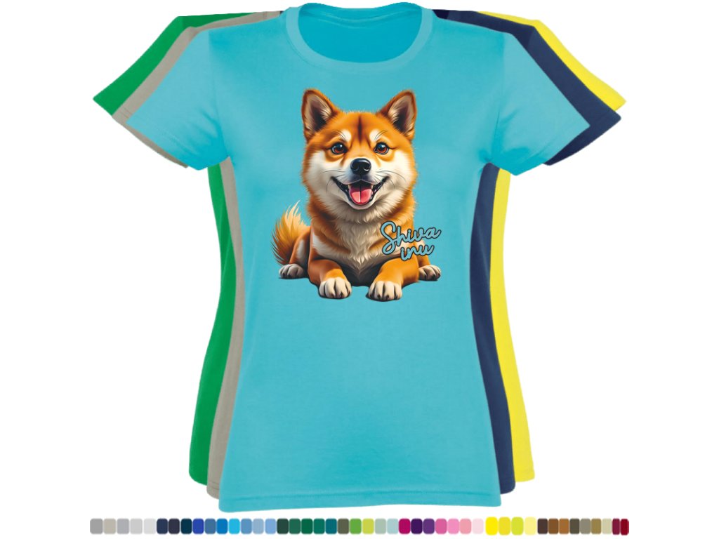 DÁMSKÉ LEVNÉ BAVLNĚNÉ TRIČKO S DIGITÁLNÍM POTISKEM PSA SHIBA INU