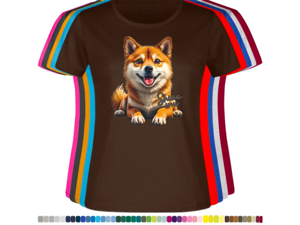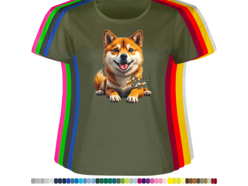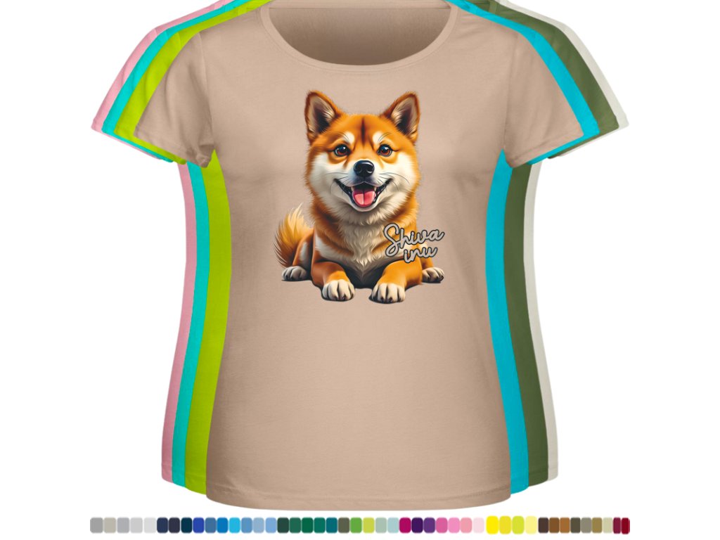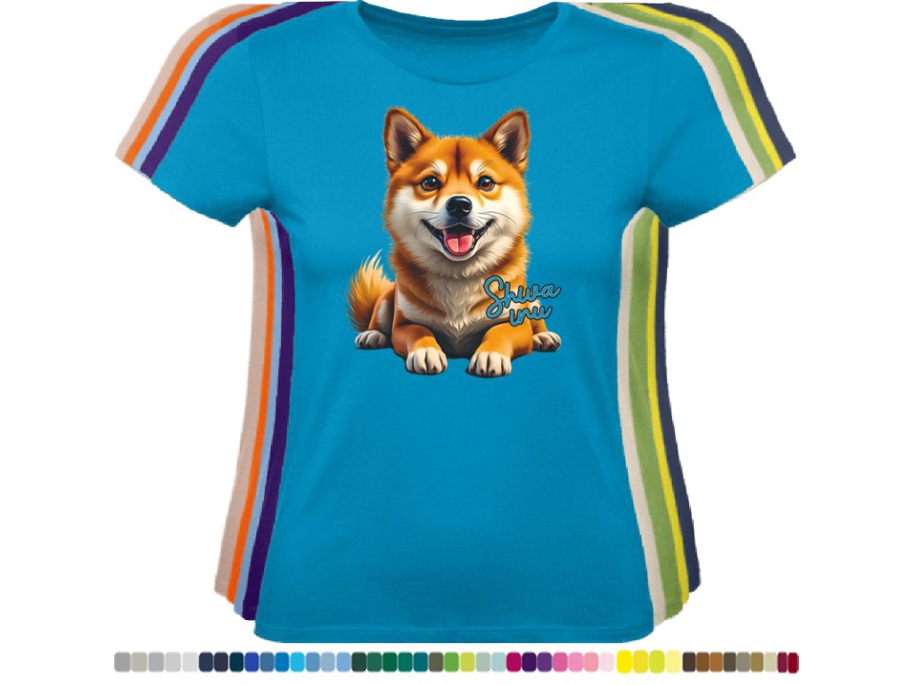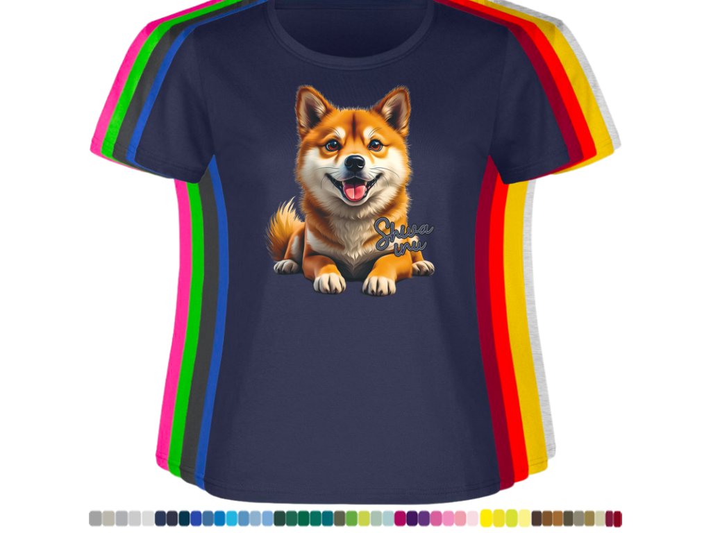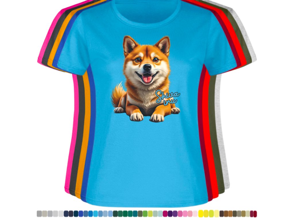 DÁMSKÉ LEVNÉ BAVLNĚNÉ TRIČKO S DIGITÁLNÍM POTISKEM PSA SHIBA INU