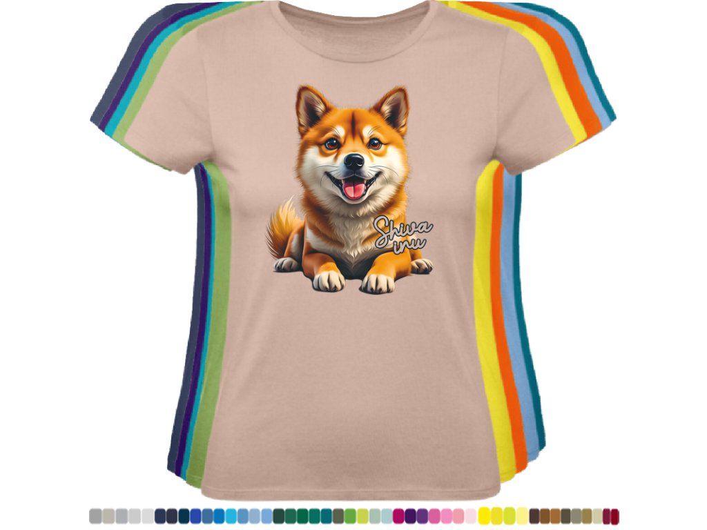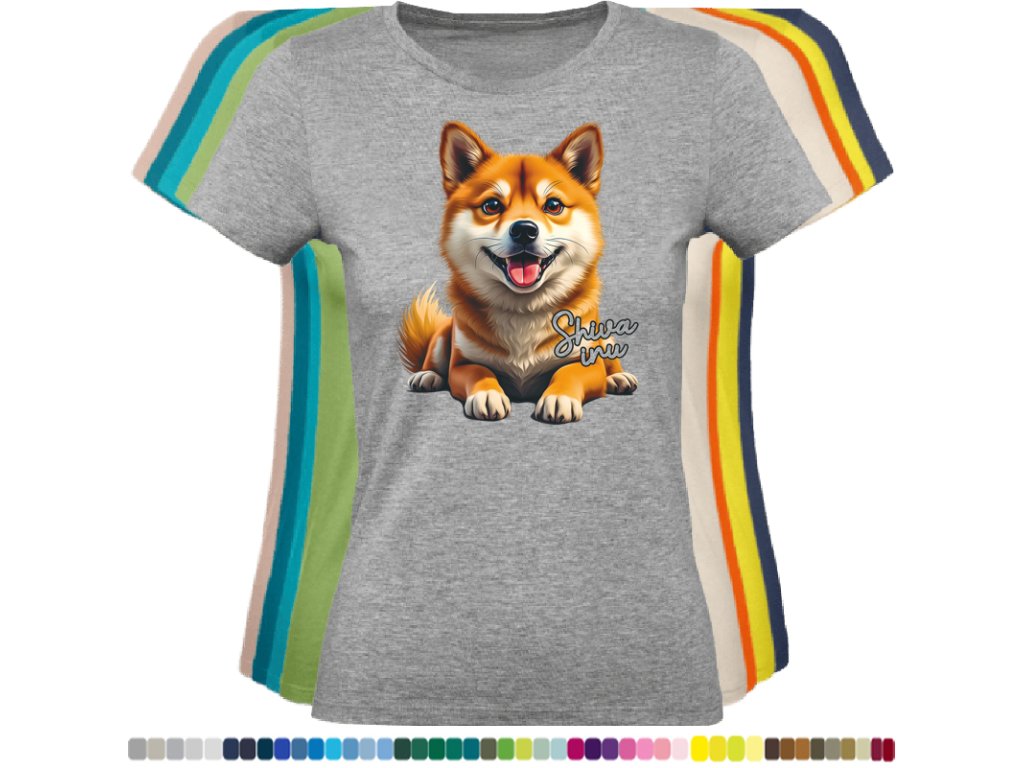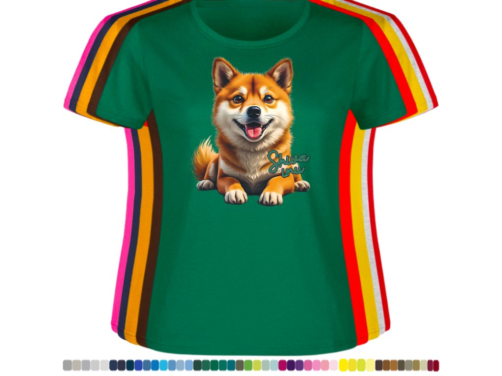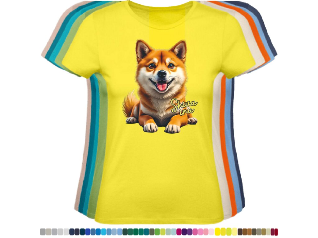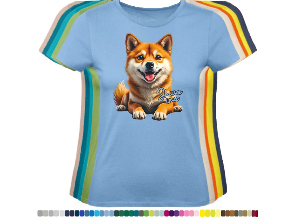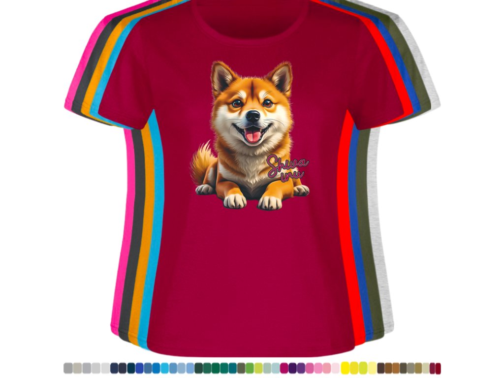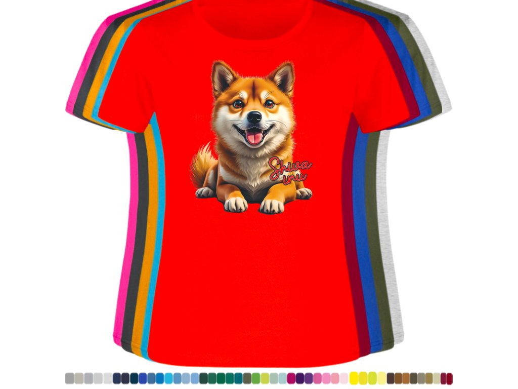 DÁMSKÉ LEVNÉ BAVLNĚNÉ TRIČKO S DIGITÁLNÍM POTISKEM PSA SHIBA INU
