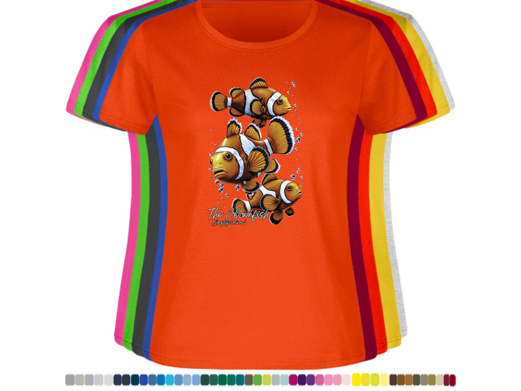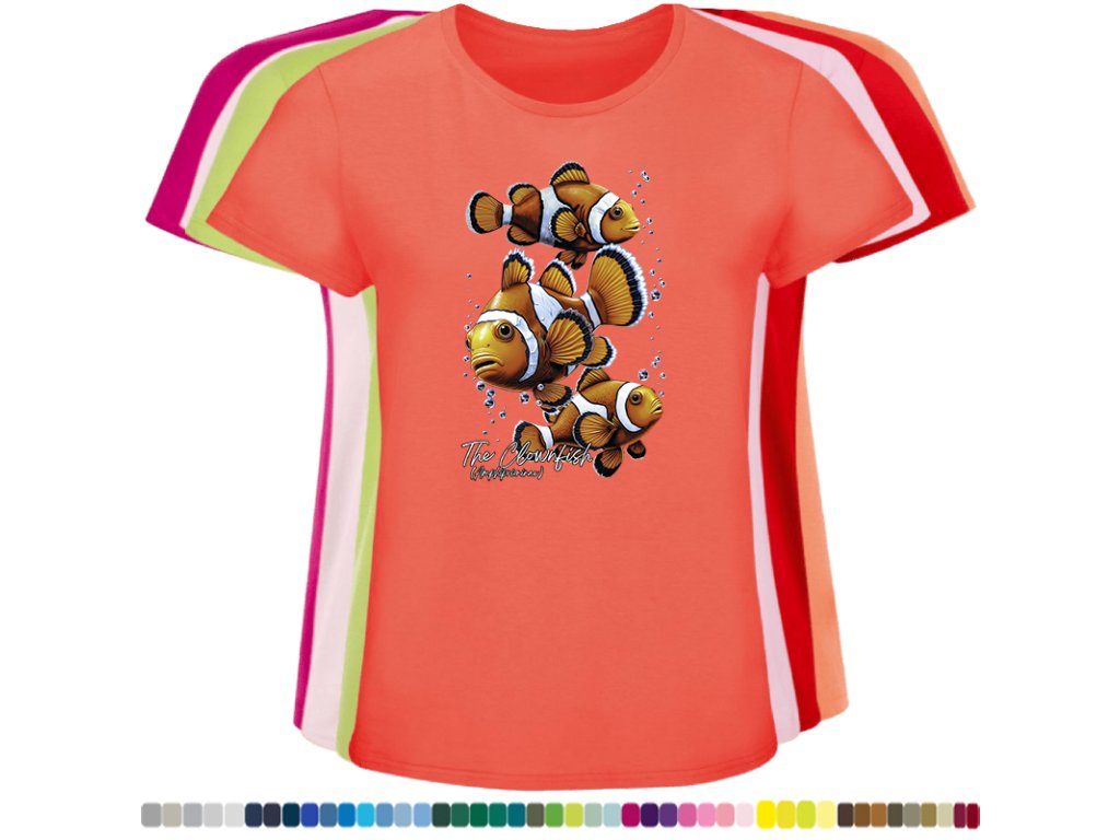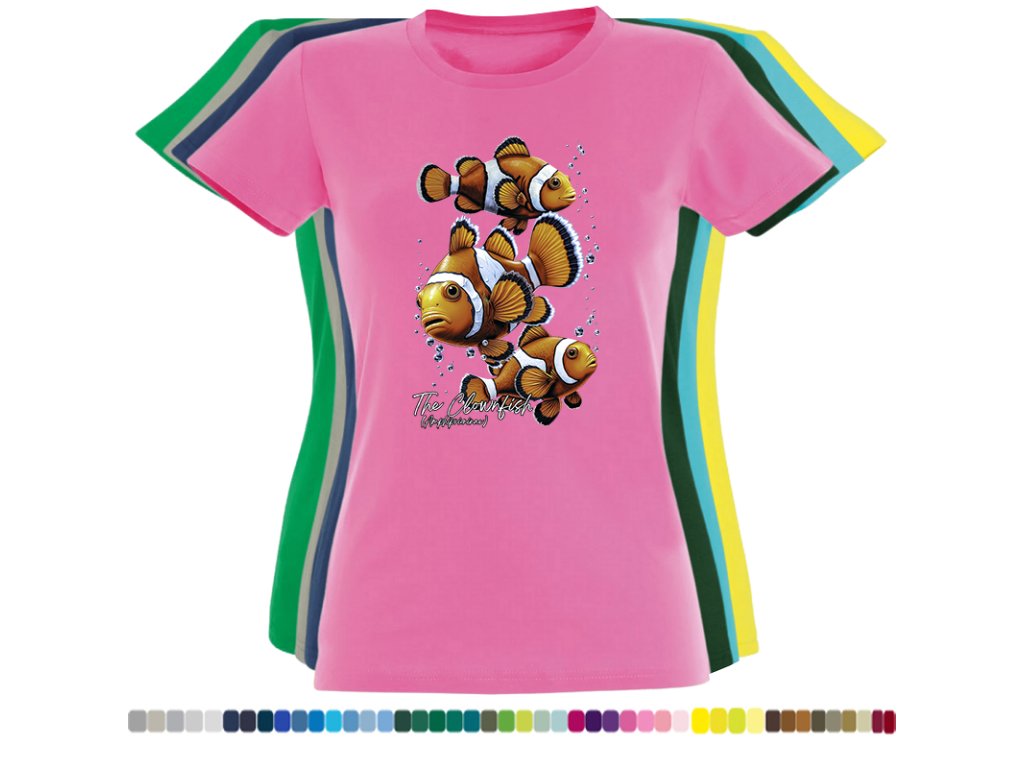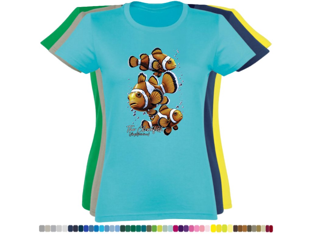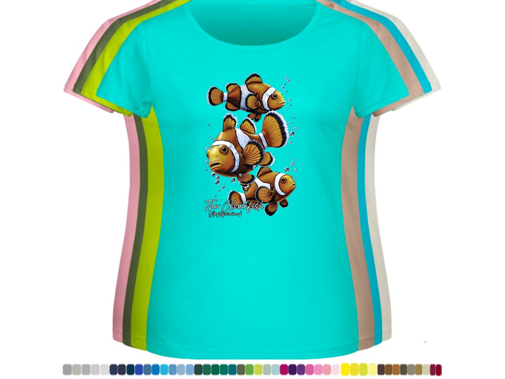 DÁMSKÉ LEVNÉ BAVLNĚNÉ TRIČKO S DIGITÁLNÍM POTISKEM RYBIČKY KLAUNA