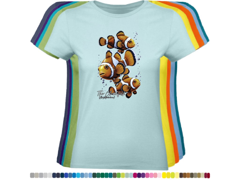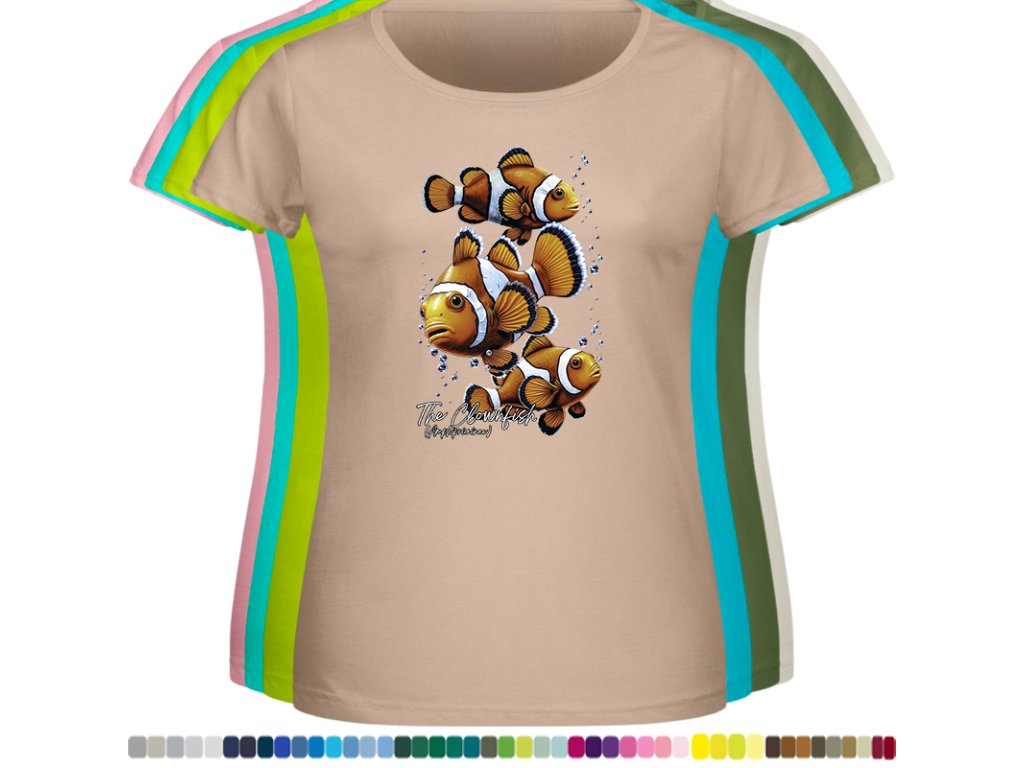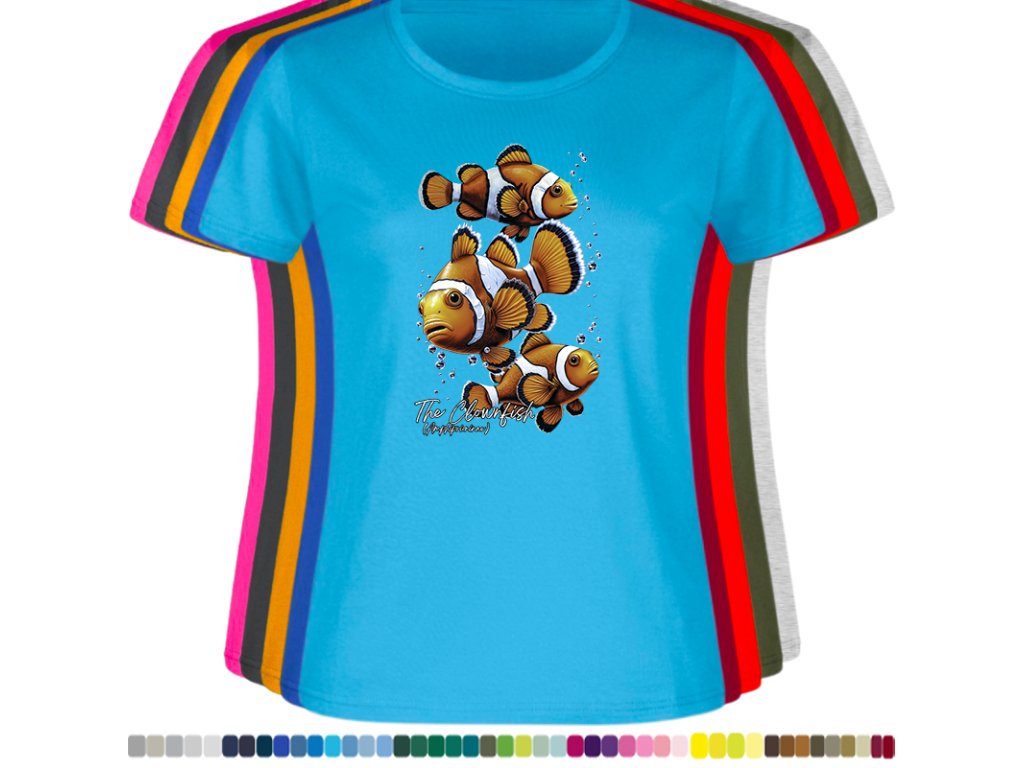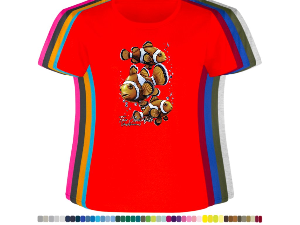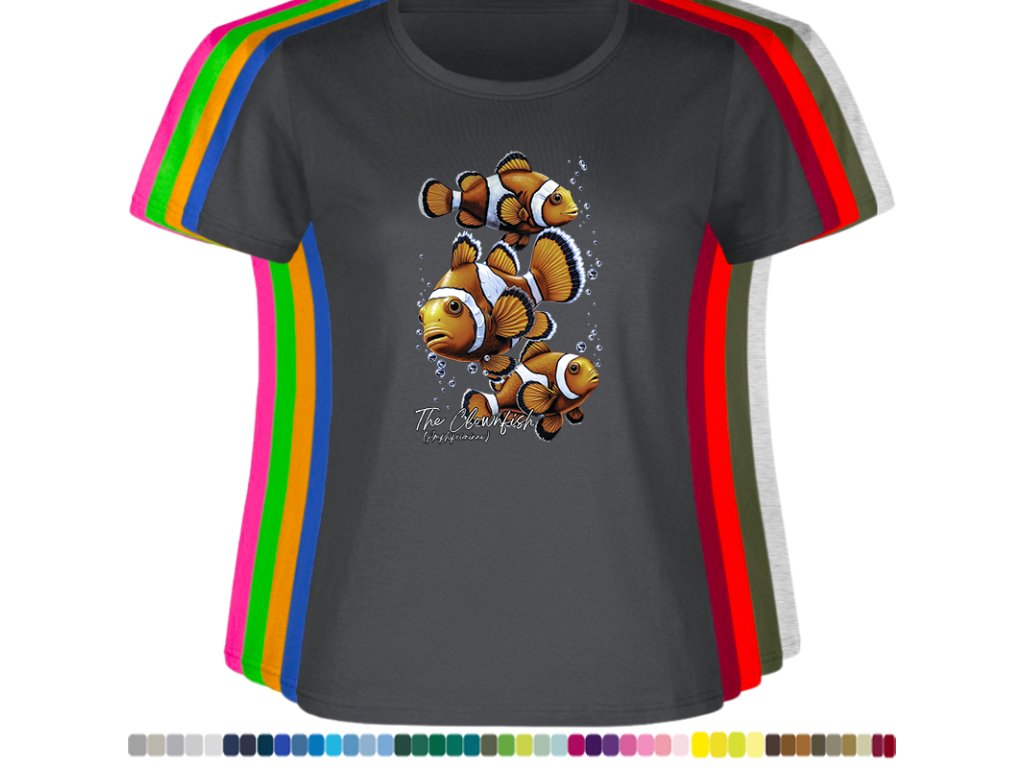 DÁMSKÉ LEVNÉ BAVLNĚNÉ TRIČKO S DIGITÁLNÍM POTISKEM RYBIČKY KLAUNA