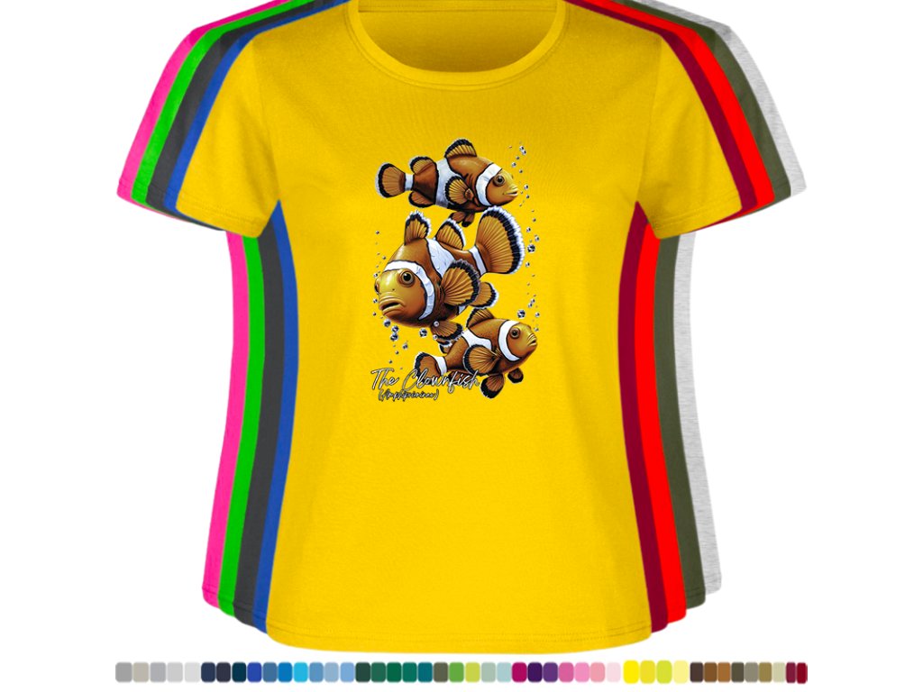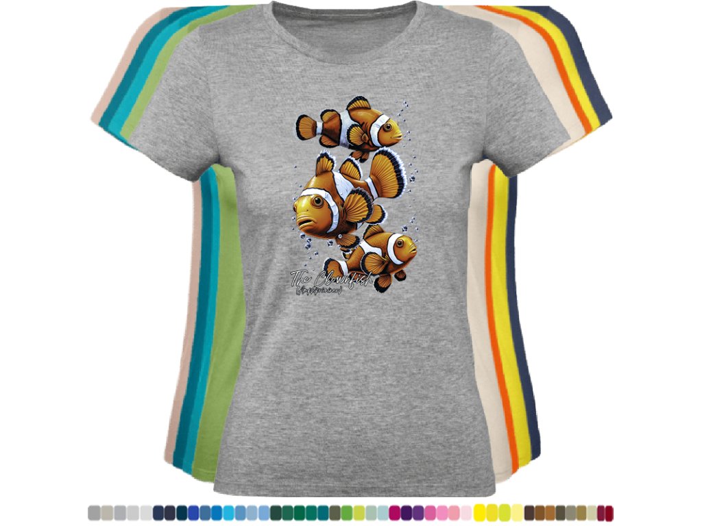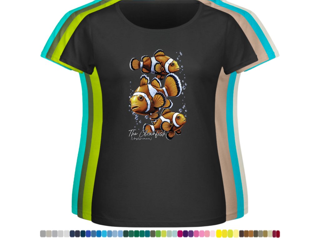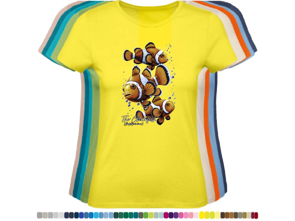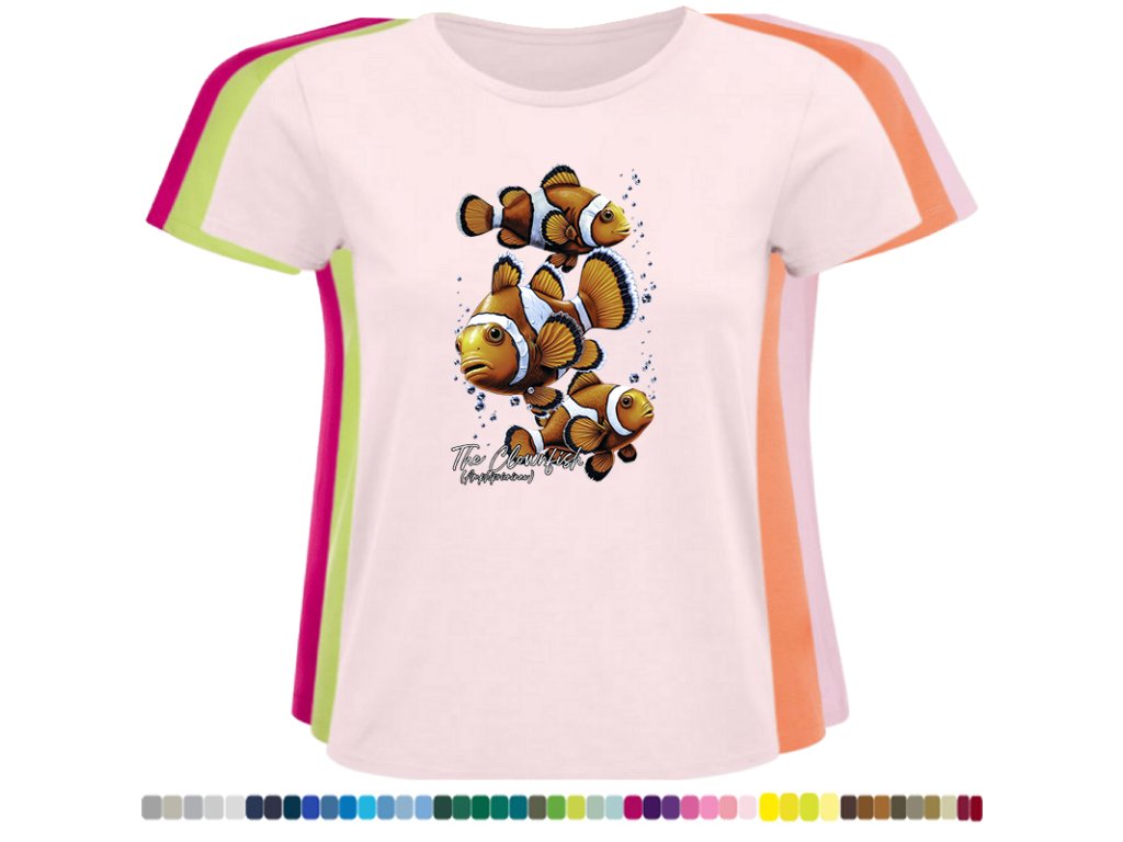 Dámské levné bavlněné tričko s digitálním potiskem Rybičky klauni - mořský svět