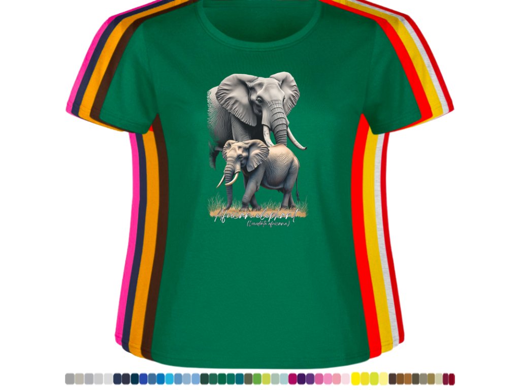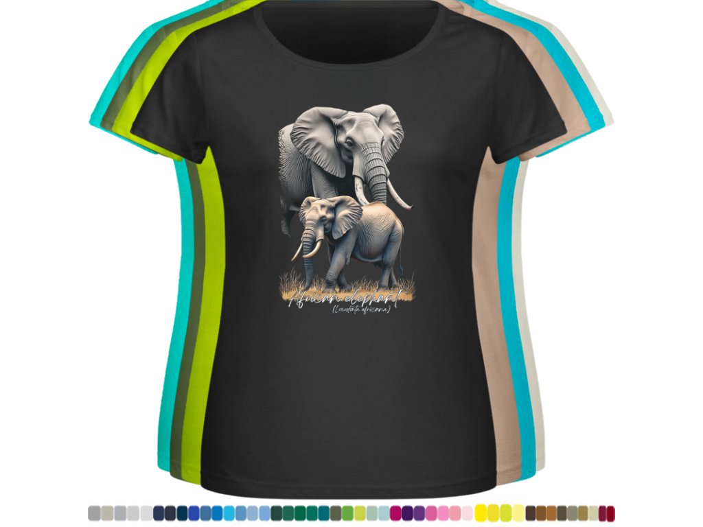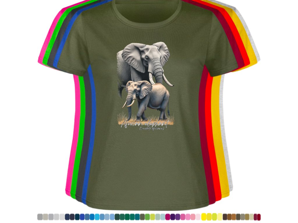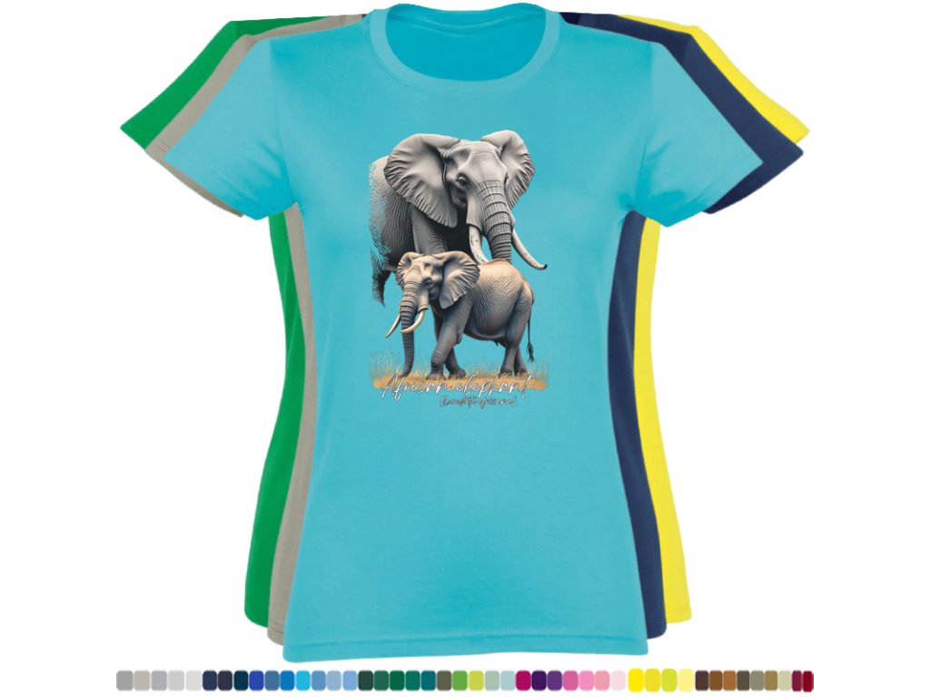 DÁMSKÉ LEVNÉ BAVLNĚNÉ TRIČKO S DIGITÁLNÍM POTISKEM SLONA AFRICKÉHO