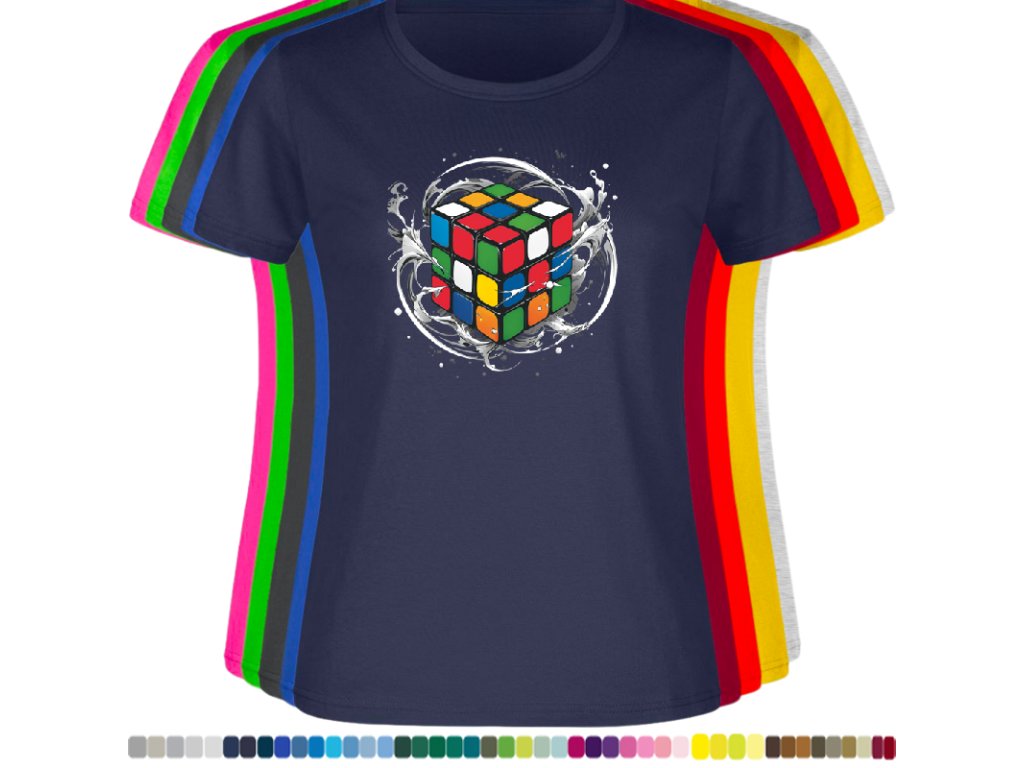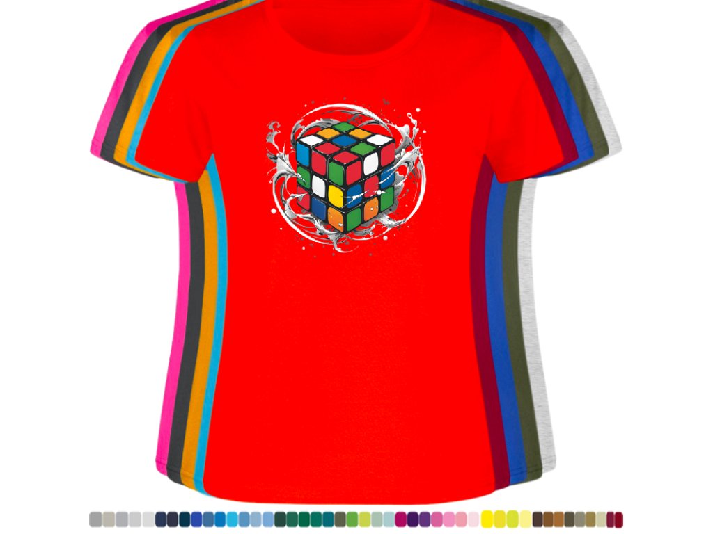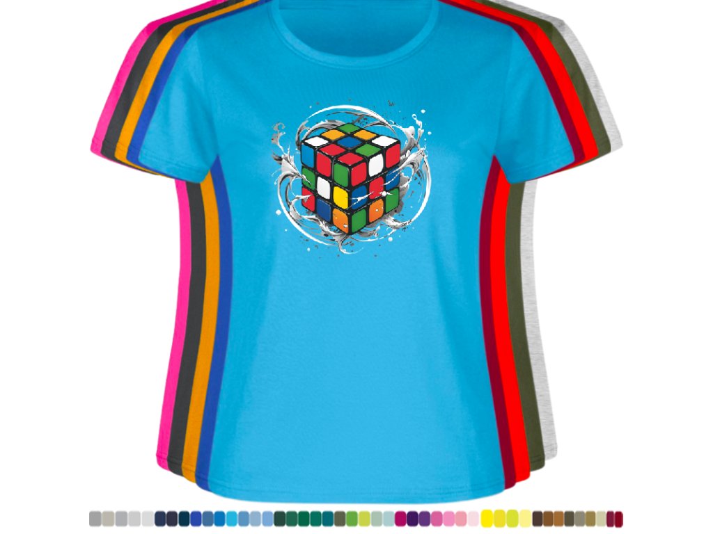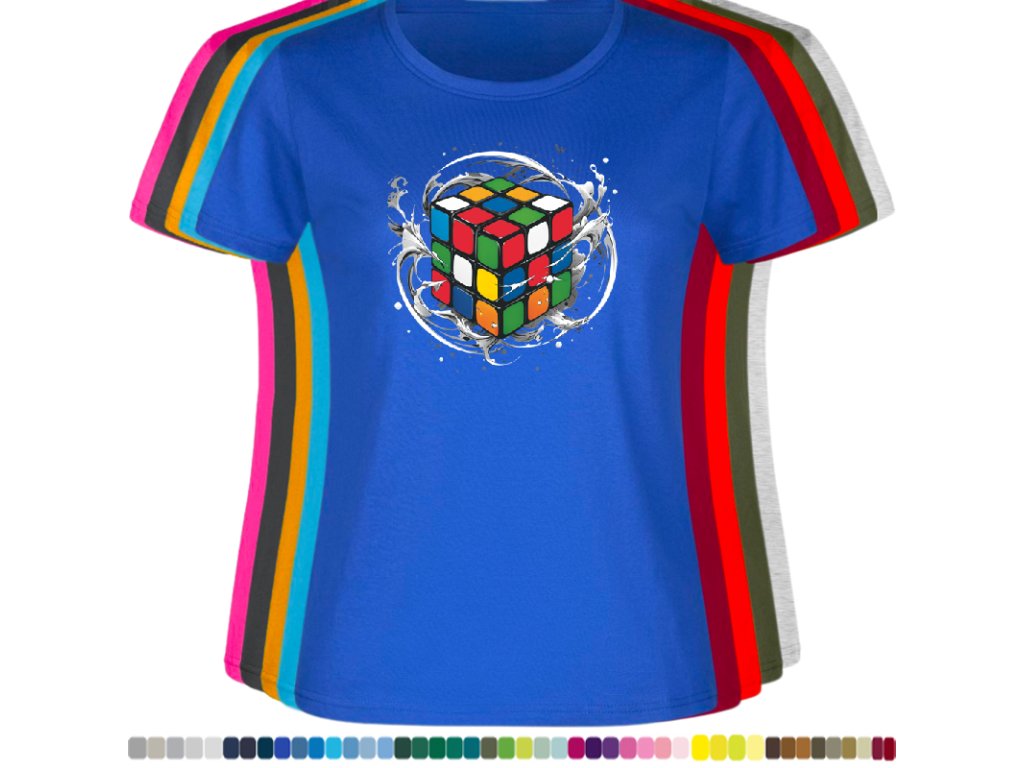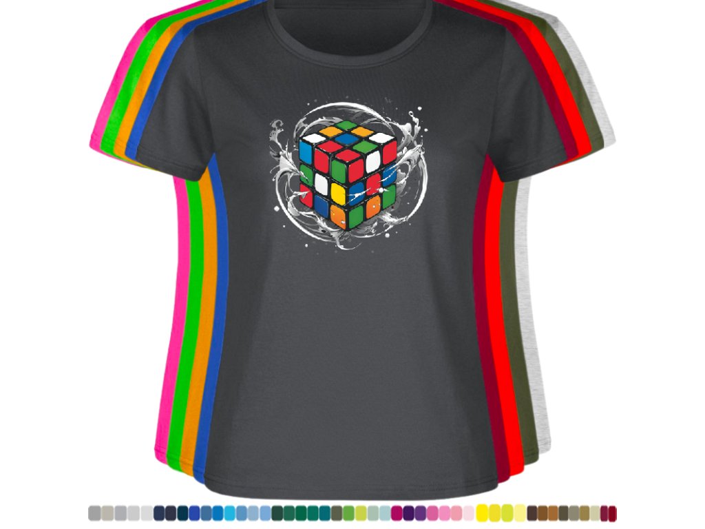 Dámské levné bavlněné tričko s digitálním potiskem Složení Rubikovi kostky