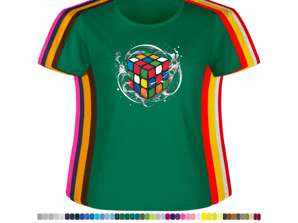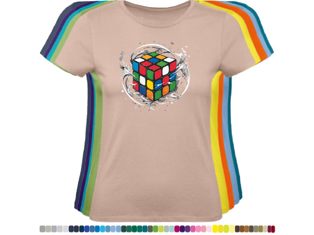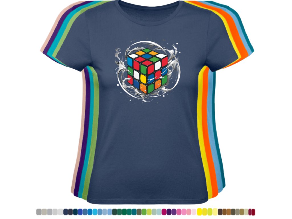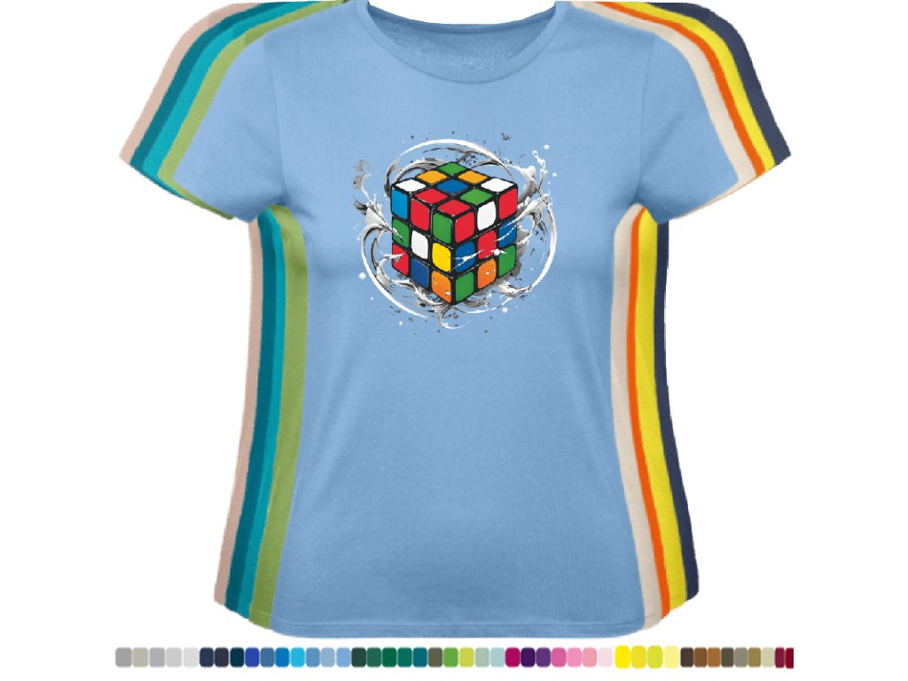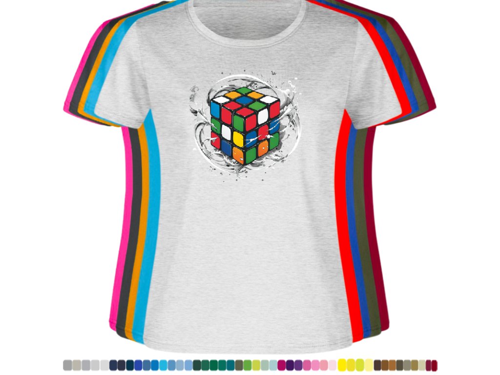 Dámské levné bavlněné tričko s digitálním potiskem Složení Rubikovi kostky