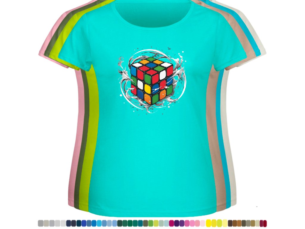 DÁMSKÉ LEVNÉ BAVLNĚNÉ TRIČKO S DIGITÁLNÍM POTISKEM SLOŽENÍ RUBIKOVI KOSTKY