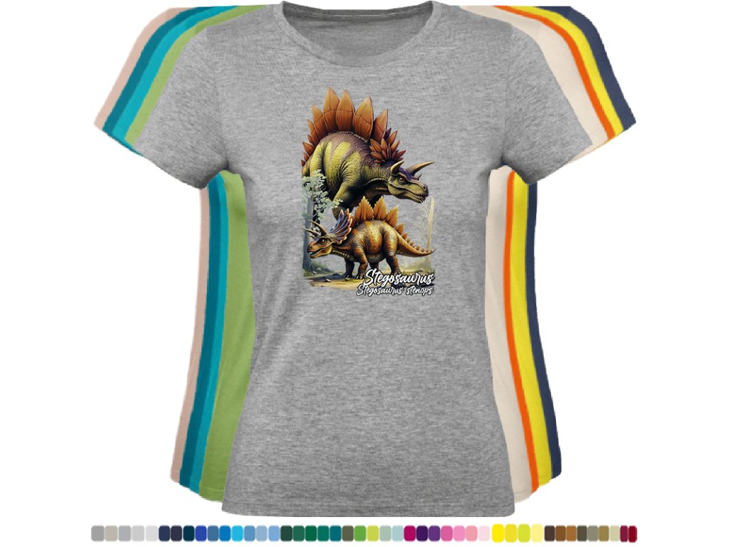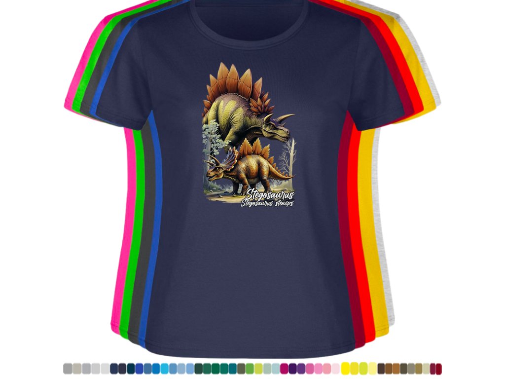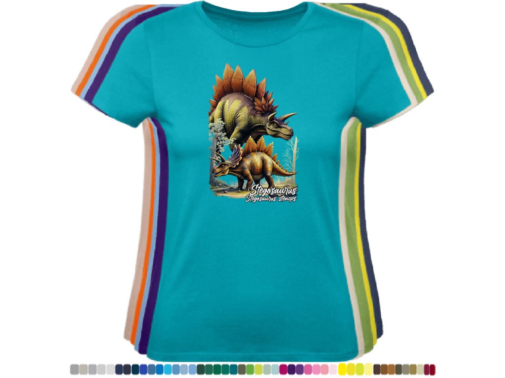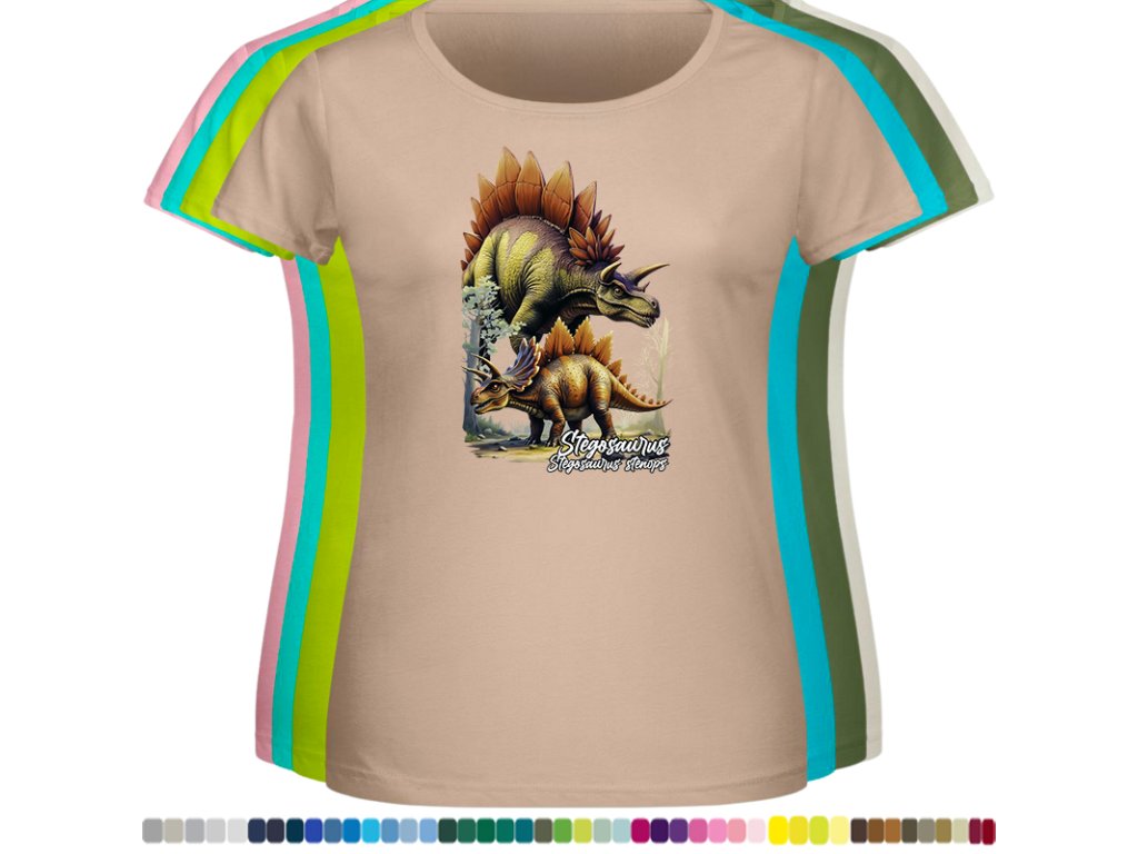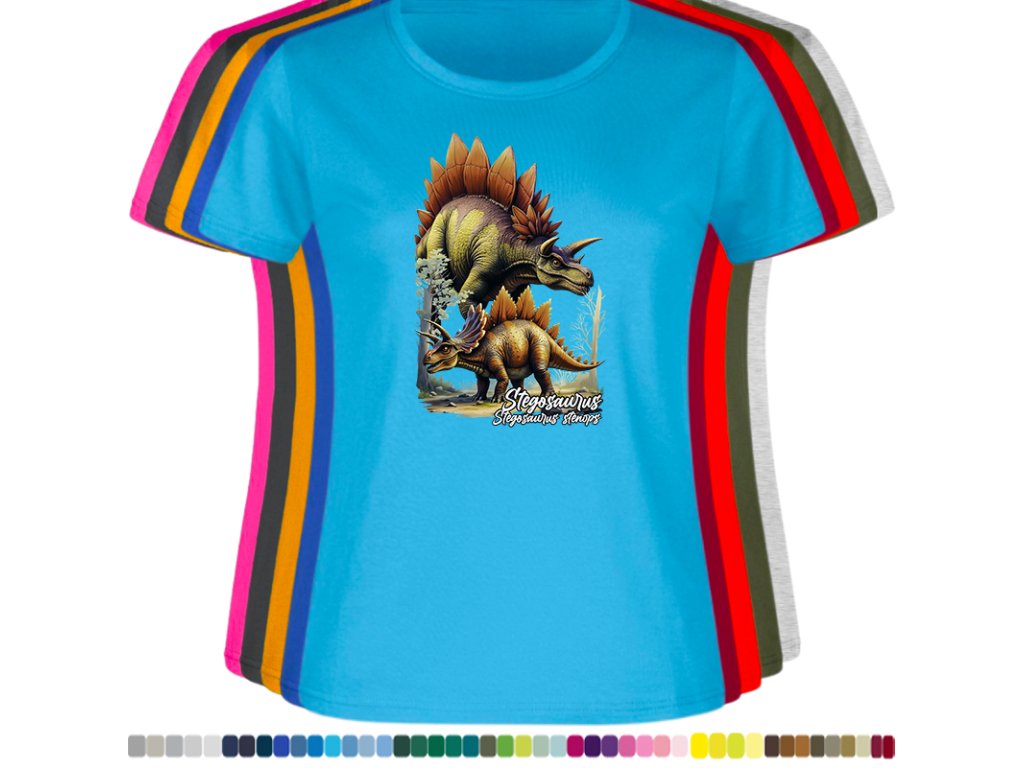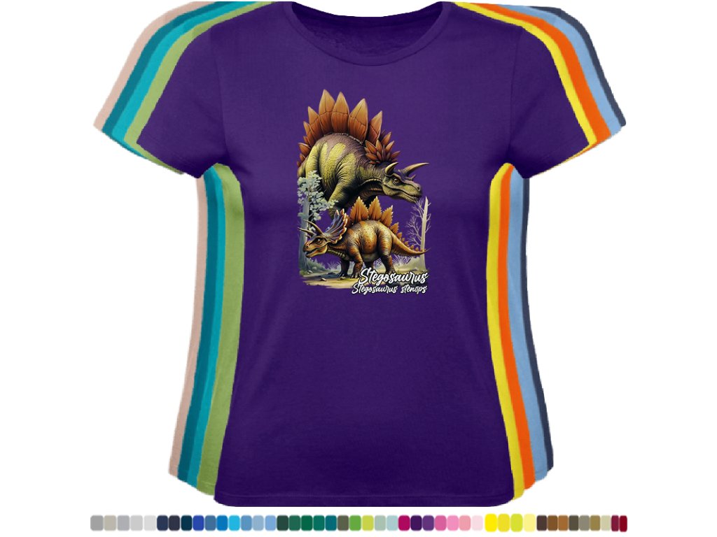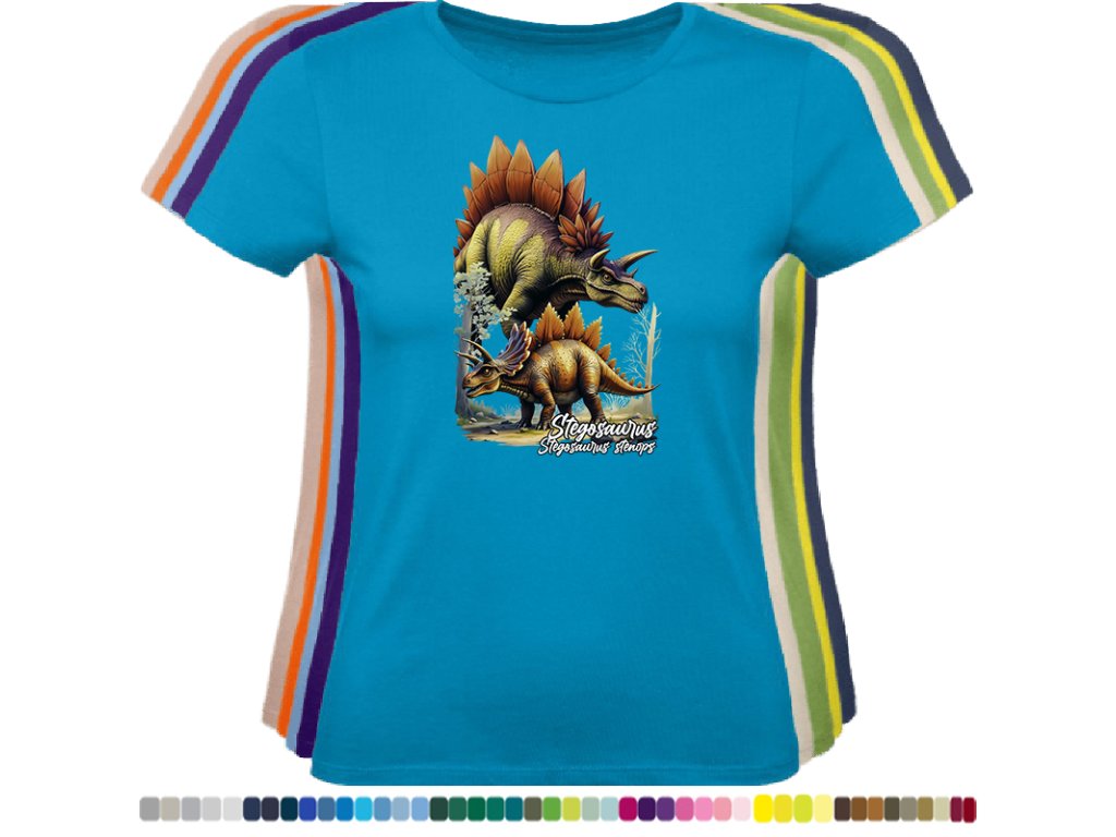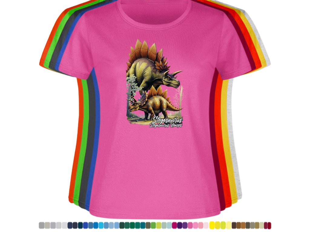 Dámské levné bavlněné tričko s digitálním potiskem Stegosaurus - dino atlas