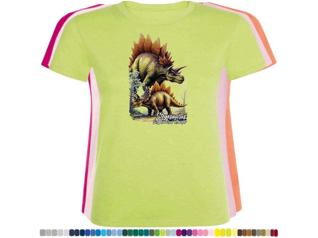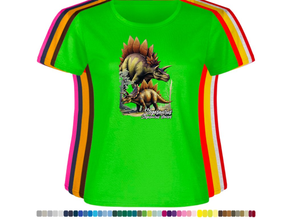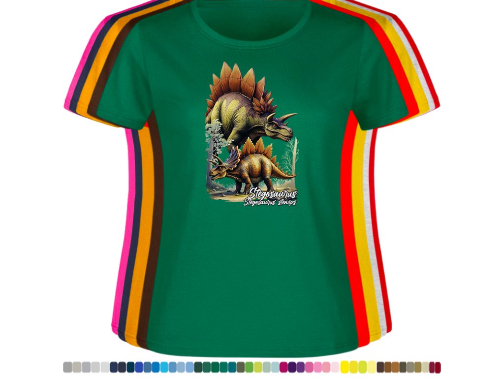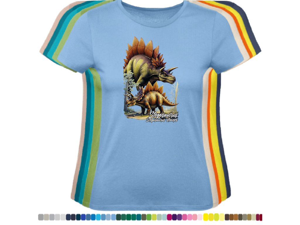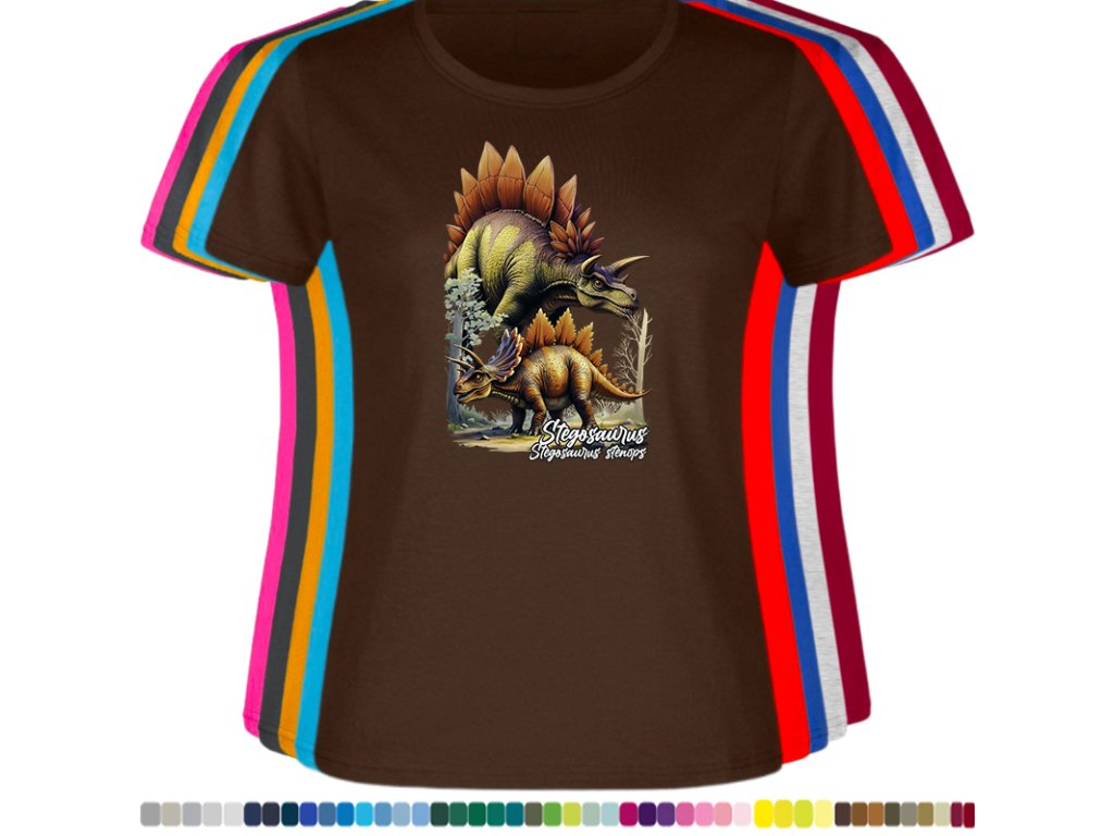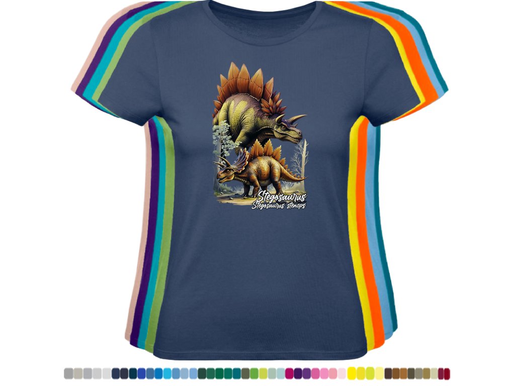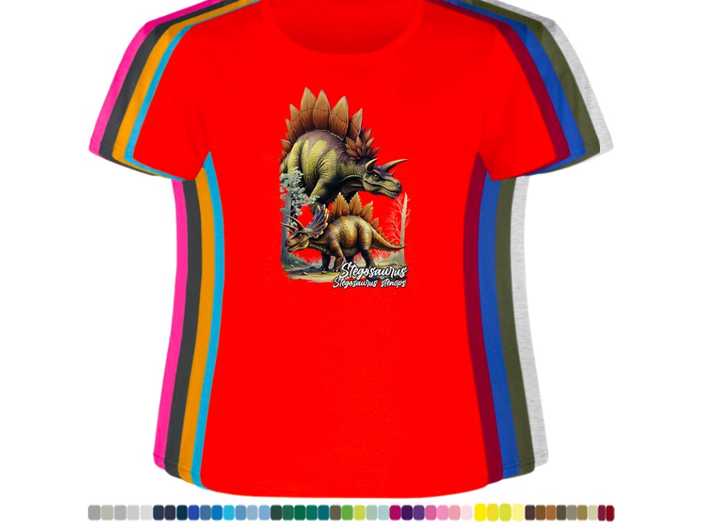 Dámské levné bavlněné tričko s digitálním potiskem Stegosaurus - dino atlas