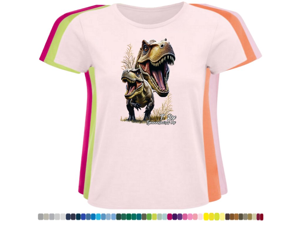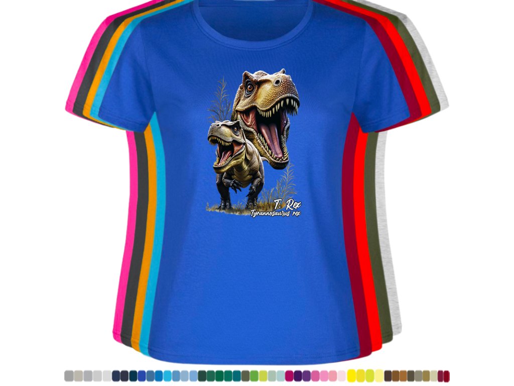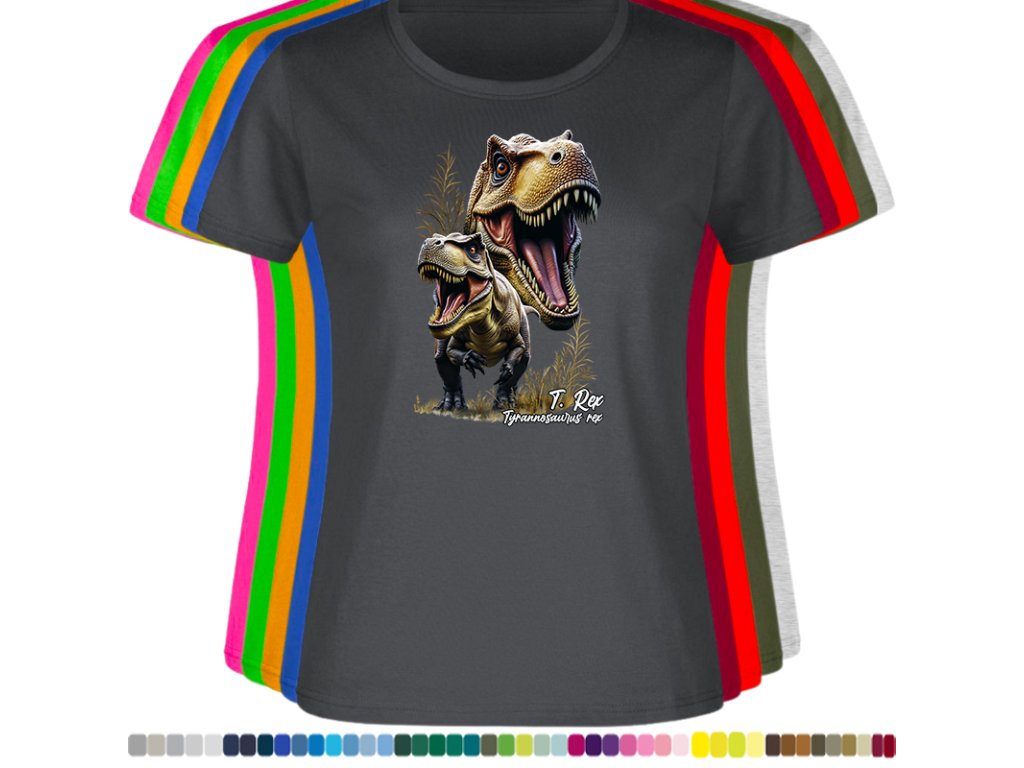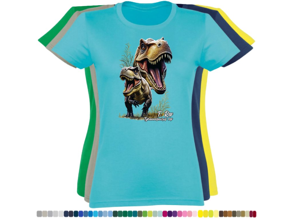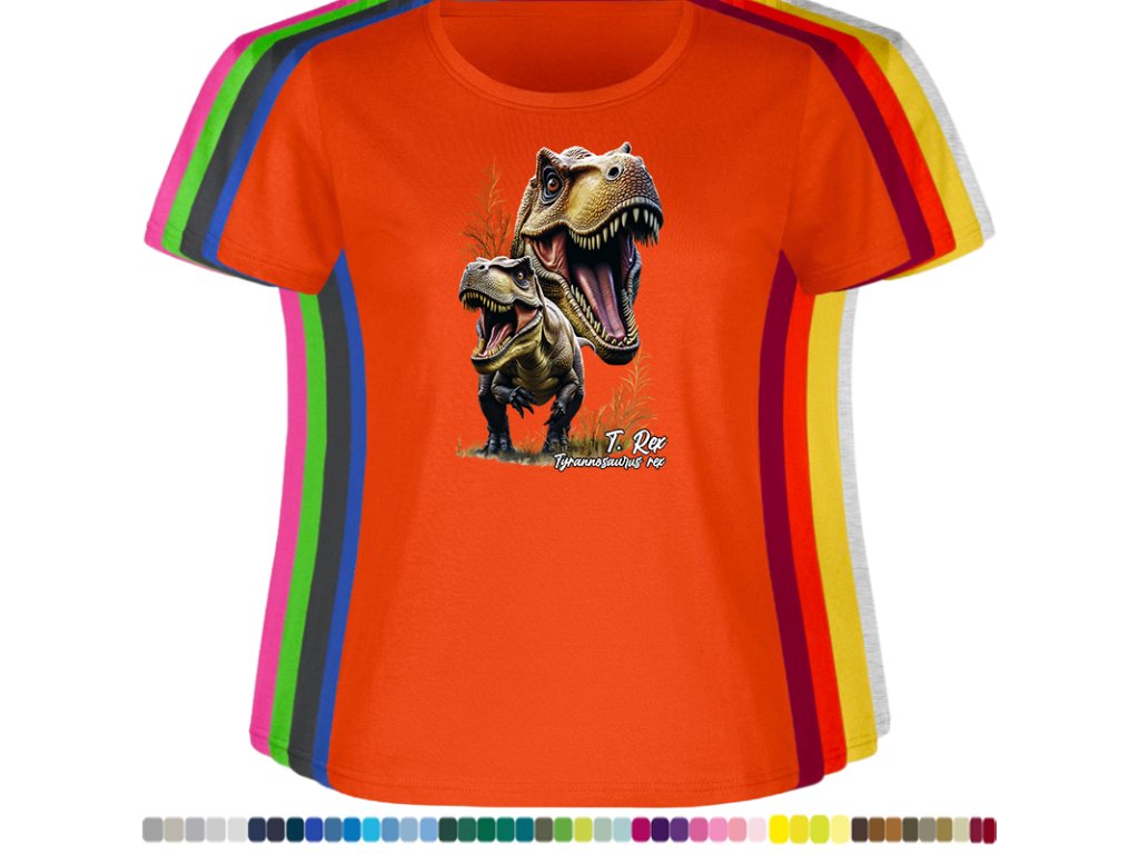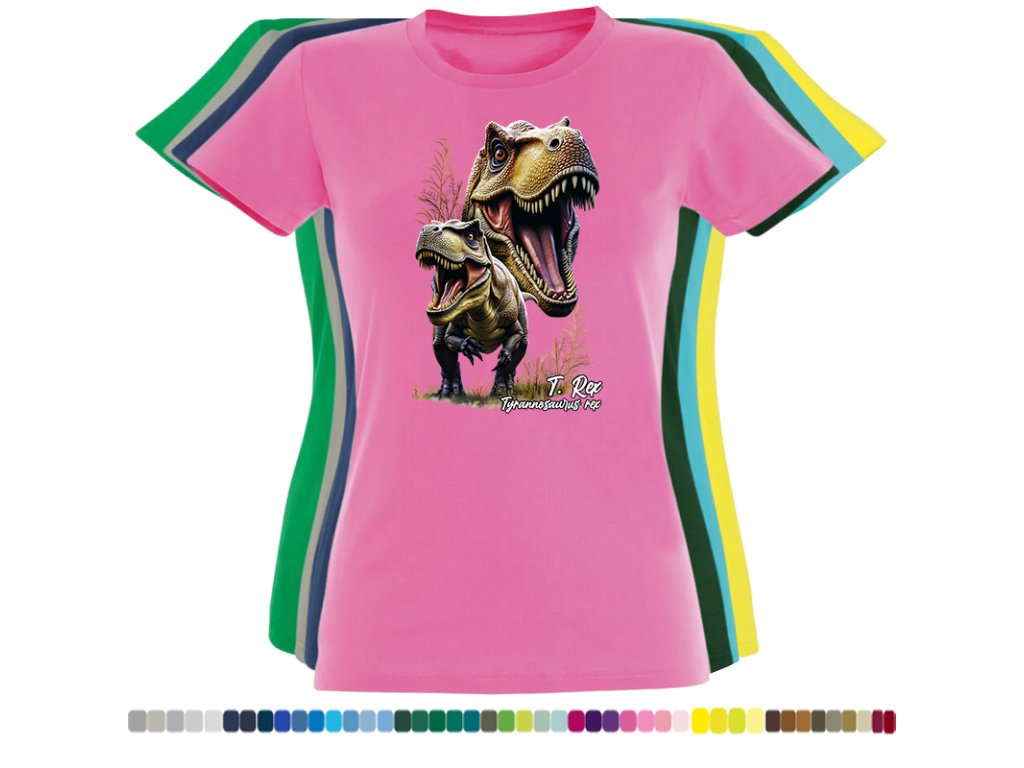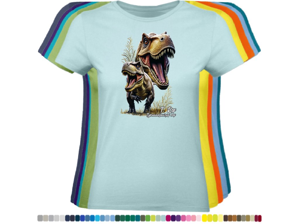 Dámské levné bavlněné tričko s digitálním potiskem T-rex - dino atlas