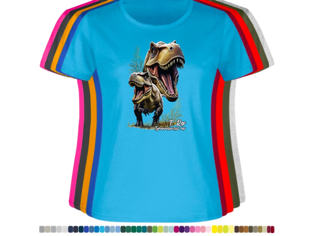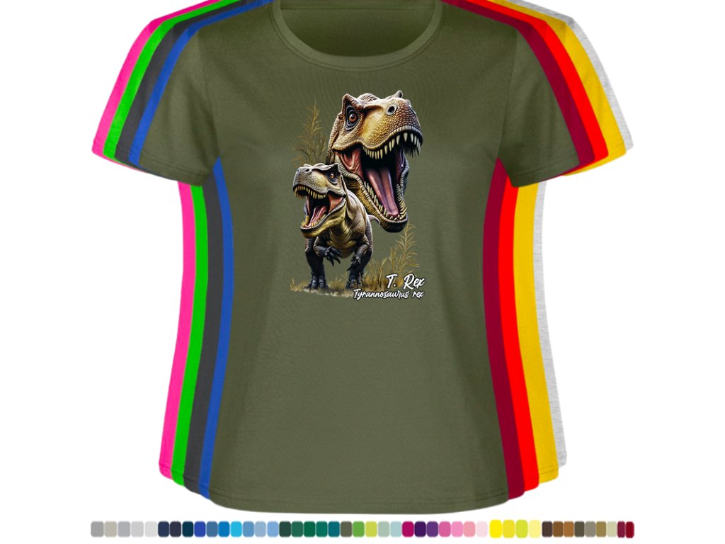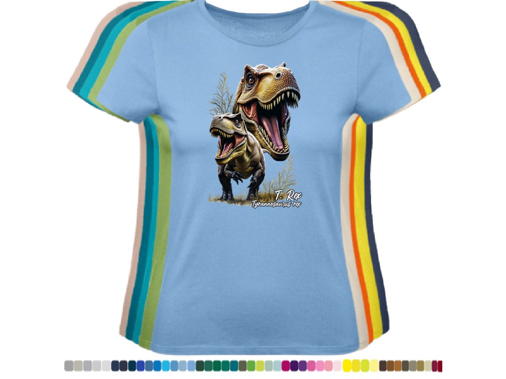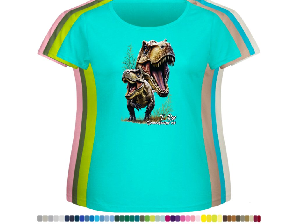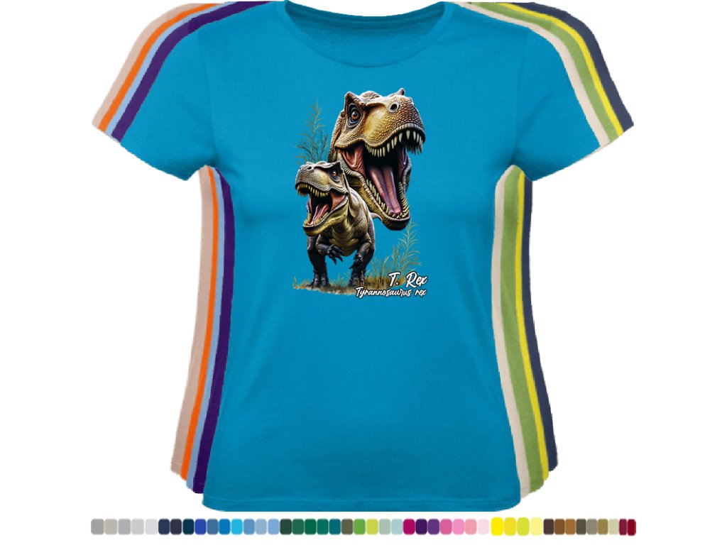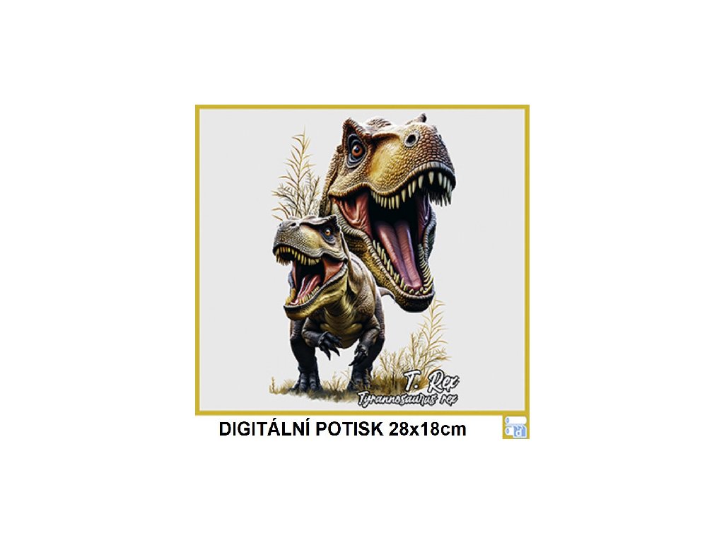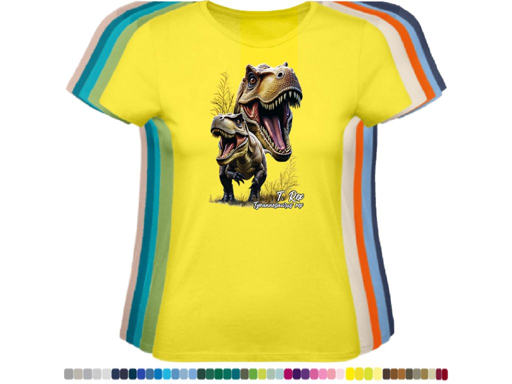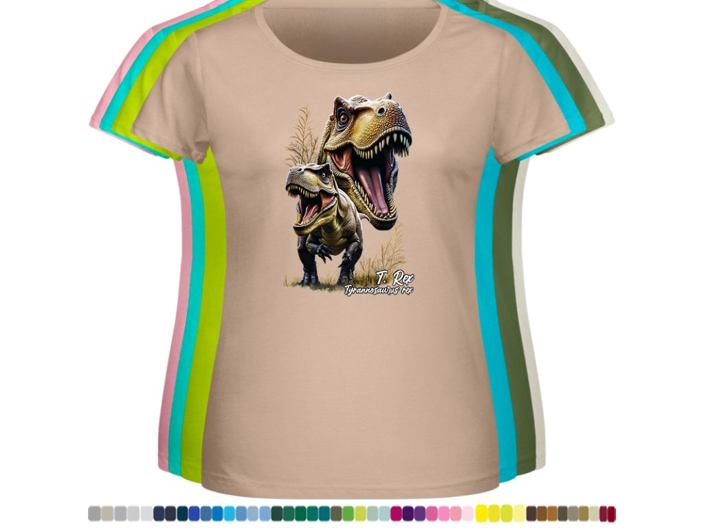 Dámské levné bavlněné tričko s digitálním potiskem T-rex - dino atlas