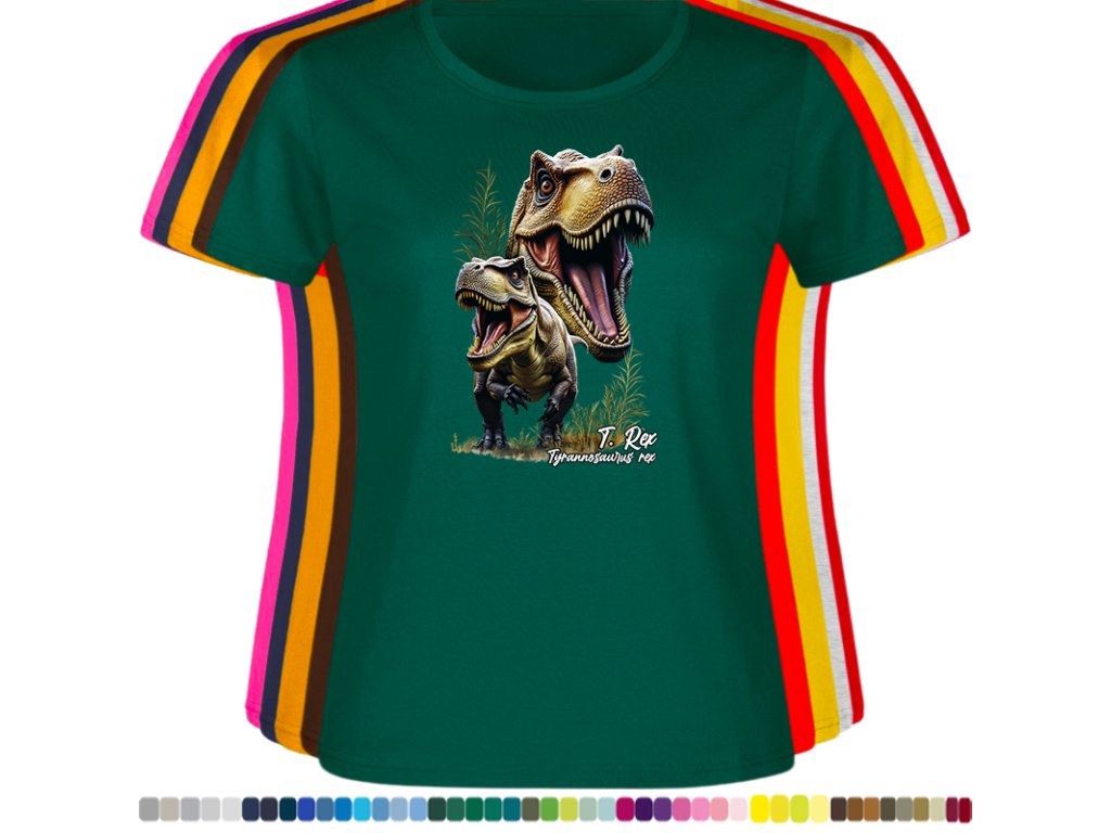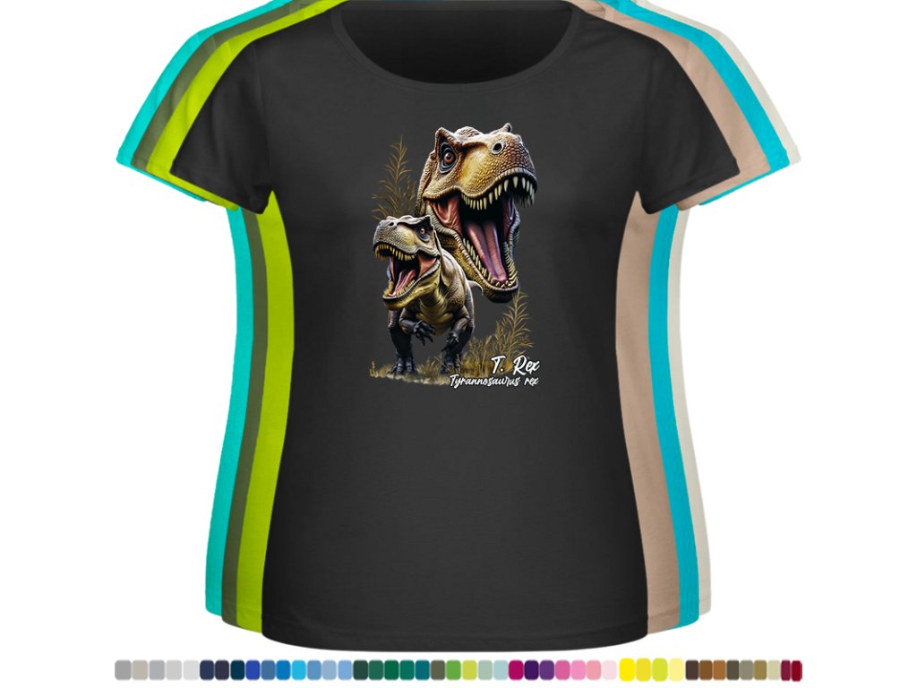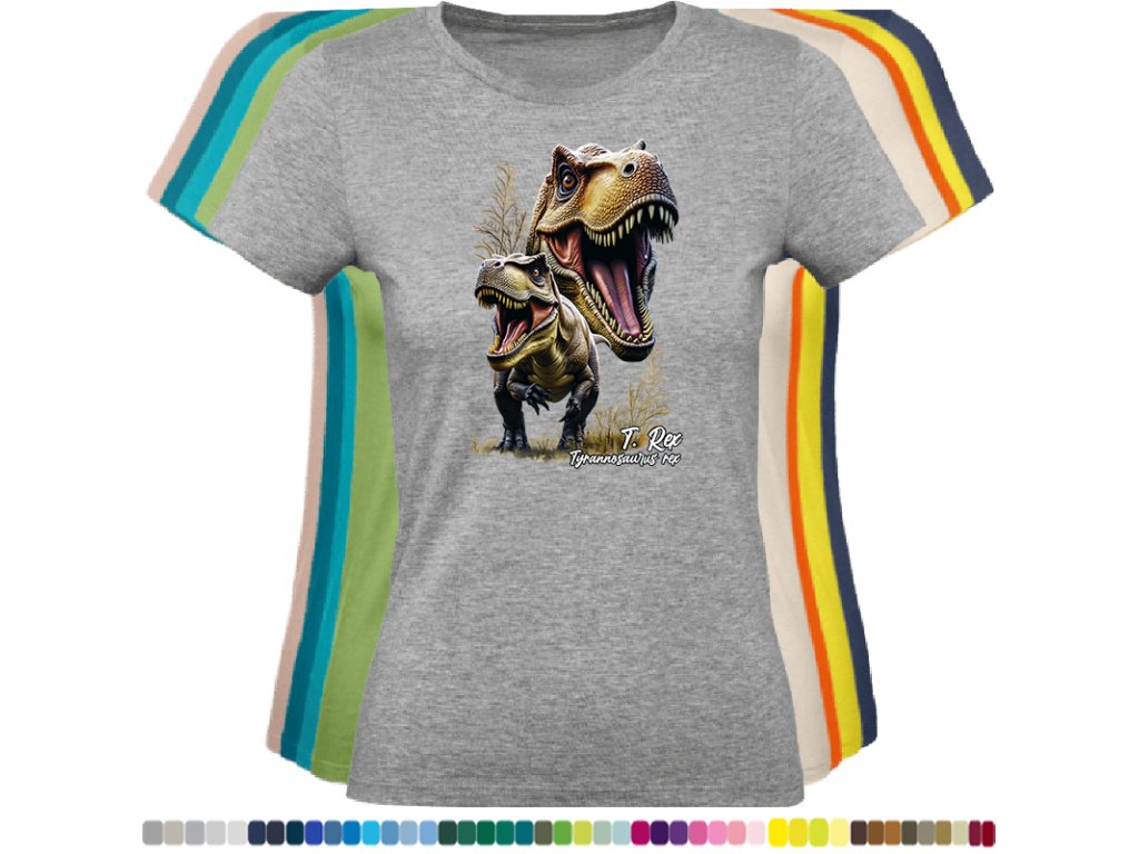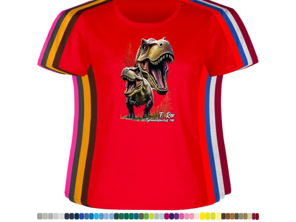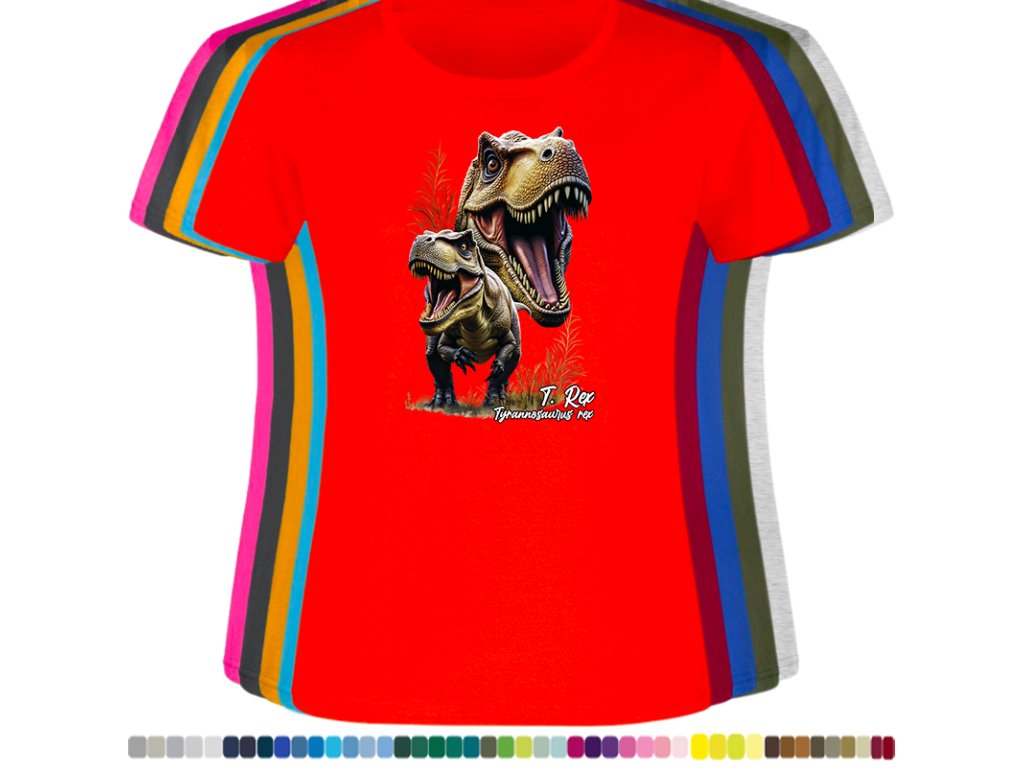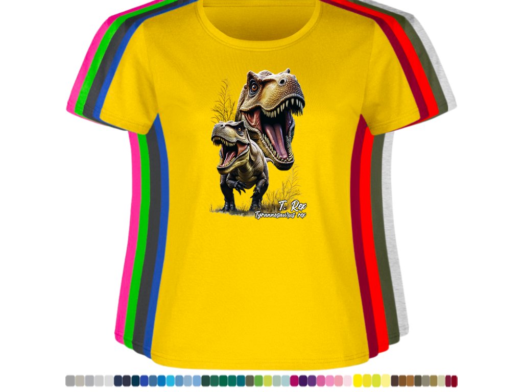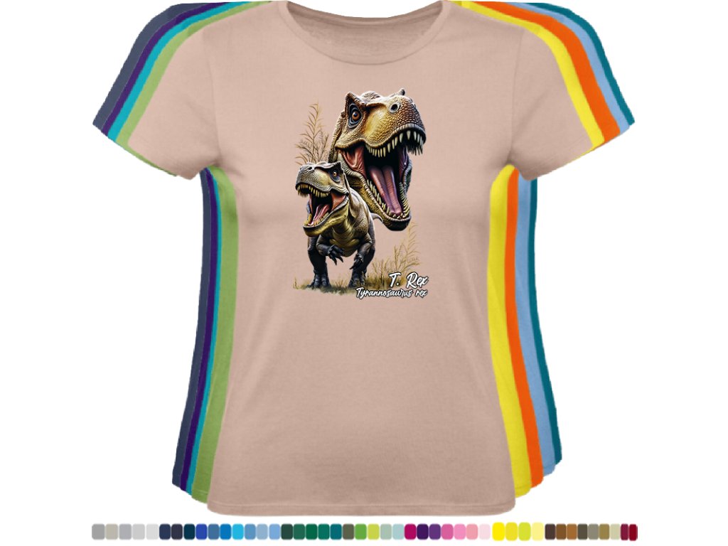 Dámské levné bavlněné tričko s digitálním potiskem T-rex - dino atlas