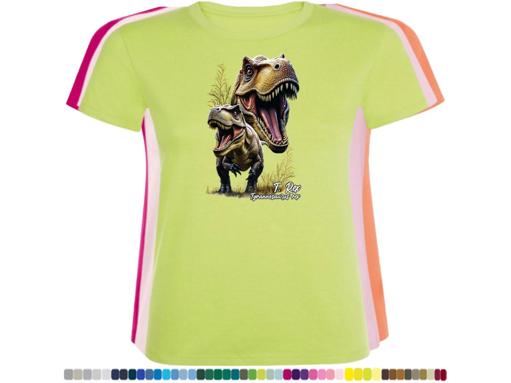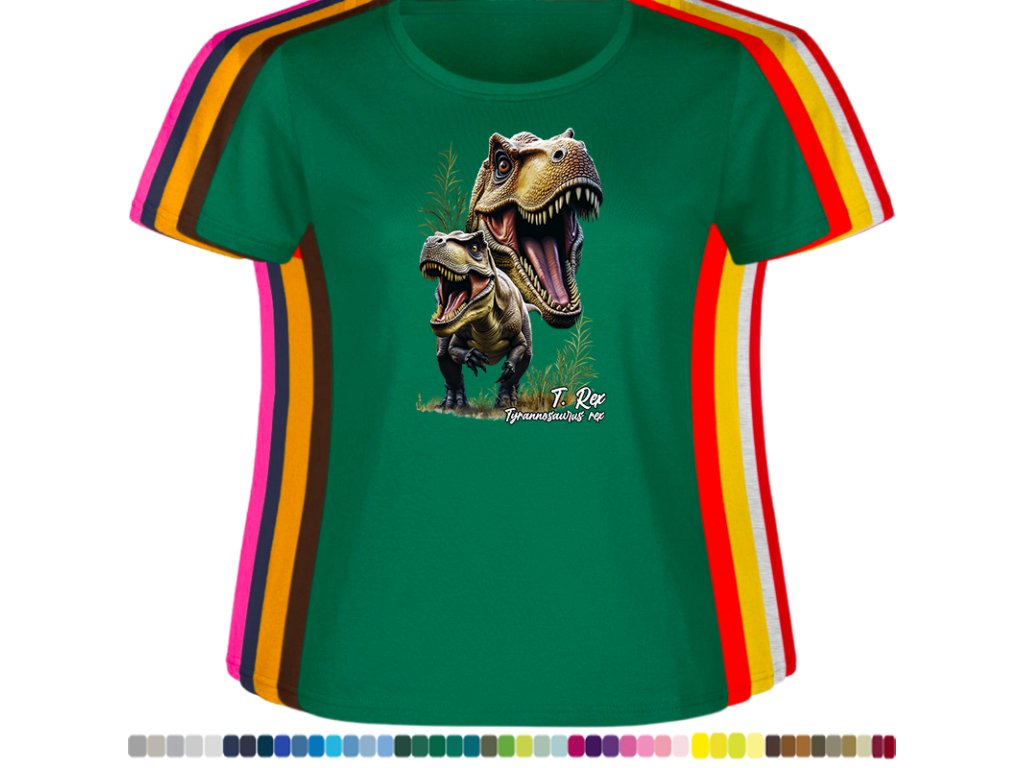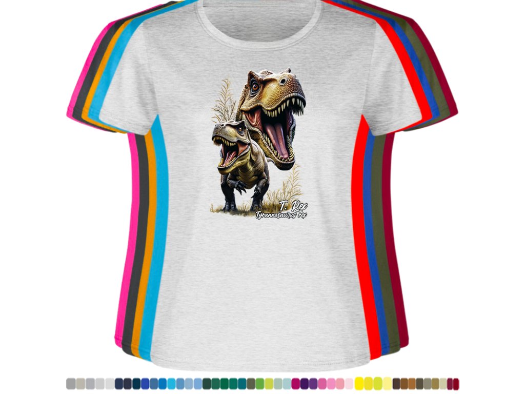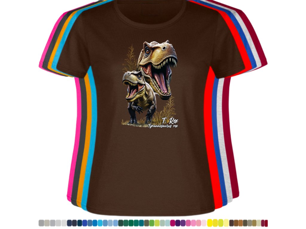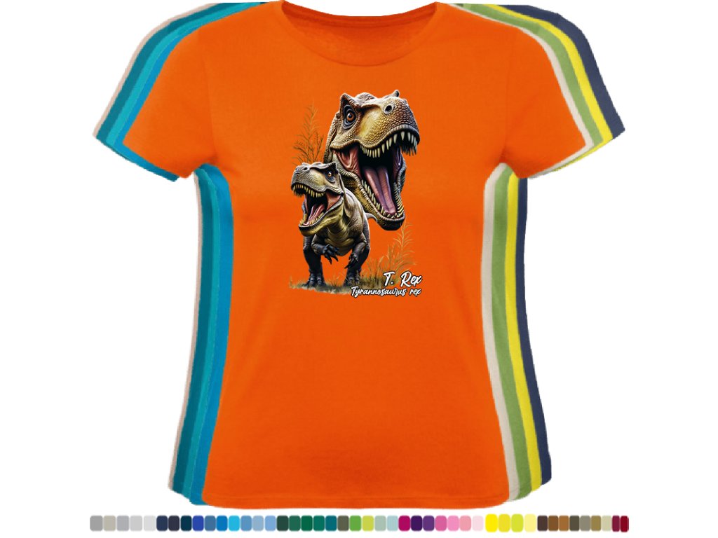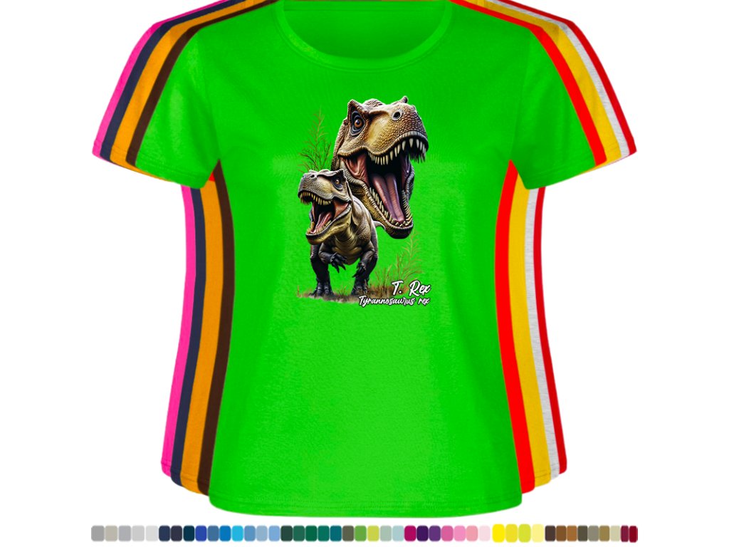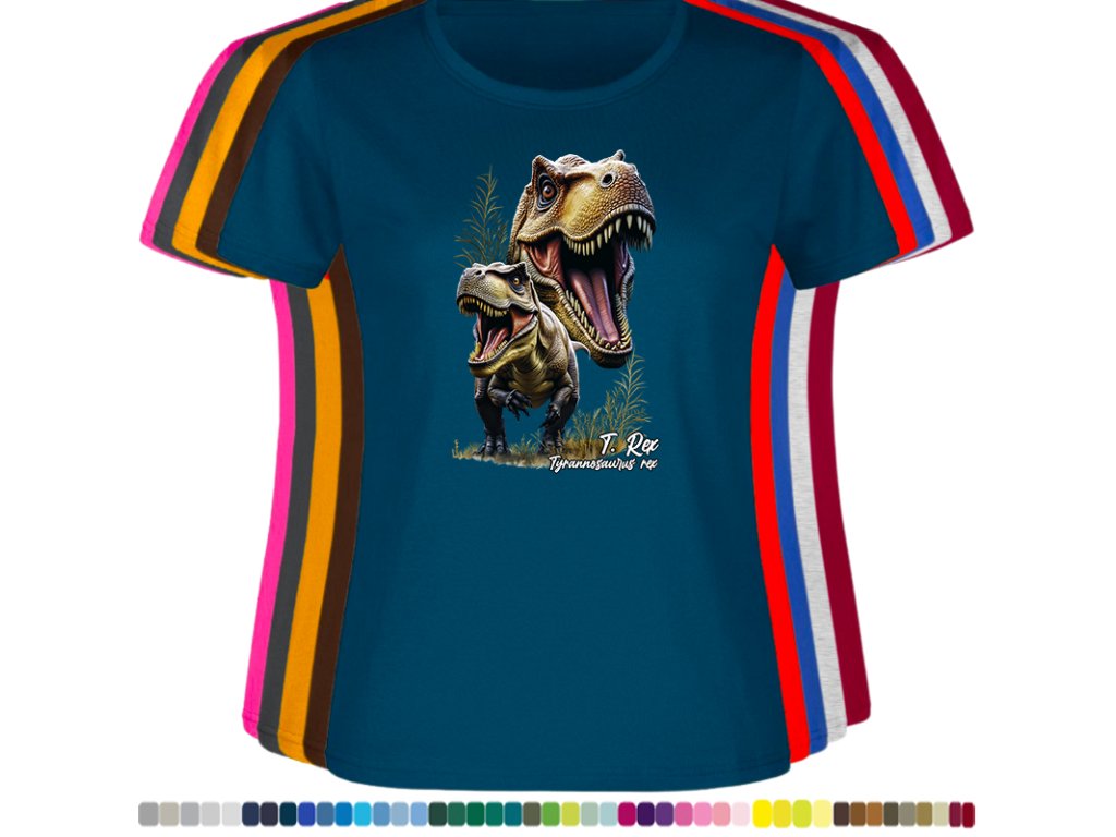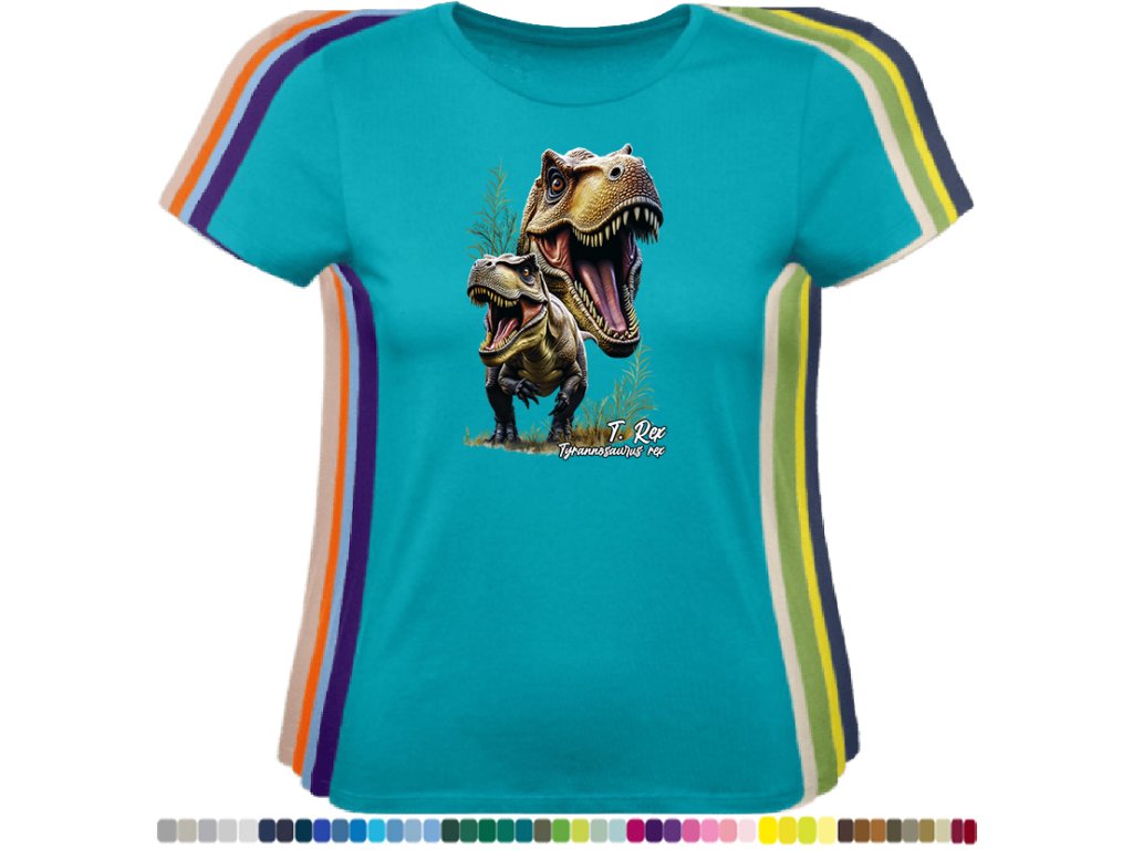 Dámské levné bavlněné tričko s digitálním potiskem T-rex - dino atlas