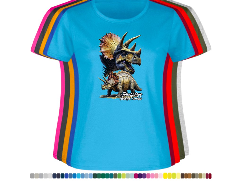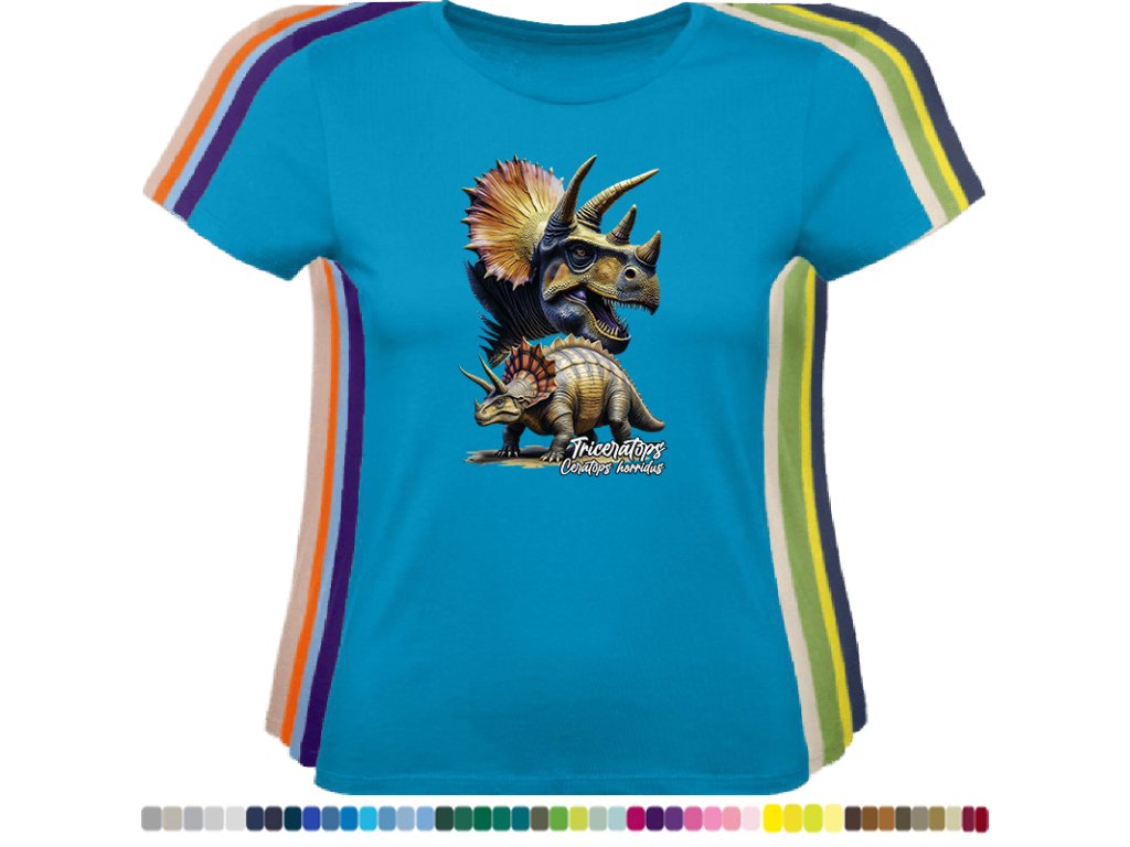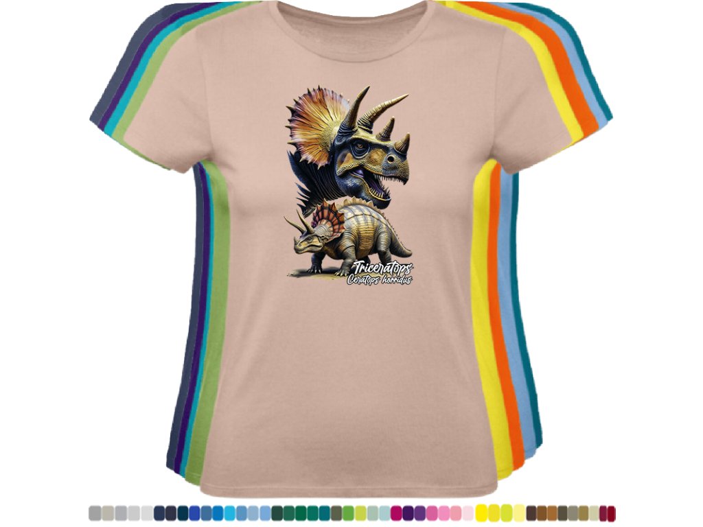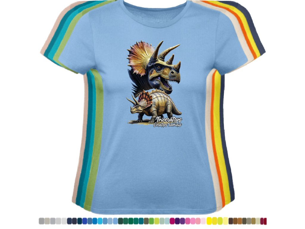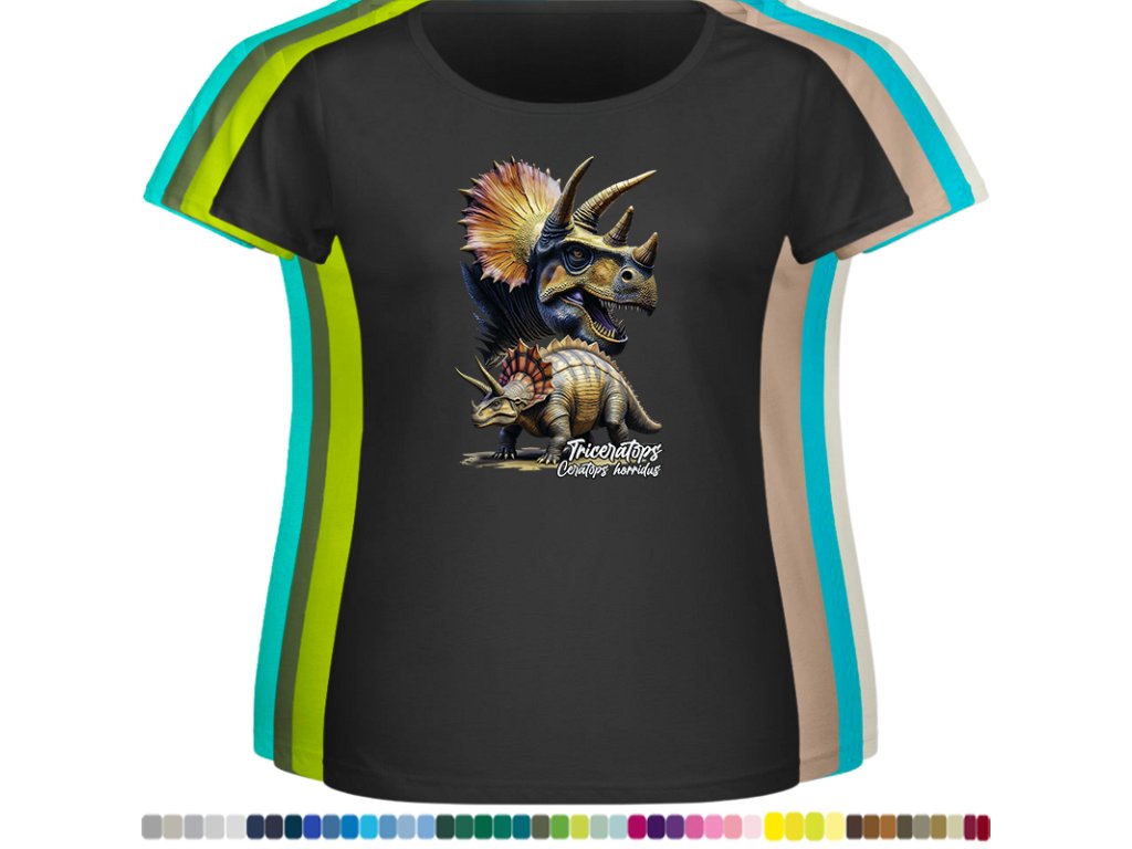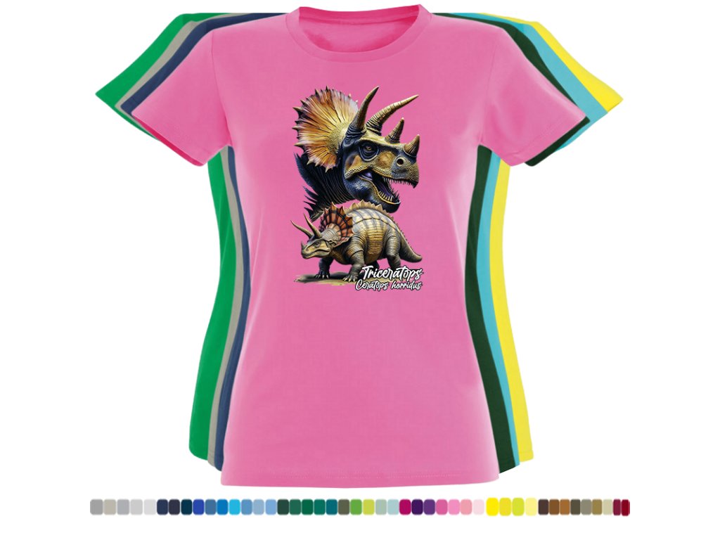 Dámské levné bavlněné tričko s digitálním potiskem Triceratops - dino atlas
