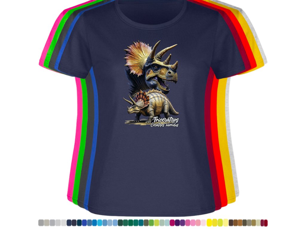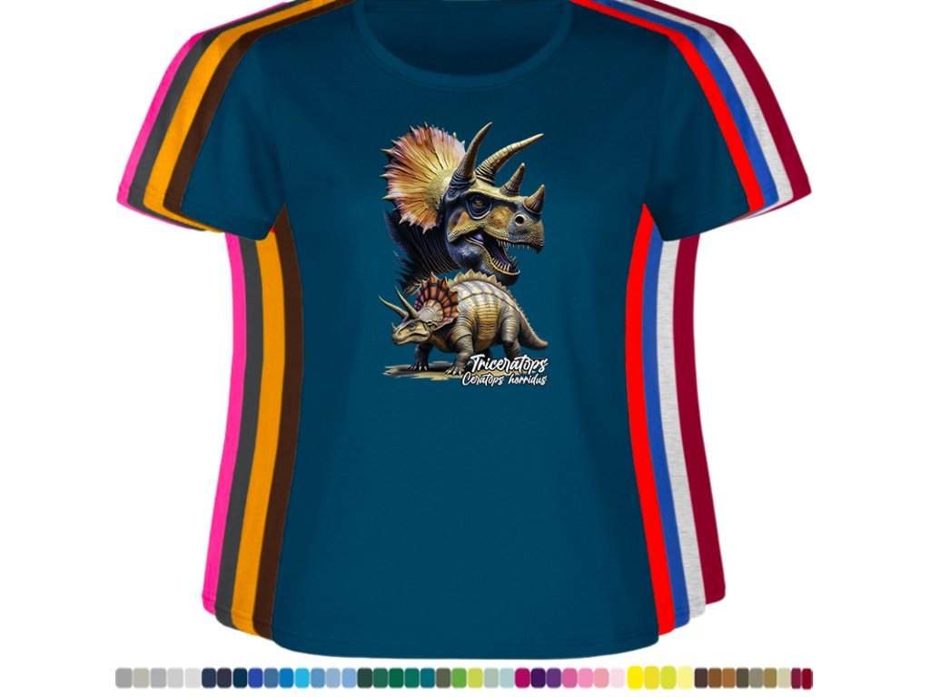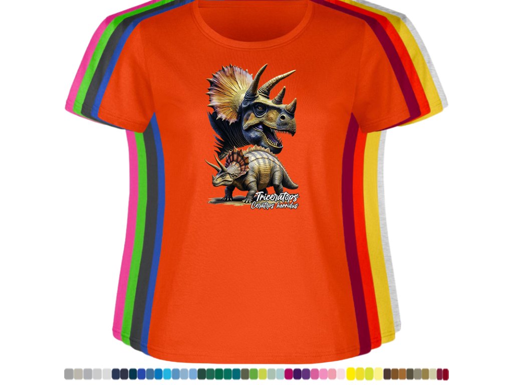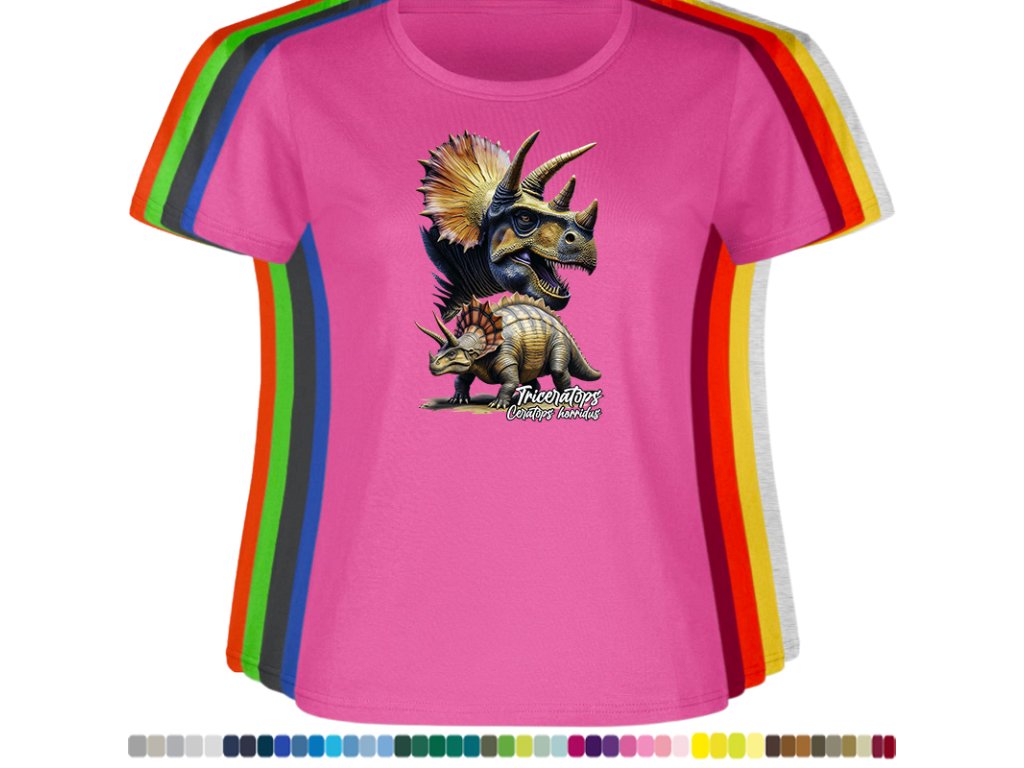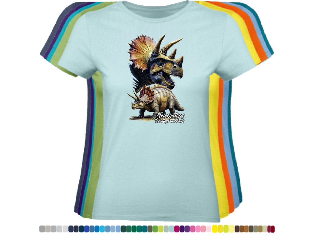 Dámské levné bavlněné tričko s digitálním potiskem Triceratops - dino atlas