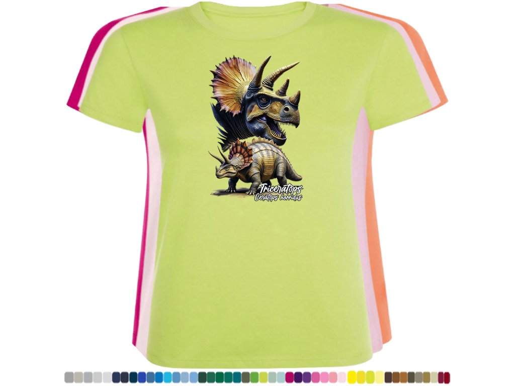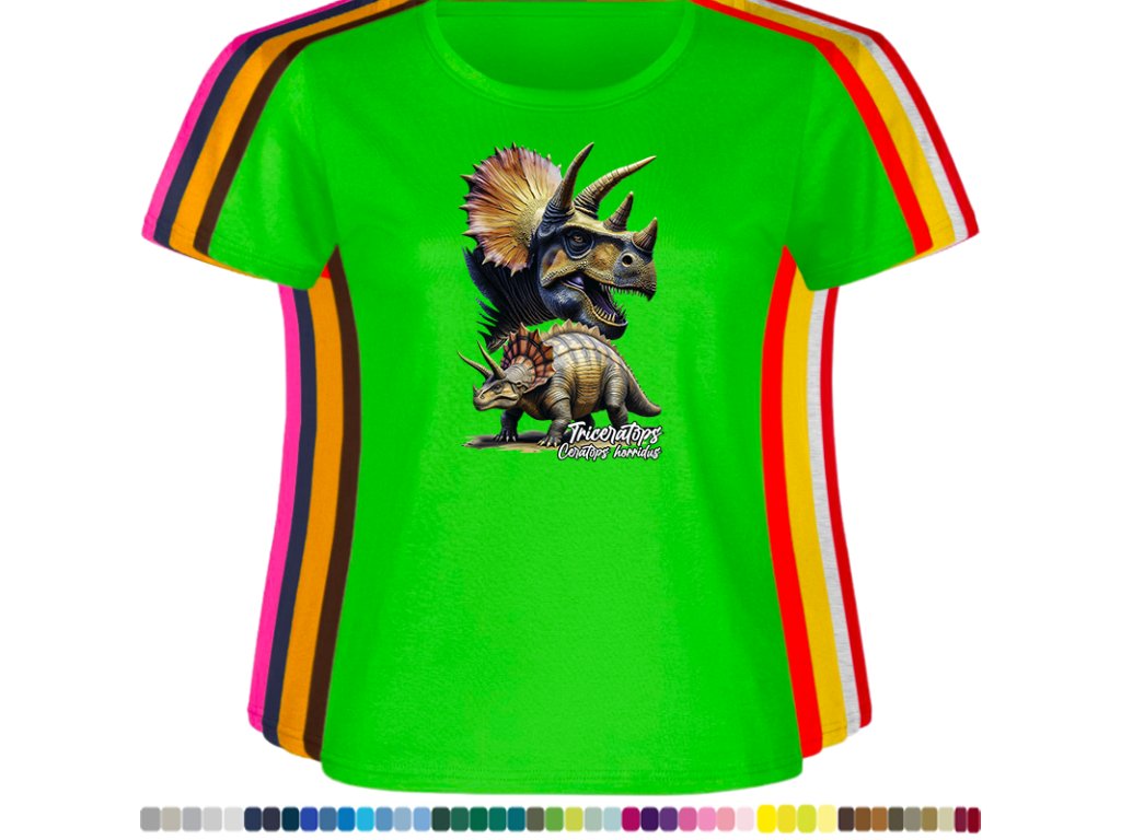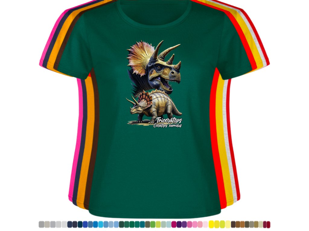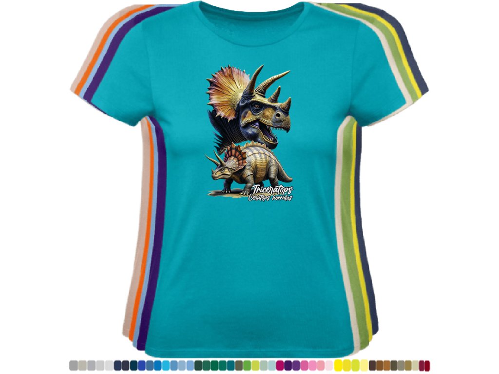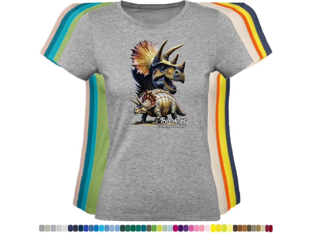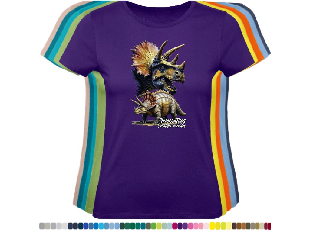 Dámské levné bavlněné tričko s digitálním potiskem Triceratops - dino atlas