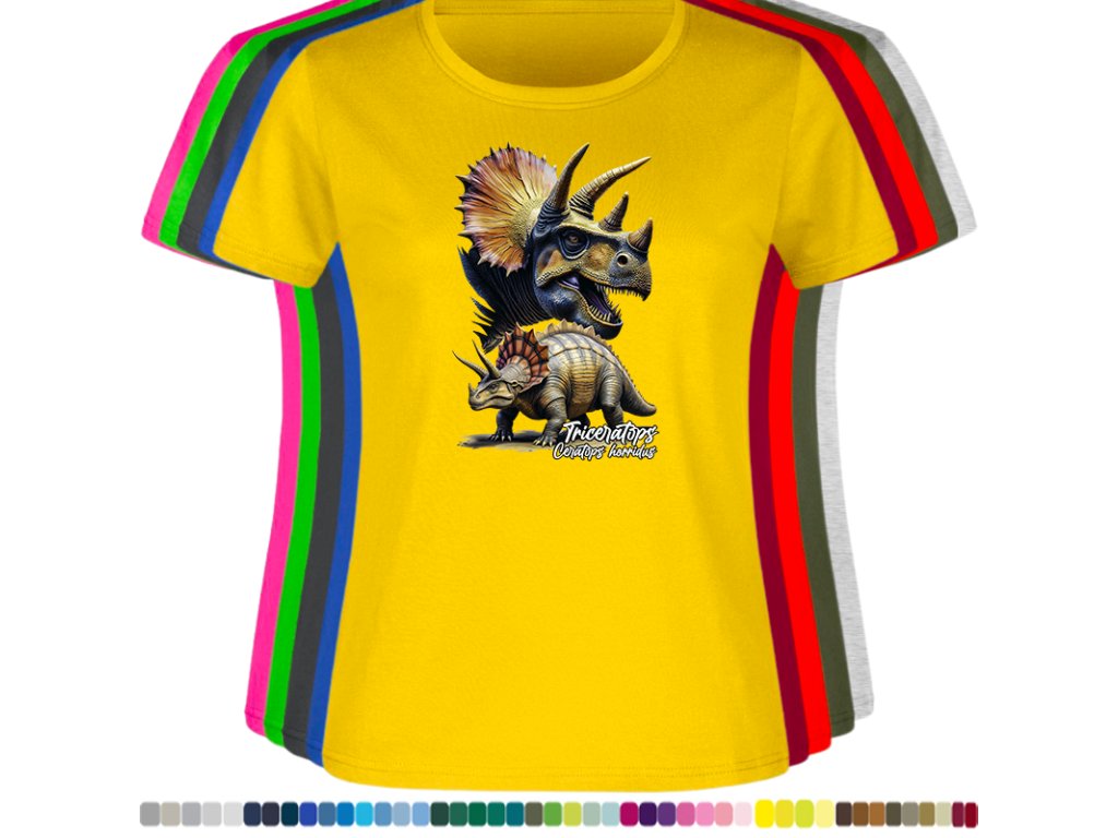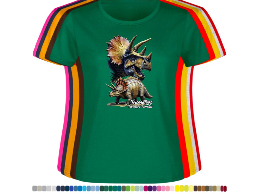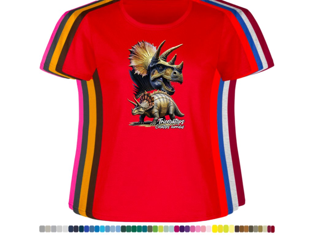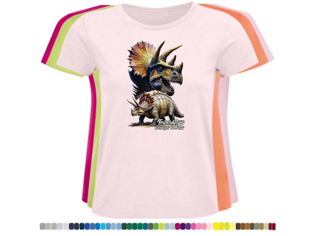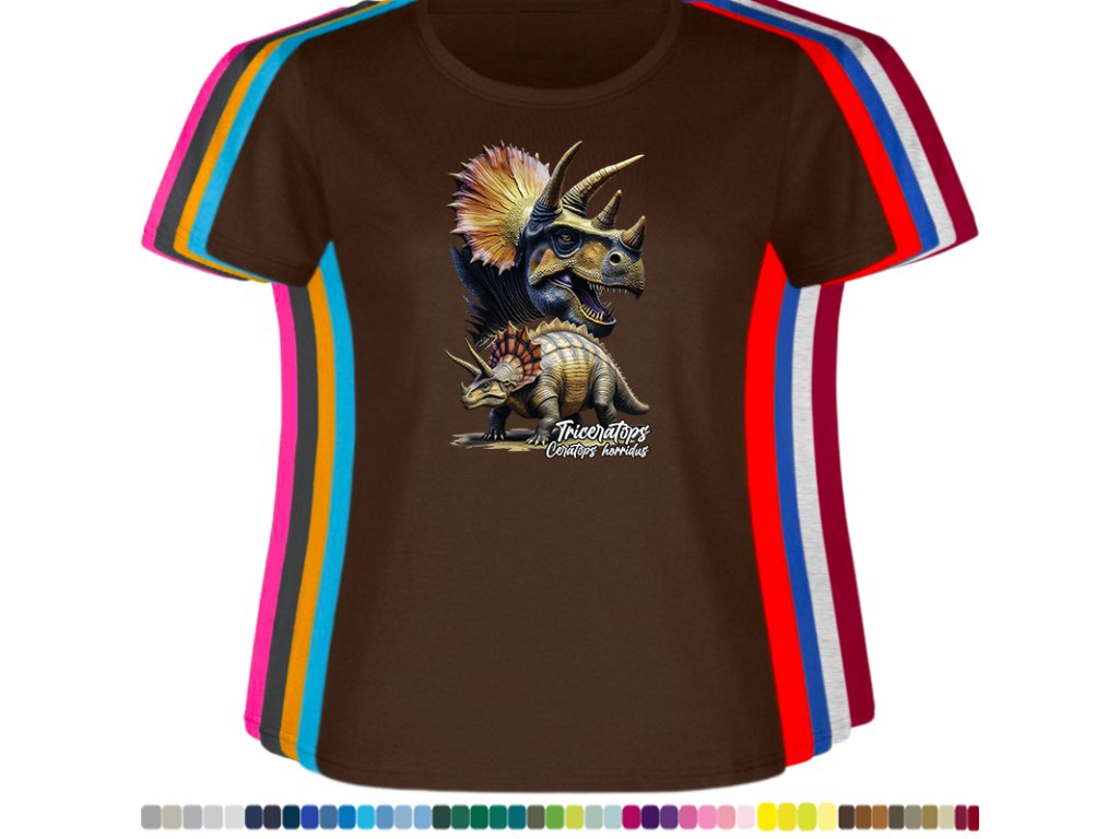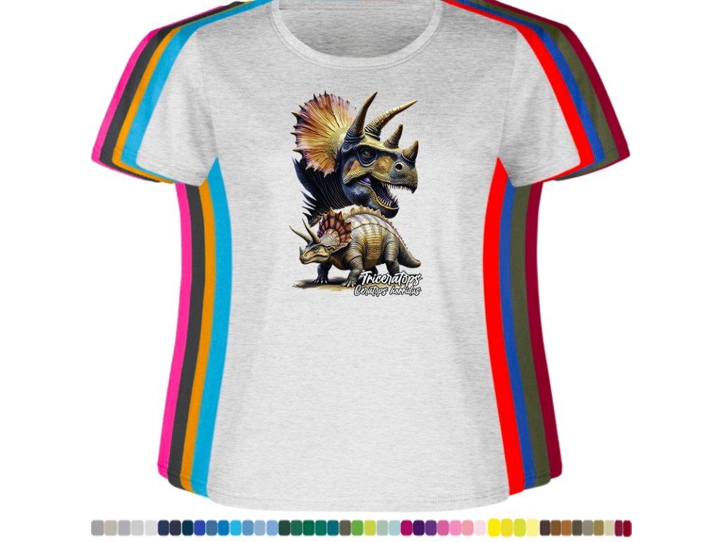 DÁMSKÉ LEVNÉ BAVLNĚNÉ TRIČKO S DIGITÁLNÍM POTISKEM DINOSAURA TRICERATOPS