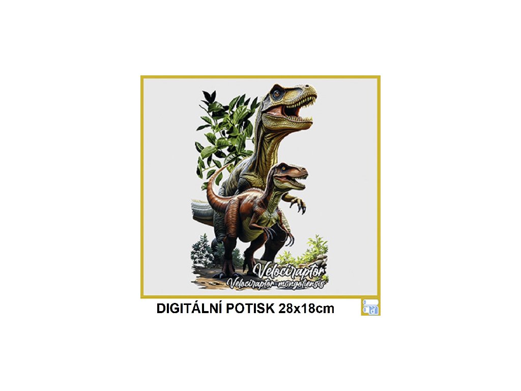 Dámské levné bavlněné tričko s digitálním potiskem Velociraptor - dino atlas