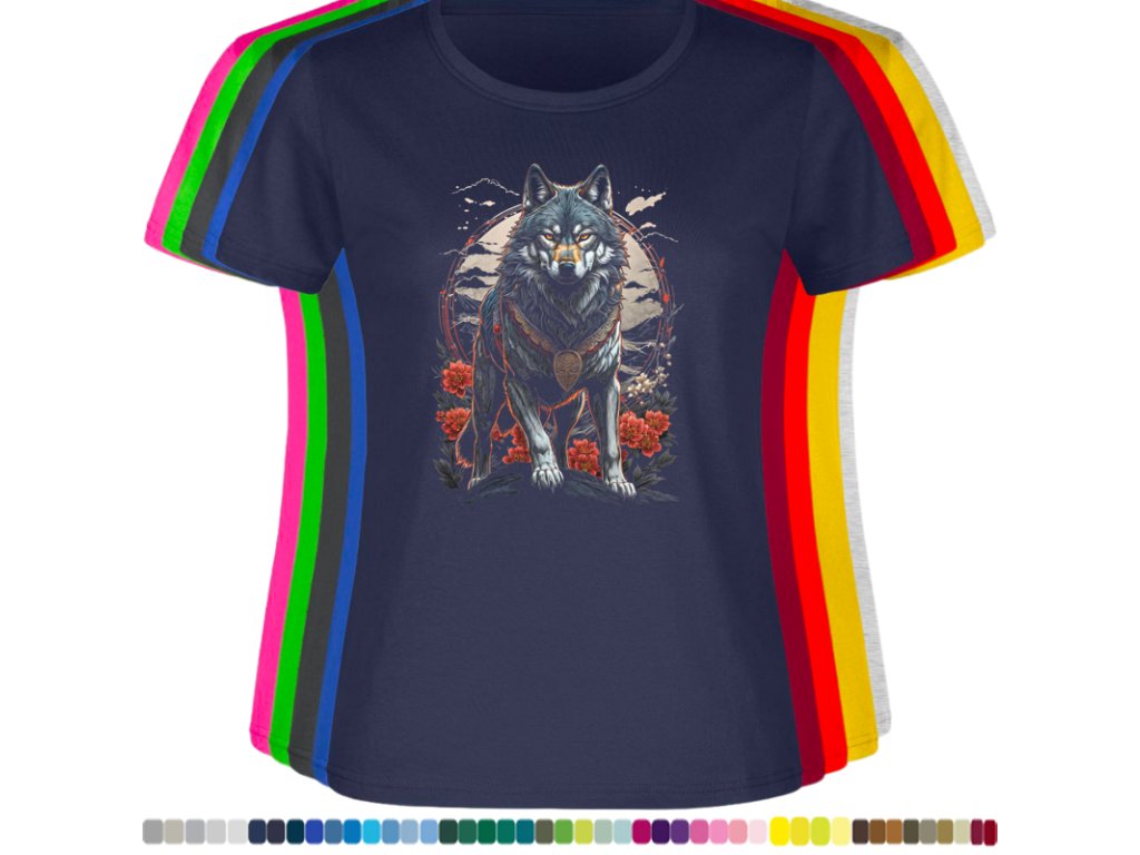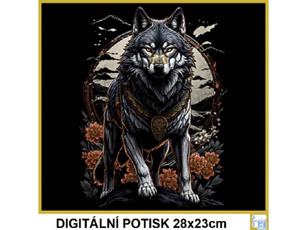 DÁMSKÉ LEVNÉ BAVLNĚNÉ TRIČKO S DIGITÁLNÍM POTISKEM VLK A KVĚTINY