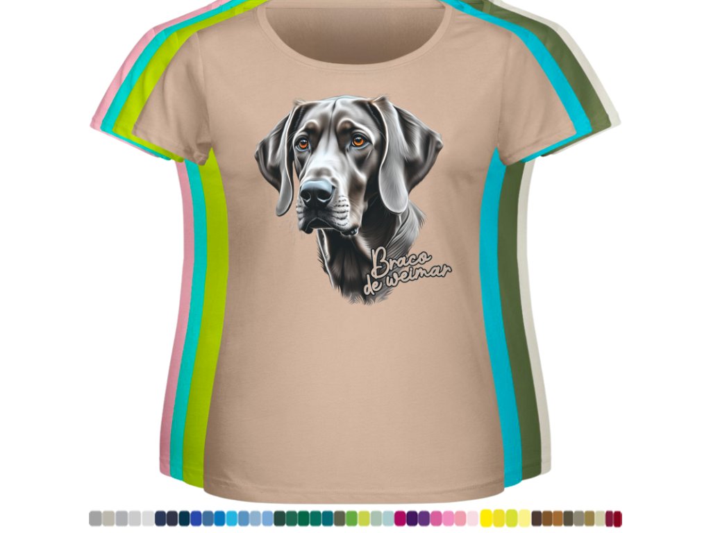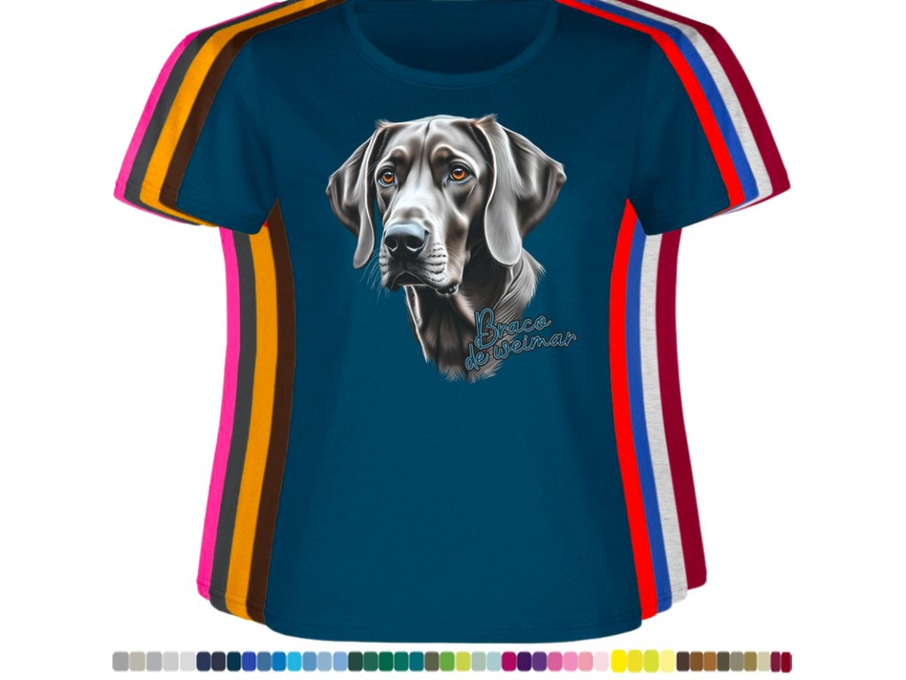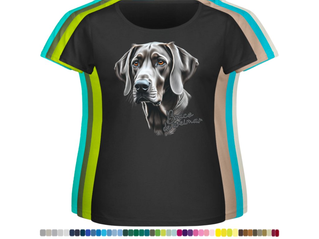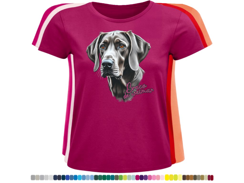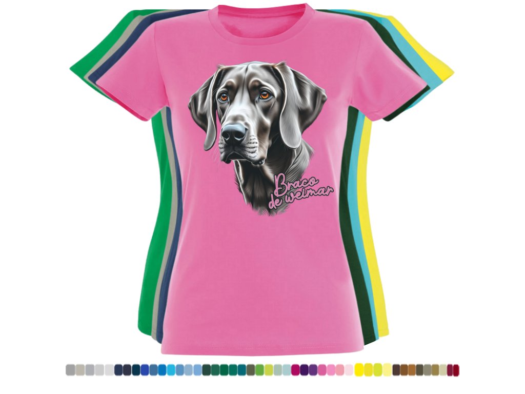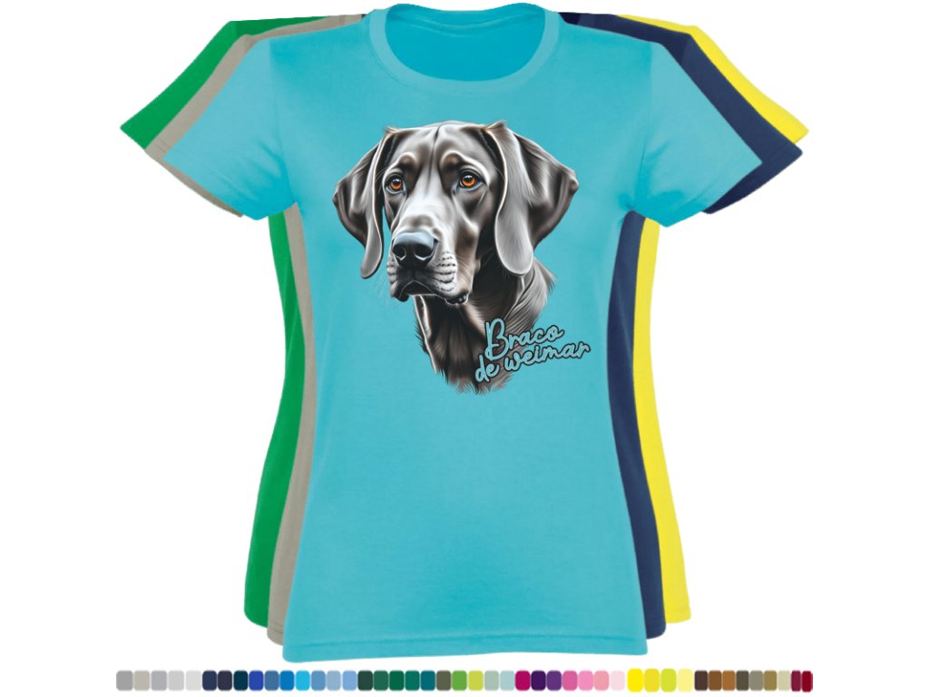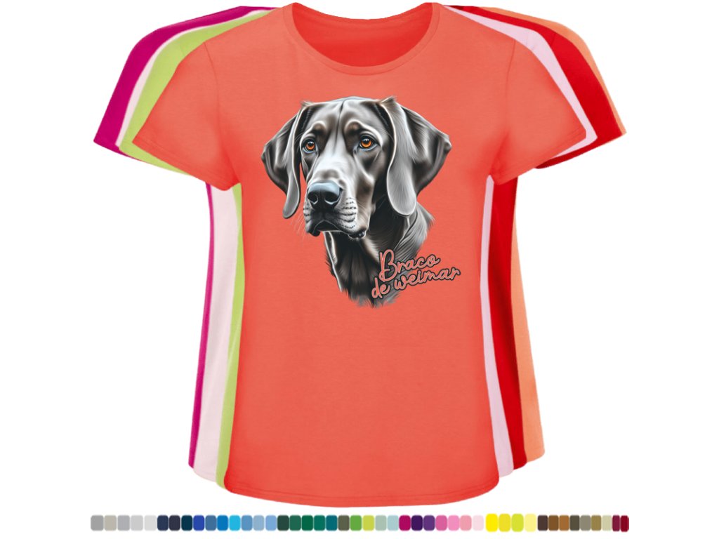 DÁMSKÉ LEVNÉ BAVLNĚNÉ TRIČKO S DIGITÁLNÍM POTISKEM PSA VÝMARSKÉHO OHAŘE