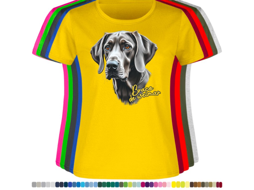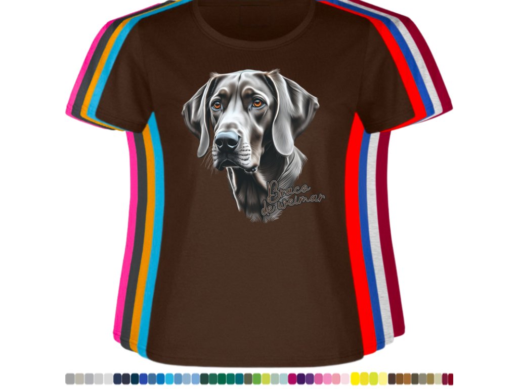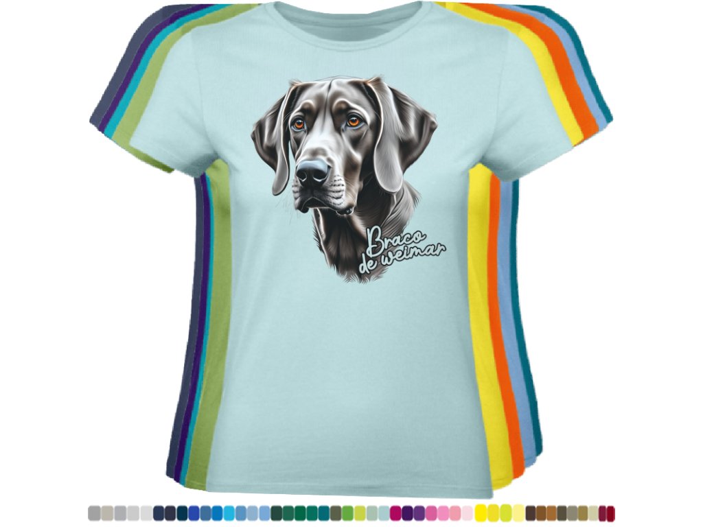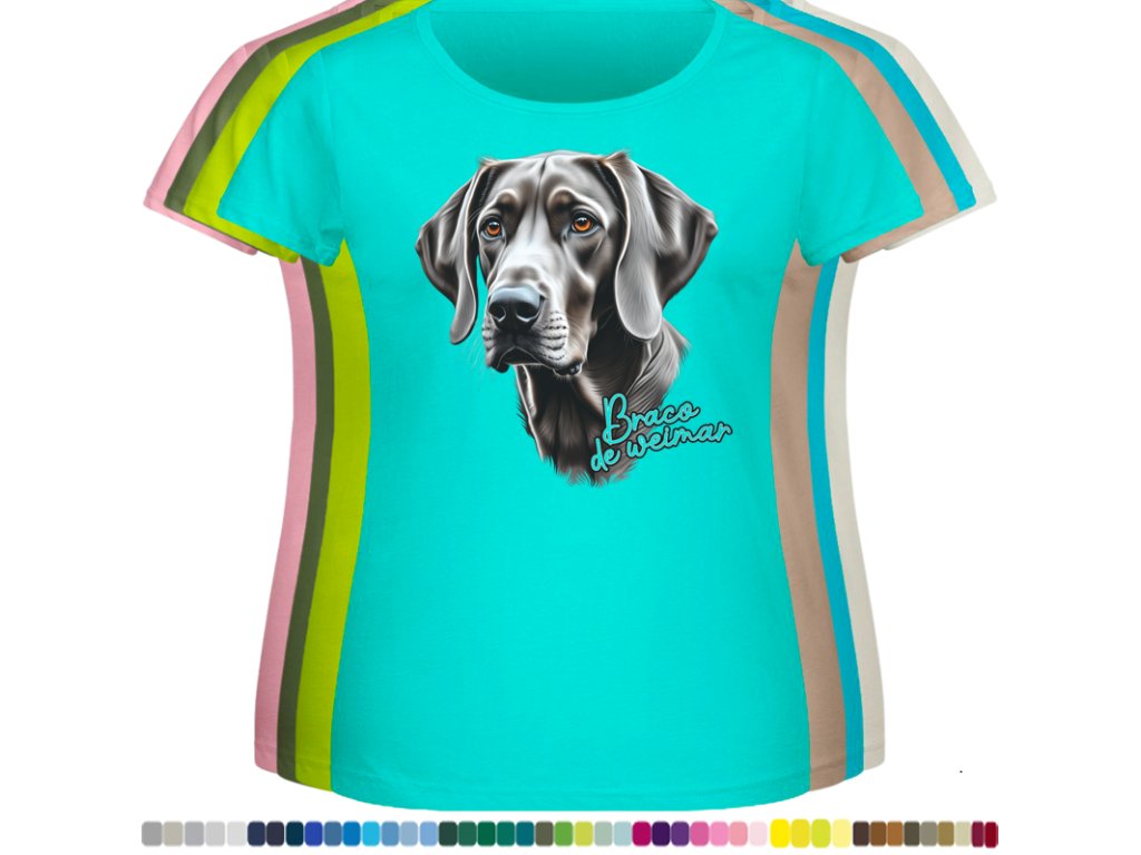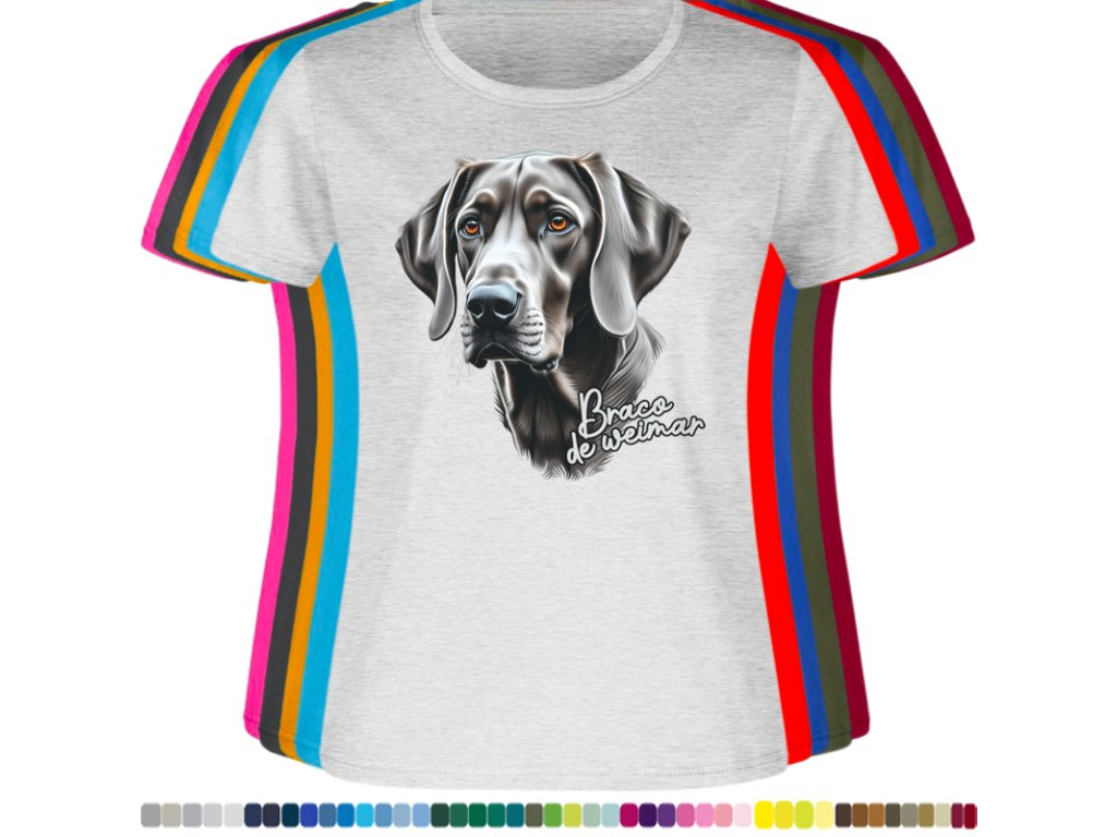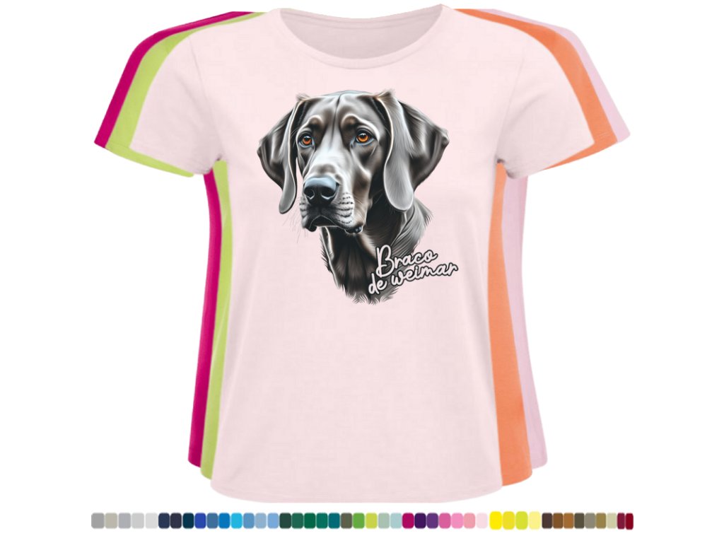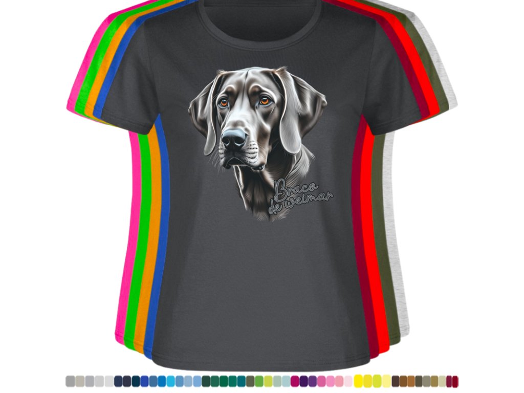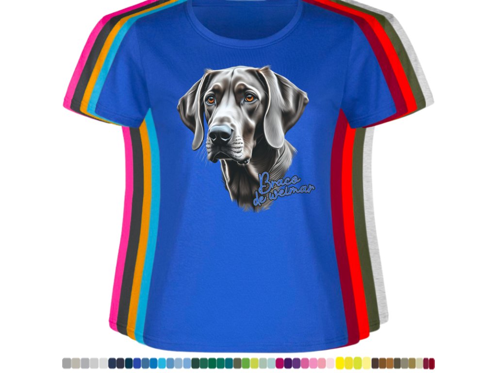 DÁMSKÉ LEVNÉ BAVLNĚNÉ TRIČKO S DIGITÁLNÍM POTISKEM PSA VÝMARSKÉHO OHAŘE