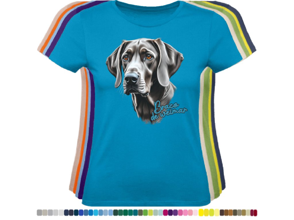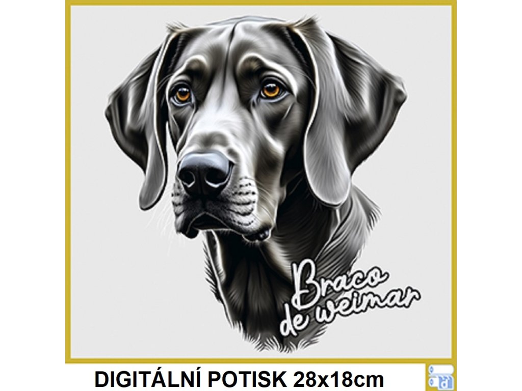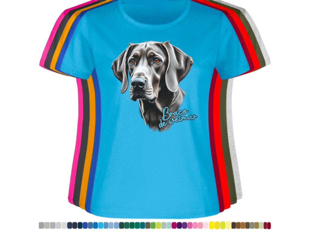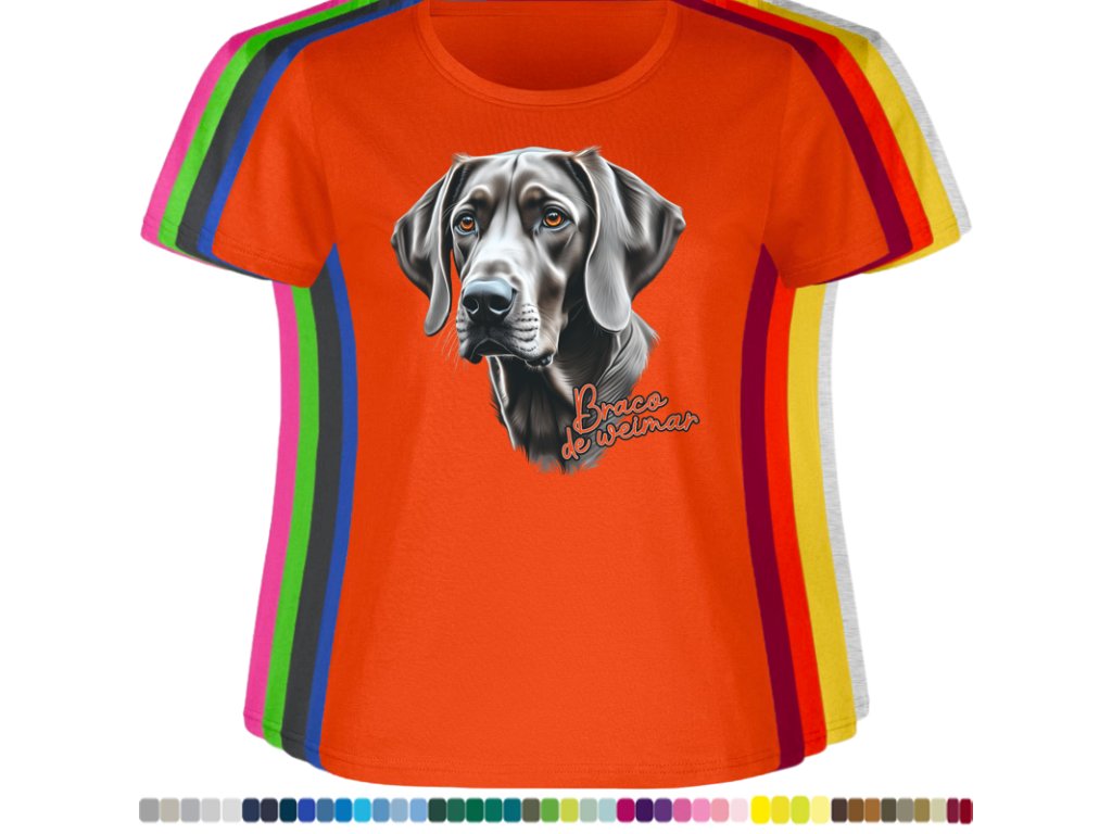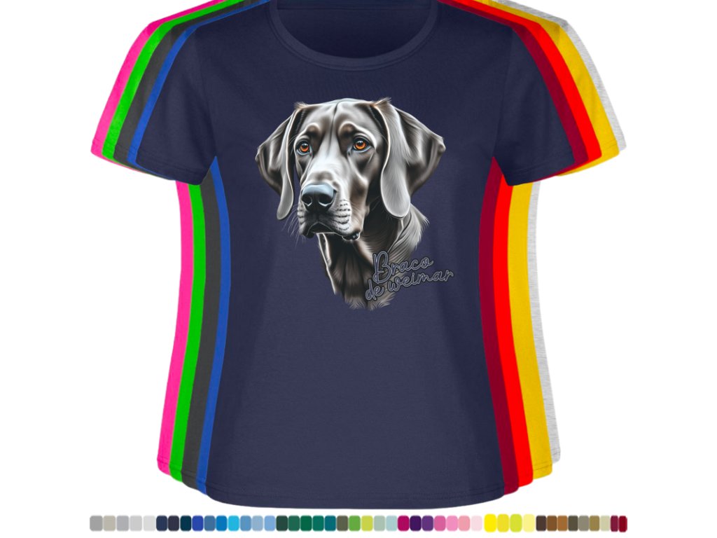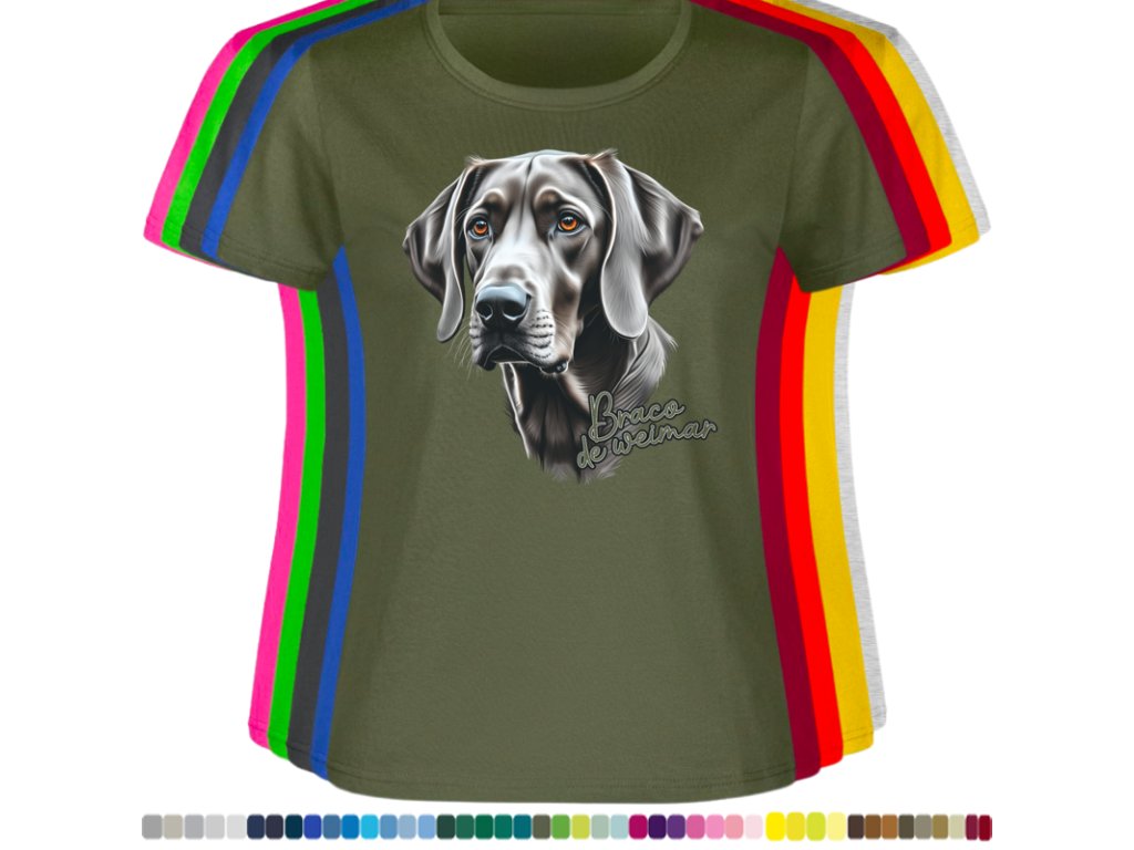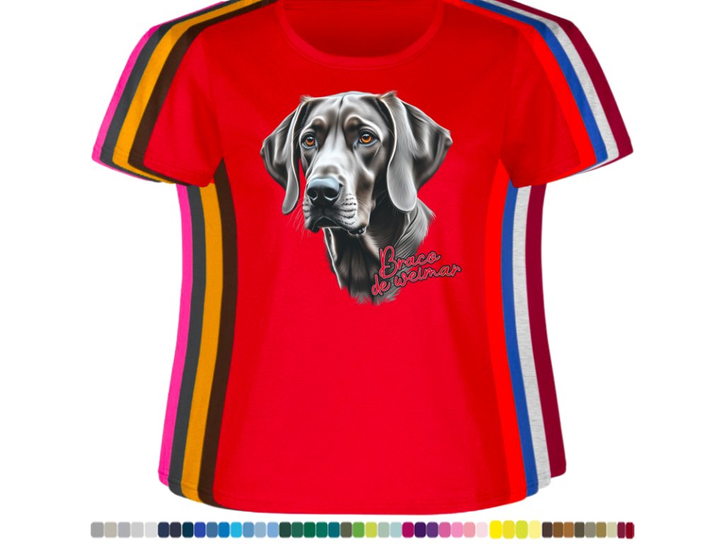 DÁMSKÉ LEVNÉ BAVLNĚNÉ TRIČKO S DIGITÁLNÍM POTISKEM PSA VÝMARSKÉHO OHAŘE
