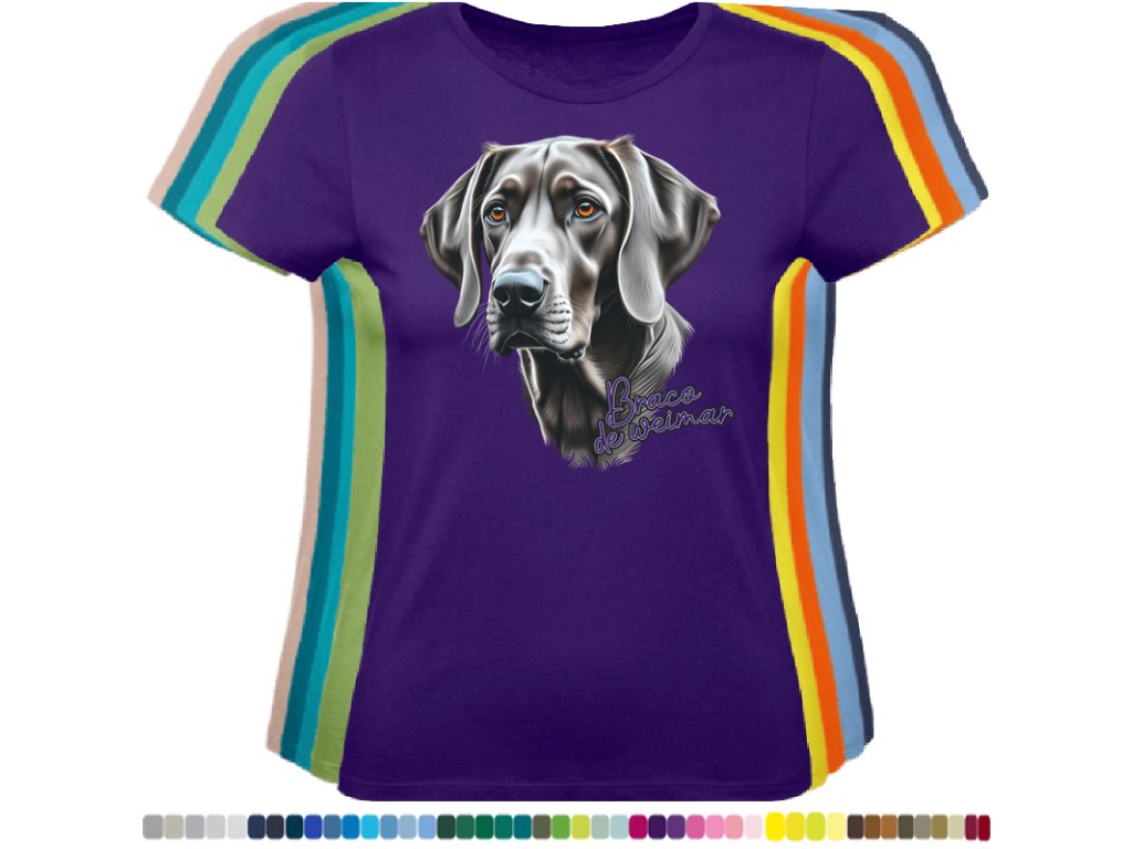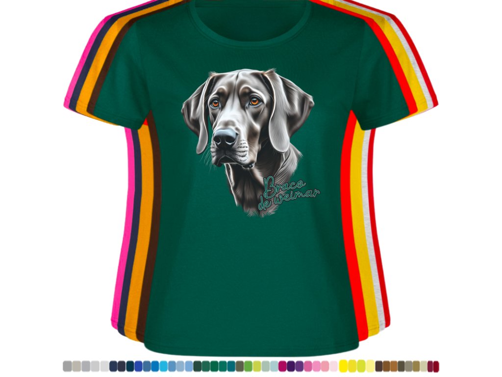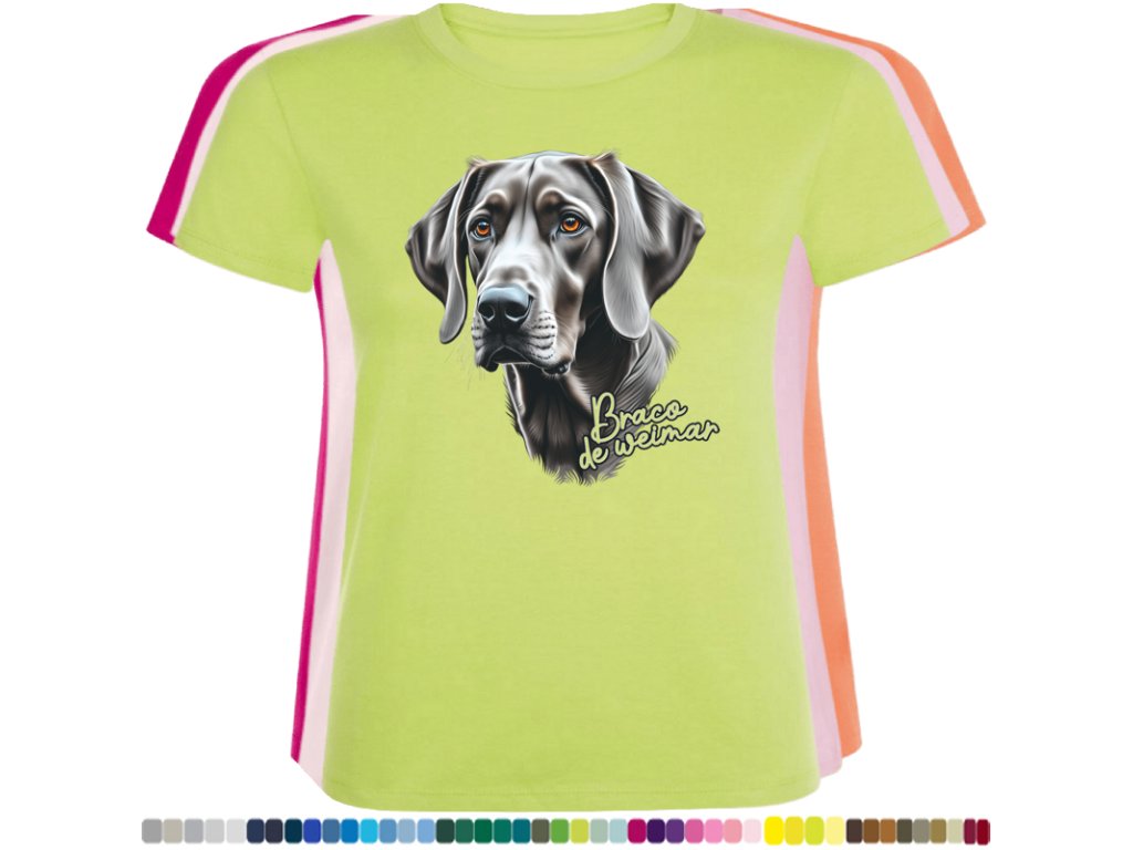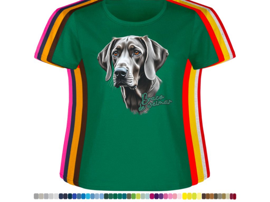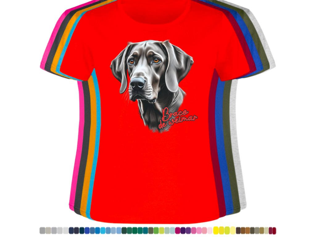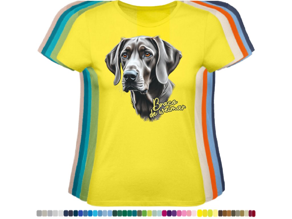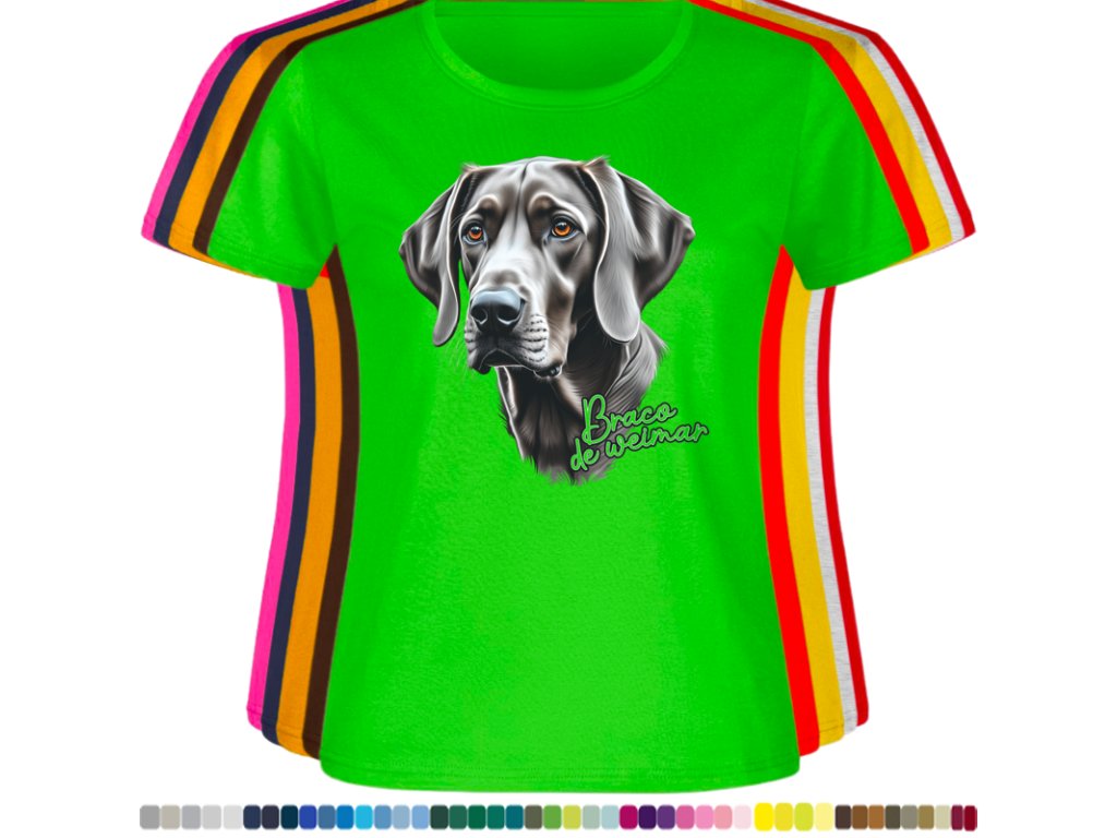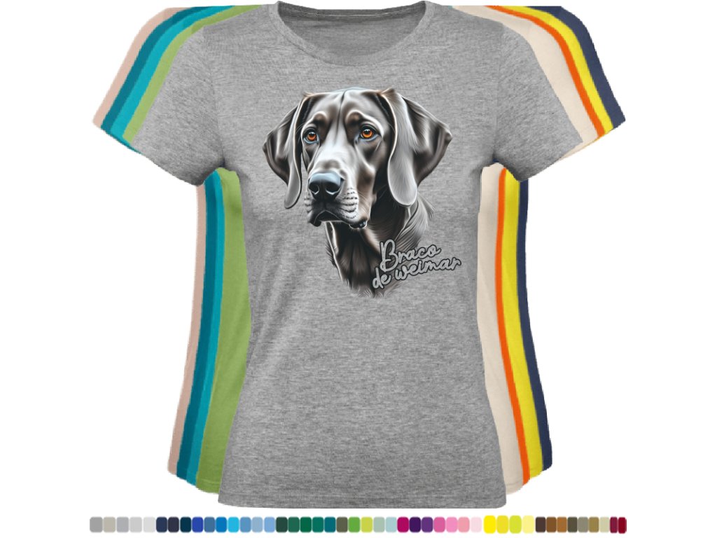 DÁMSKÉ LEVNÉ BAVLNĚNÉ TRIČKO S DIGITÁLNÍM POTISKEM PSA VÝMARSKÉHO OHAŘE