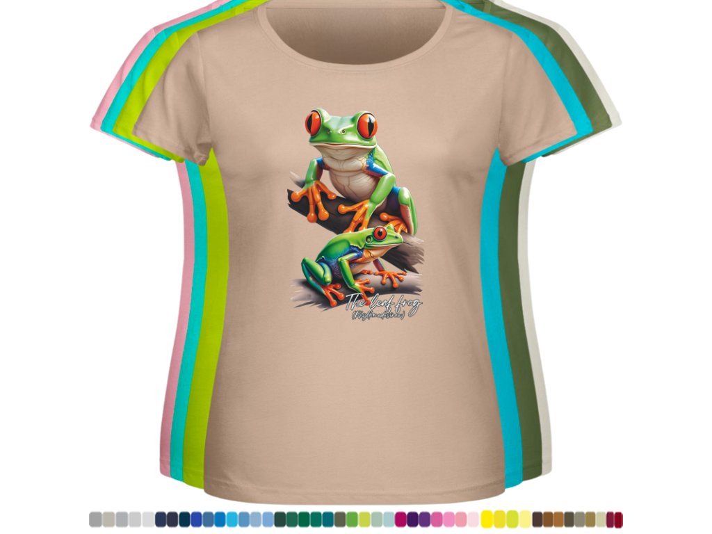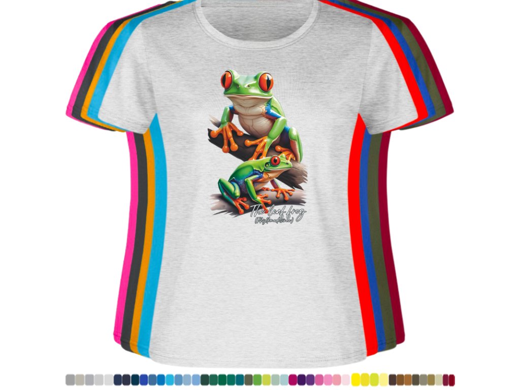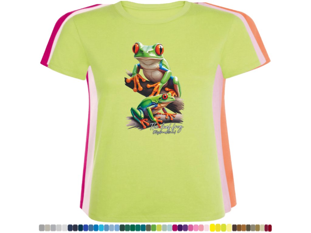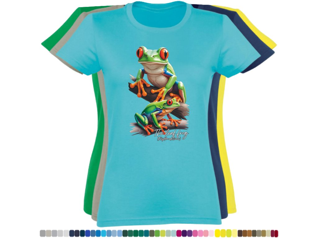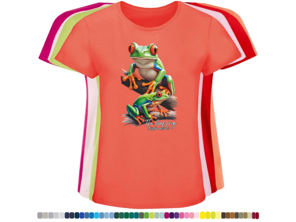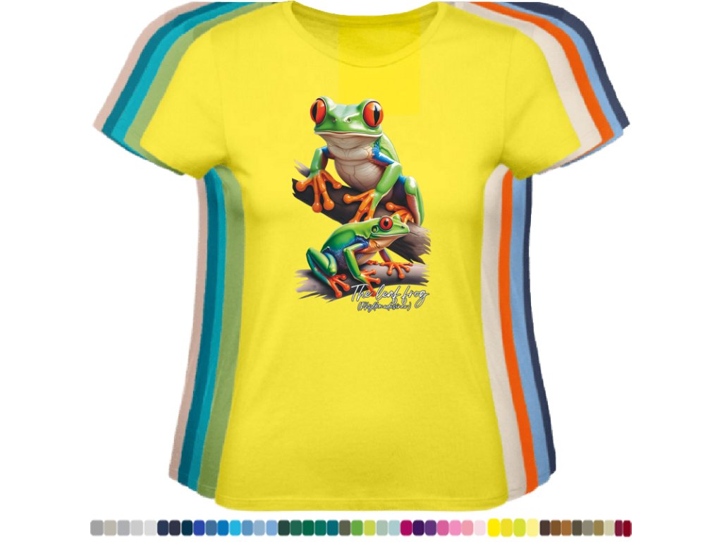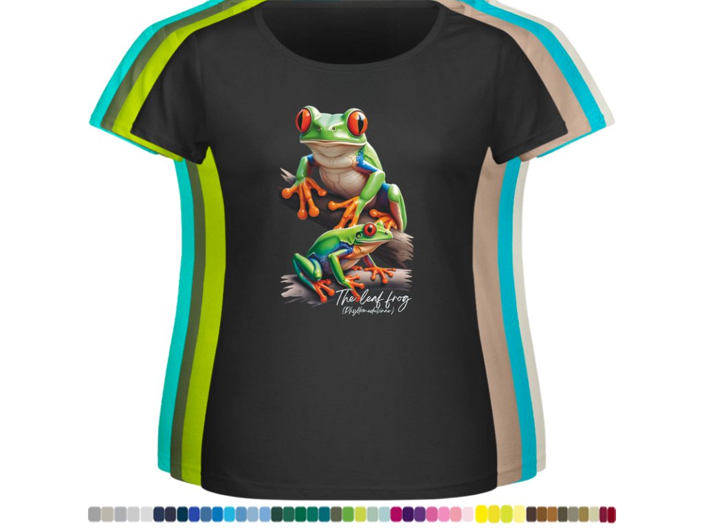 DÁMSKÉ LEVNÉ BAVLNĚNÉ TRIČKO S DIGITÁLNÍM POTISKEM ŽABEK LISTOVNIC