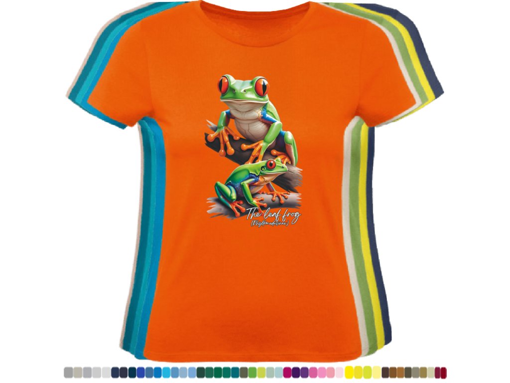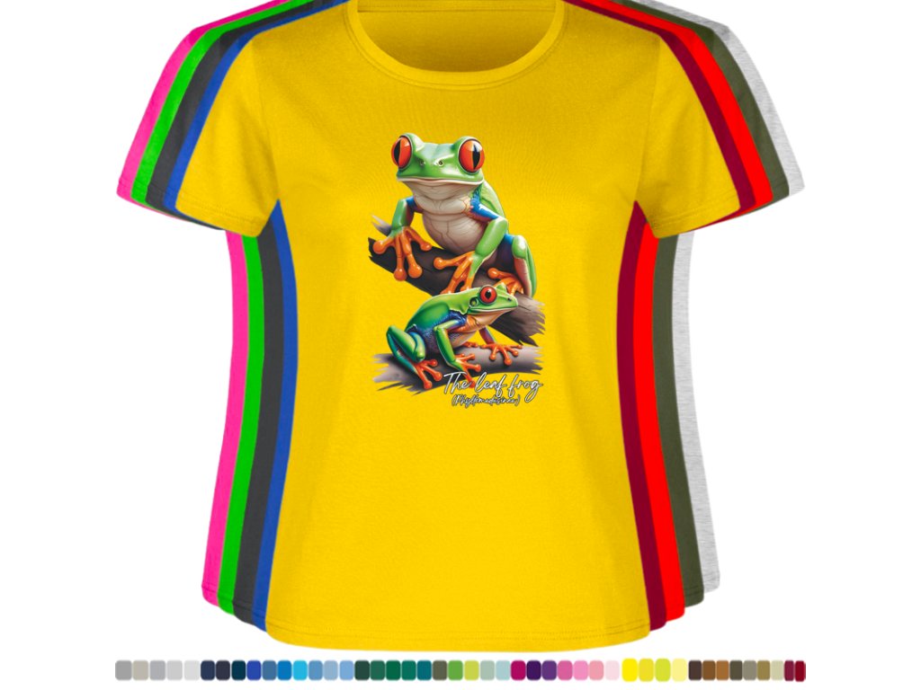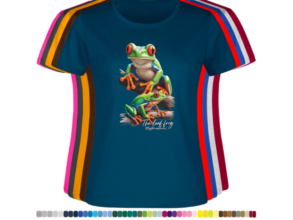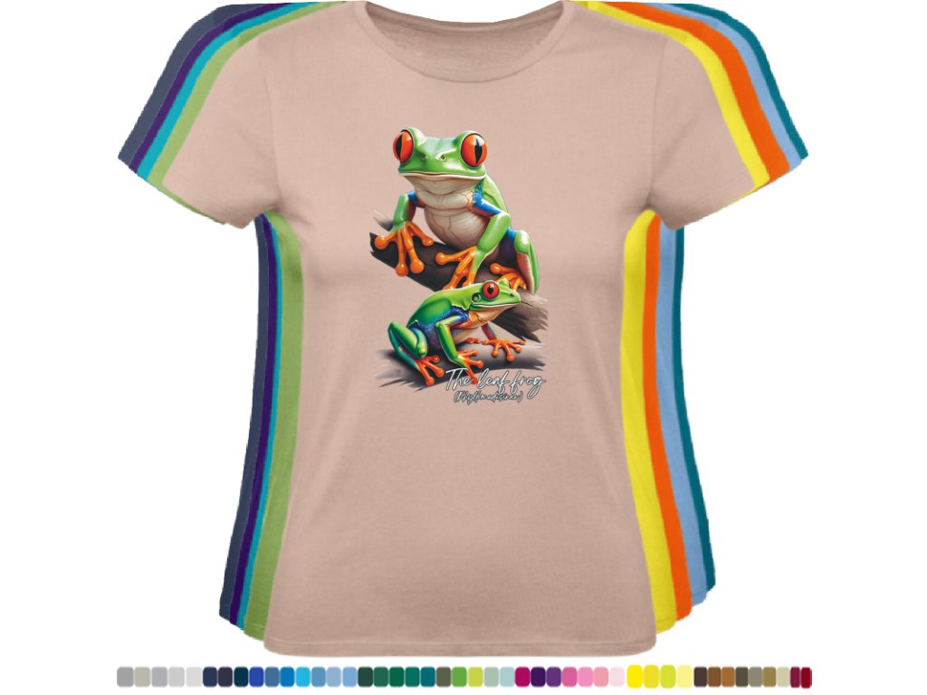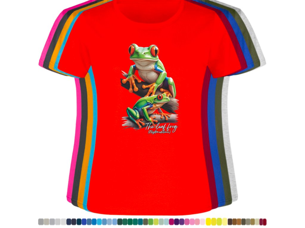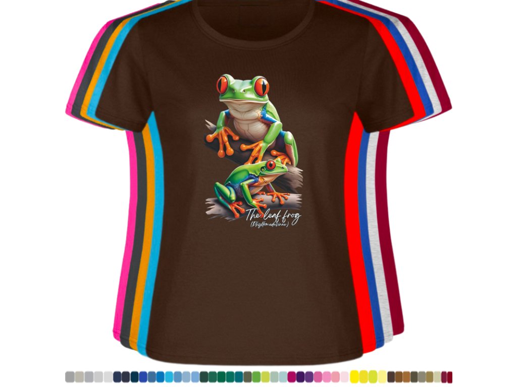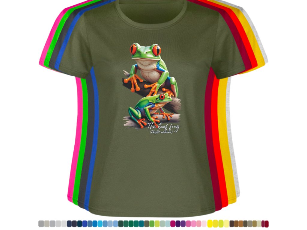 DÁMSKÉ LEVNÉ BAVLNĚNÉ TRIČKO S DIGITÁLNÍM POTISKEM ŽABEK LISTOVNIC
