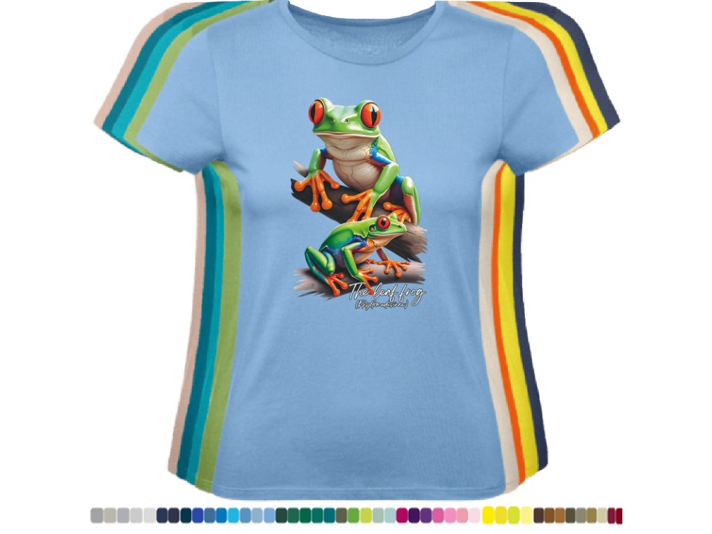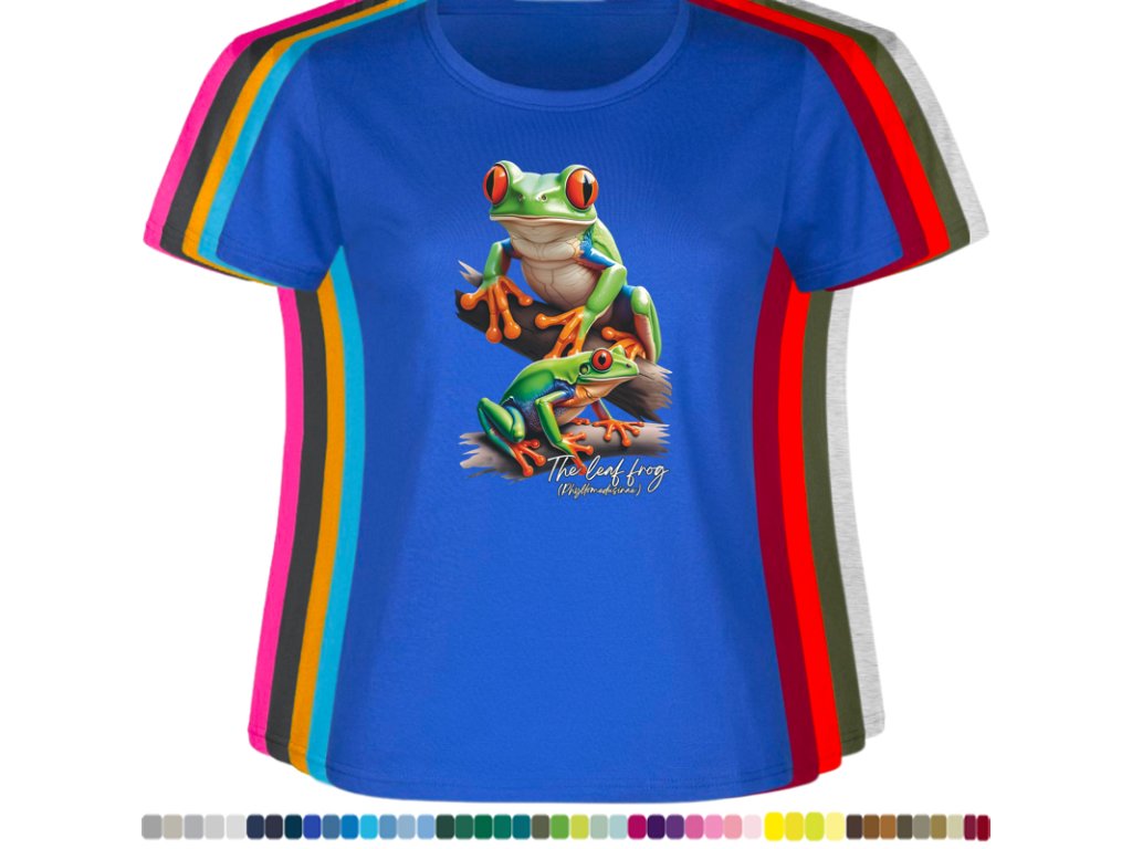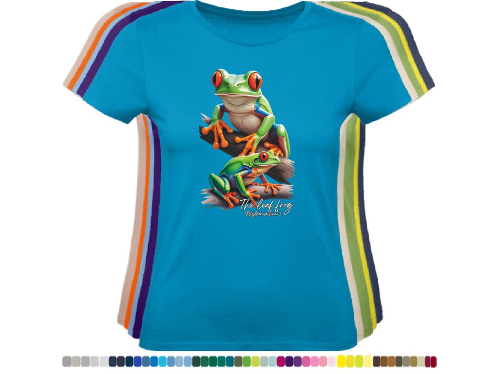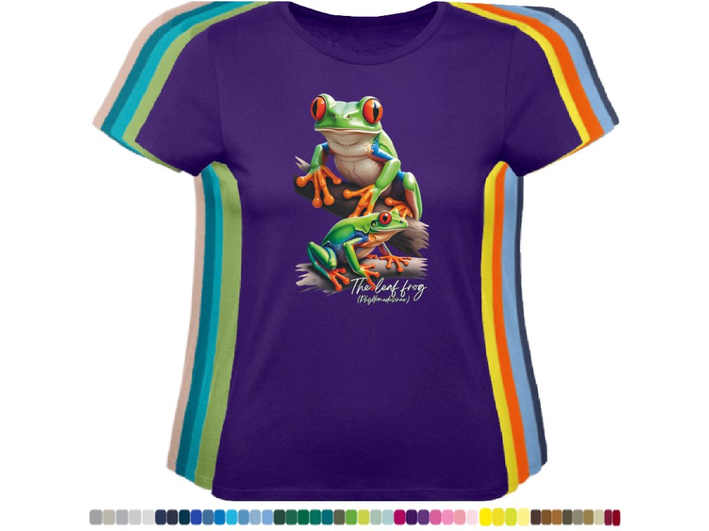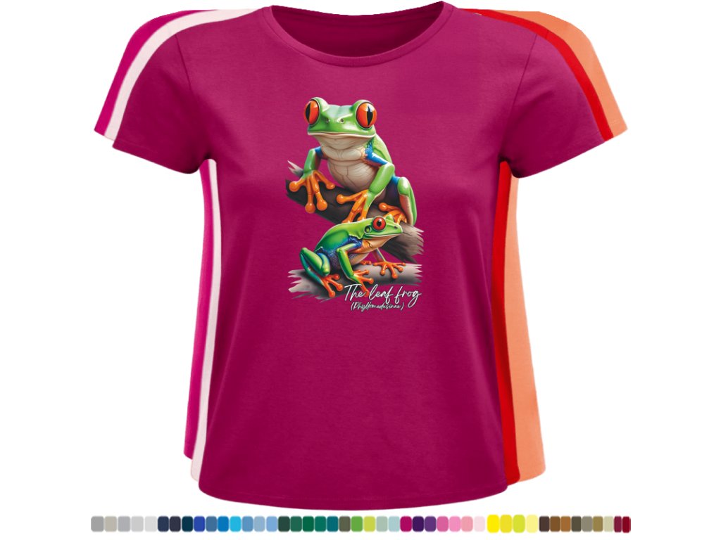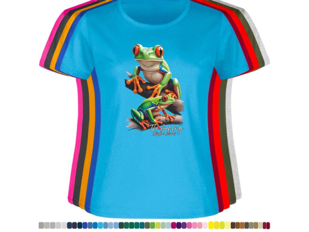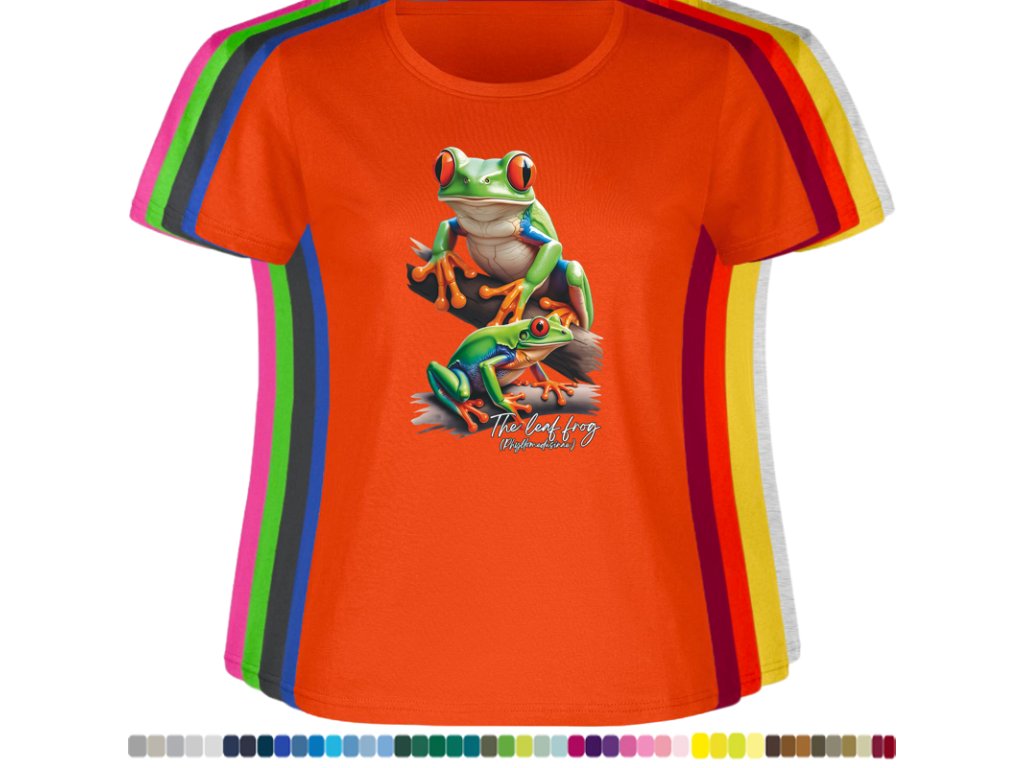 DÁMSKÉ LEVNÉ BAVLNĚNÉ TRIČKO S DIGITÁLNÍM POTISKEM ŽABEK LISTOVNIC